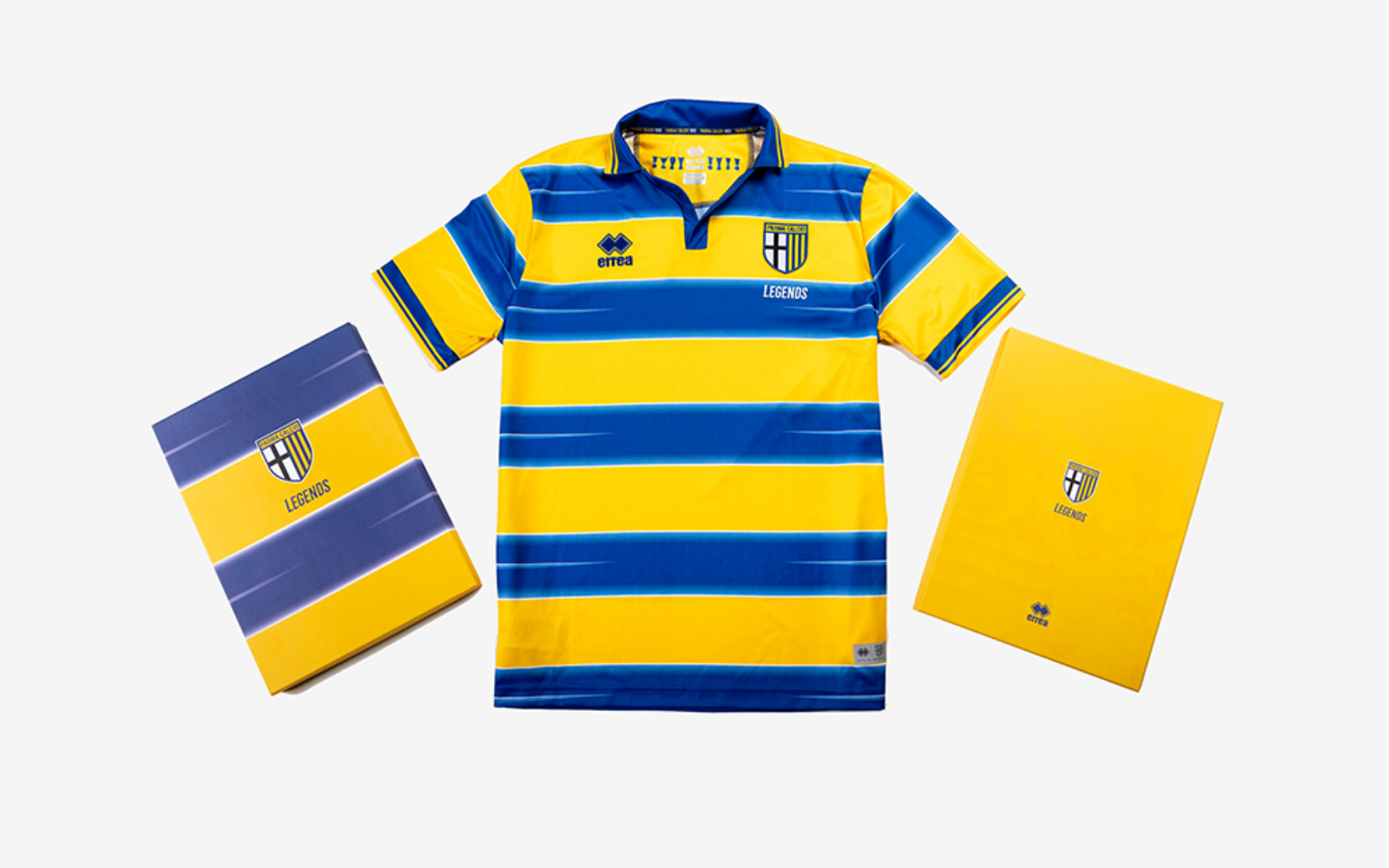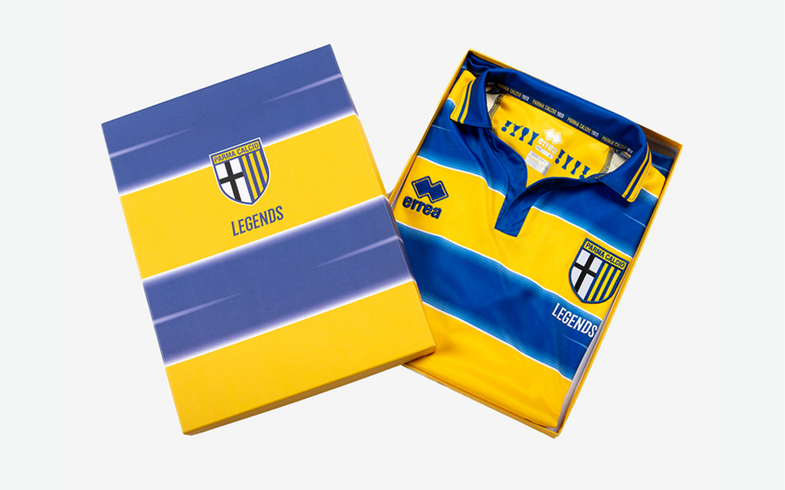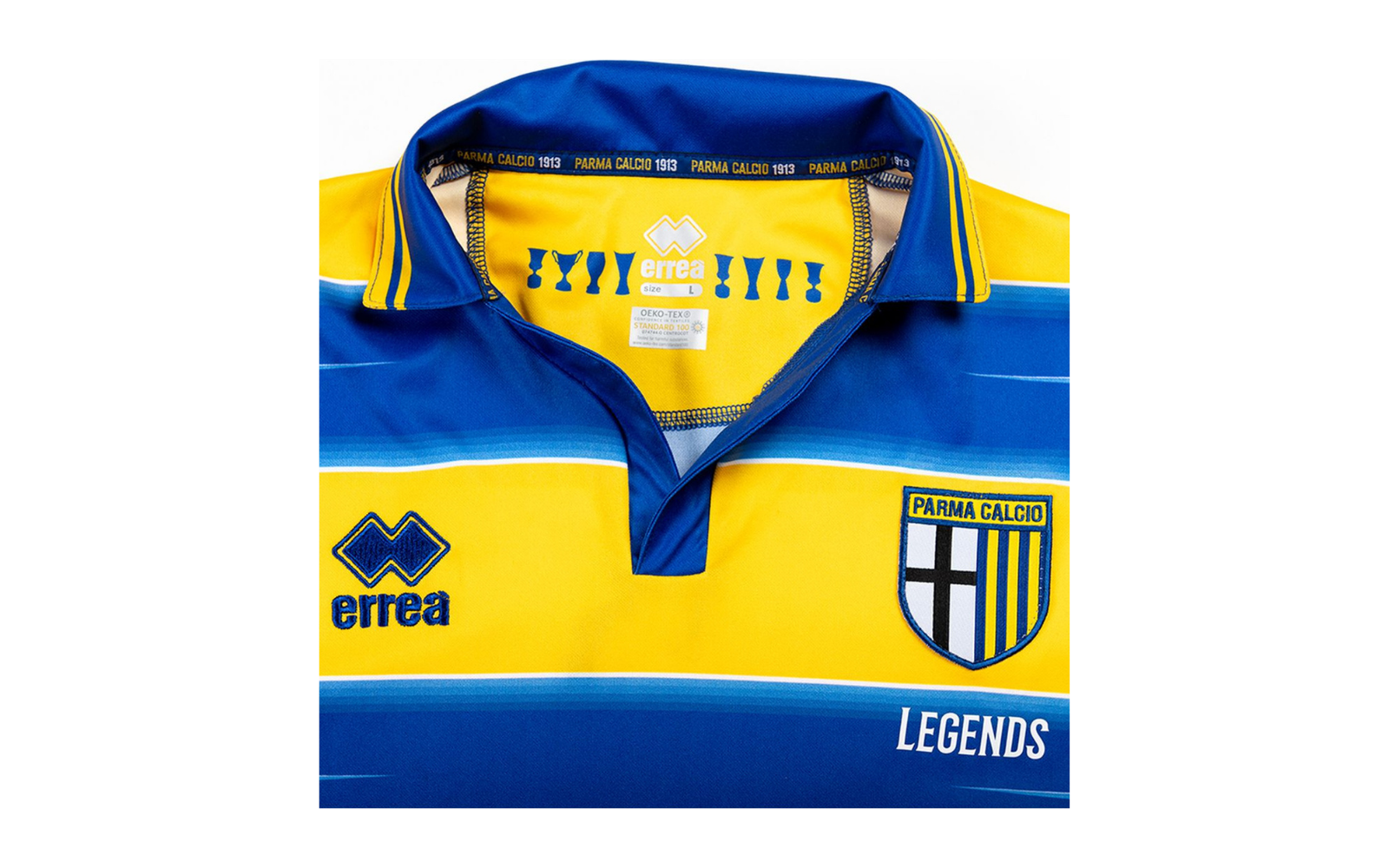 What looks to all intents and purposes a nostalgic remake features the same design as the one worn in the final against Marseille in 1999: yellow-blue horizontal stripes, a faded white line dividing the chromatic bands. In the new version - which could officially debut in the 2021-22 season - the characterizing element are the trophies inserted inside the collar, in addition to the addition of the word "Legends" under the Parma logo. The shirt is delivered and shipped in a special packaging that enhances its historicity. It is also customizable with the name of a player who was part of the extraordinary squad of 1998-99.
