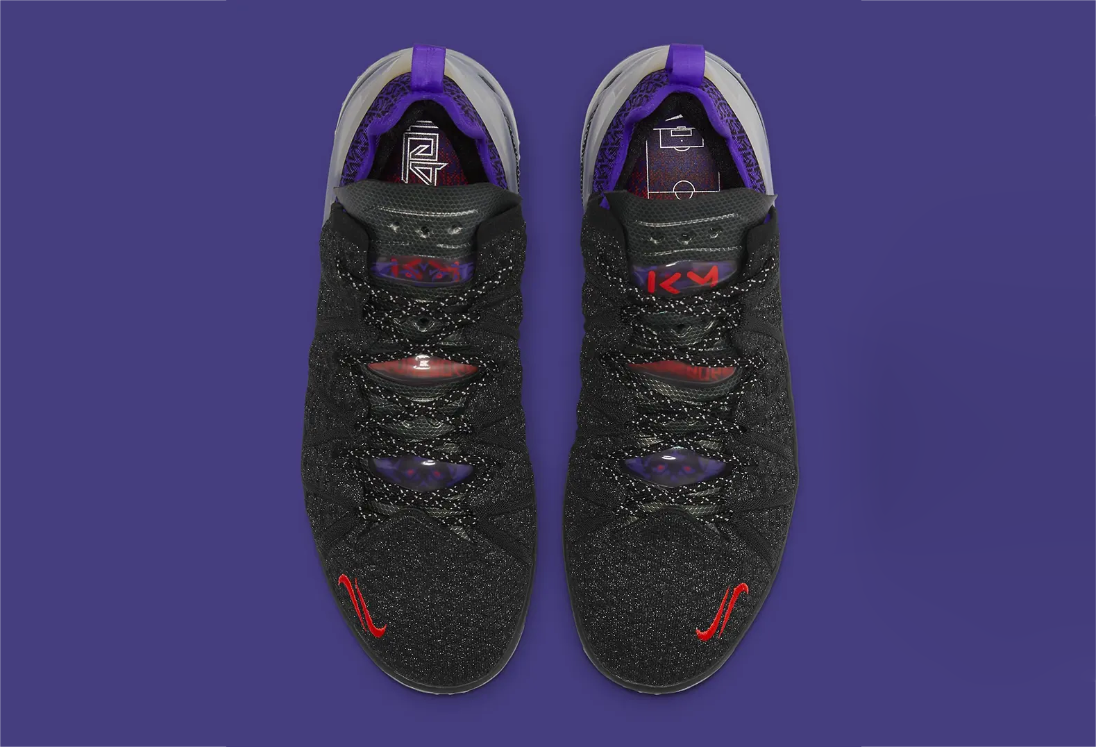 Nike, Lebron James and Mbappe have formed an aesthetically vibrant trio in recent weeks, joining on the one hand the star of the present and the future of football, and on the other, a basketball player who has made basketball history. Before, the Nike Lebron 18 had come out; then began shooting the first photos of the Nike Mercurial Superfly 7 'Chosen 2', the model with cleats produced by Nike with a special upper with references to the French flag and with the tag 'Lebron' on the heel of the two shoes. The football-basketball bond is precisely the exchange of tags, so, if on the model with the cleats there is Lebron, on the basketball one there is the signature 'KM'. The interior of the two models is also the same: both the football and the basketball version have the internal insole with a playing field divided in half, one portion of which is in the penalty area version and the other is with the basket one.