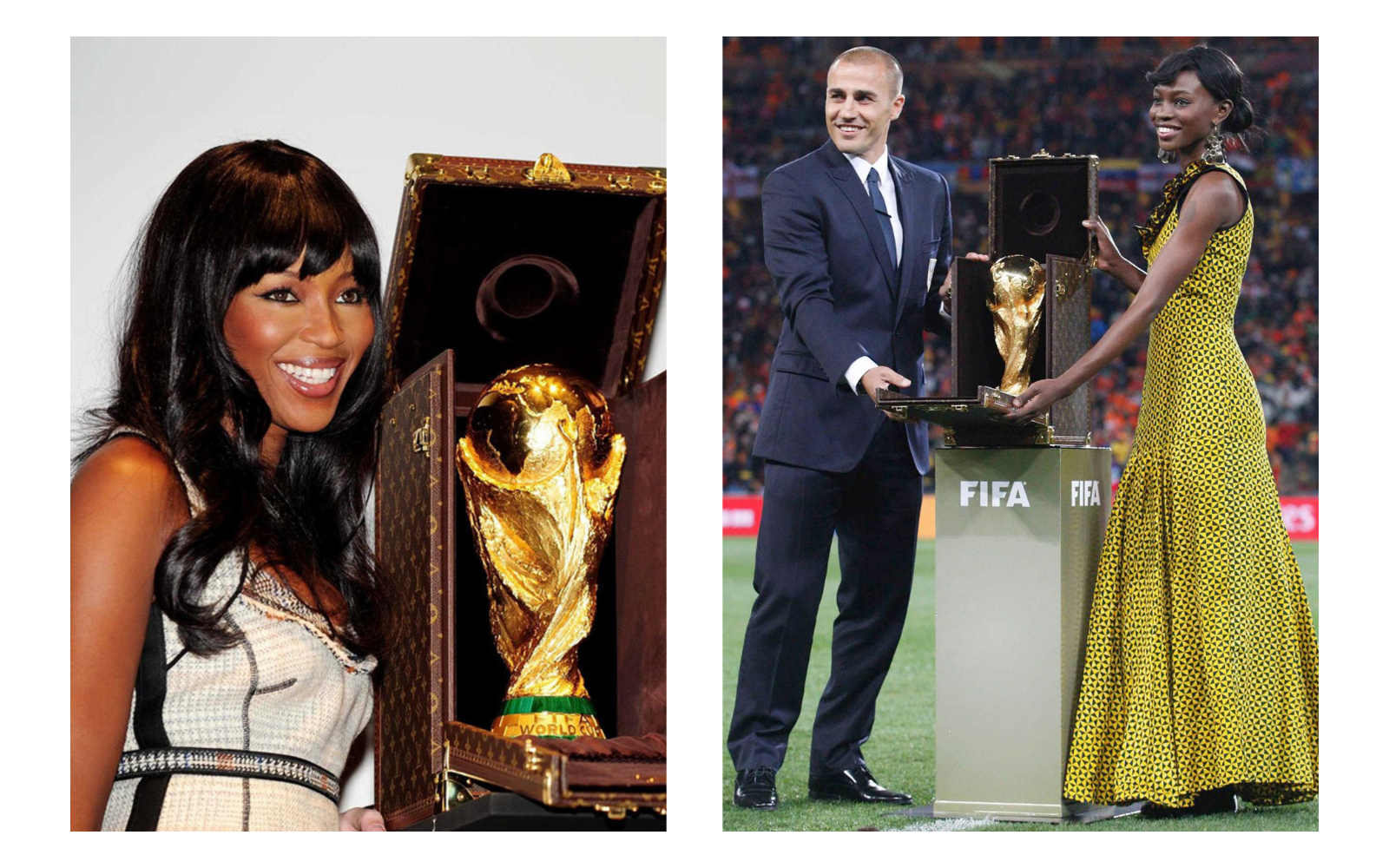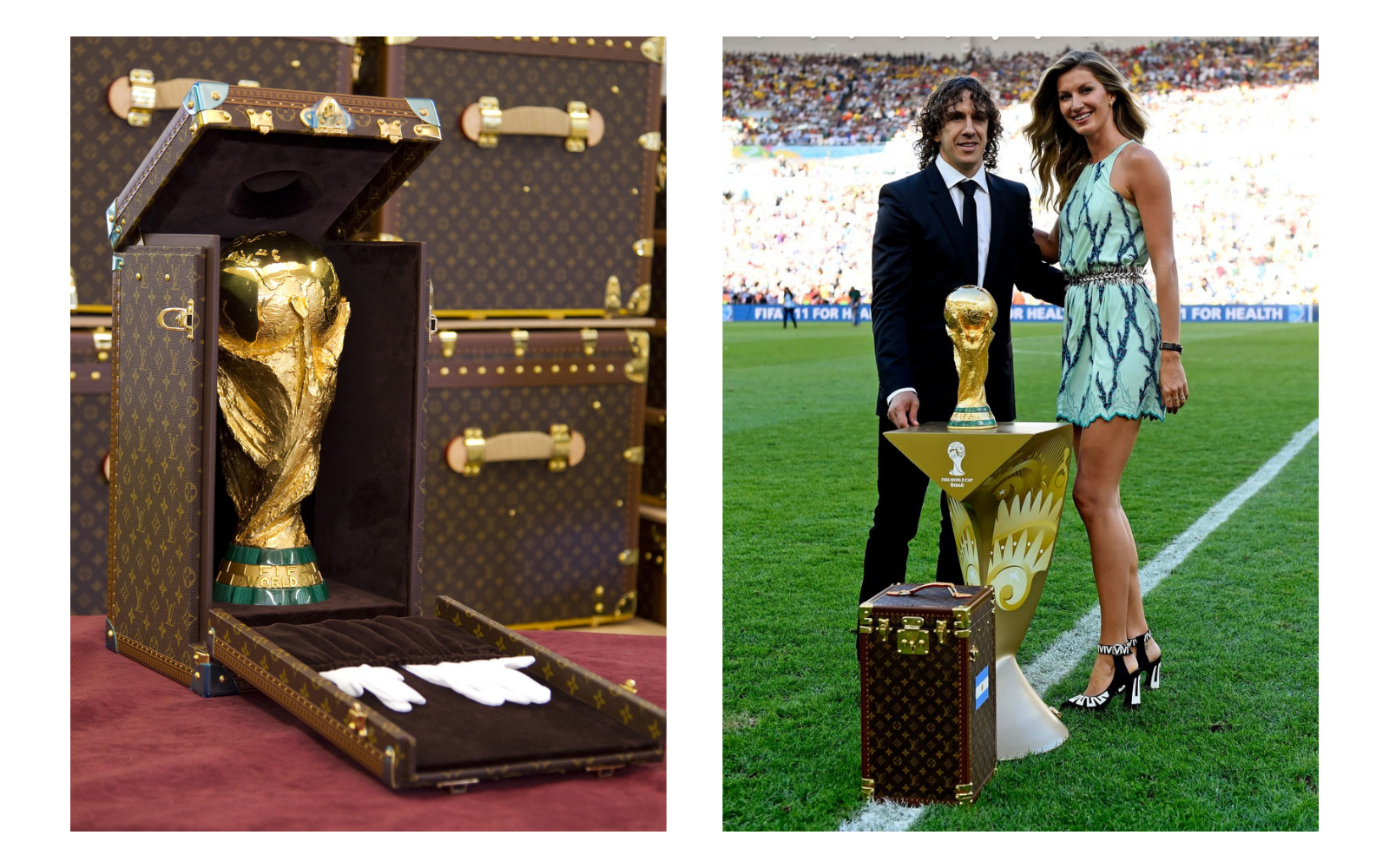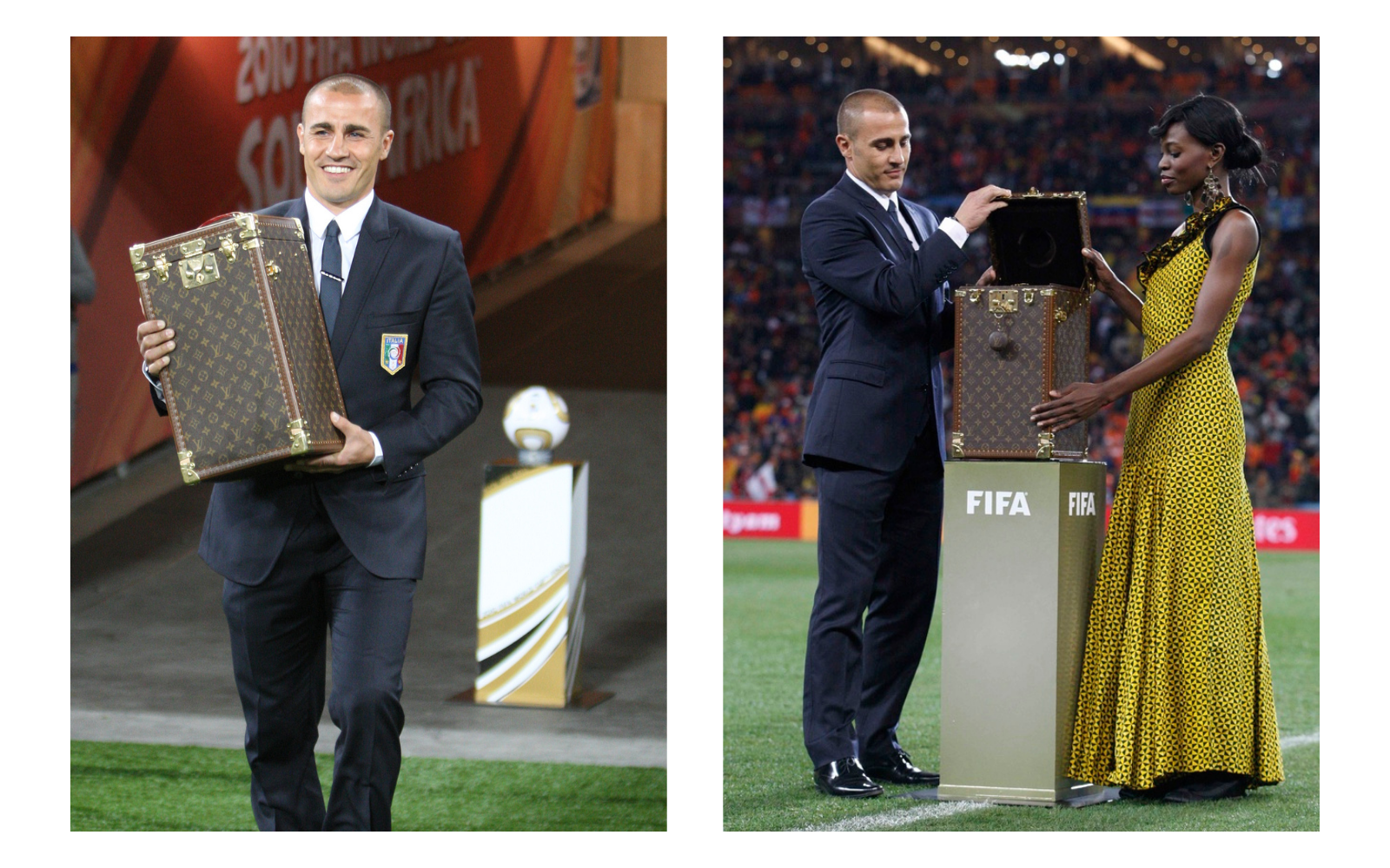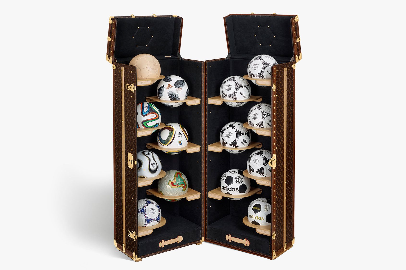 We can only start with the most dreamed of football trophy: the World Cup in 18-karat gold. Made strictly by hand by the best craftsmen of the Asnières workshops, the travel case with the most famous monogram has been commissioned by FIFA for the last 3 World Cups. Brought to Johannesburg on 11 July 2010 by Fabio Cannavaro - a thankless task given the result of the Azzurri - he makes his debut in the most classic version. After 4 years, a very similar version passes from the hands of Gisele Bündchen to those of Lahm after the 1-0 against Argentina. The "Russian" version shows substantial differences: it is no longer in leather but in titanium, with the laser-engraved monogram. The main stage is the Luzhniki stadium in Moscow, where Philipp Lahm and Natalia Vodianova brought the latest version of the trophy case to the pitch. In 2018 Louis Vuitton also produced a trunk that contains 13 re-editions of the official adidas soccer balls, used in competitions from 1970 to 2018.