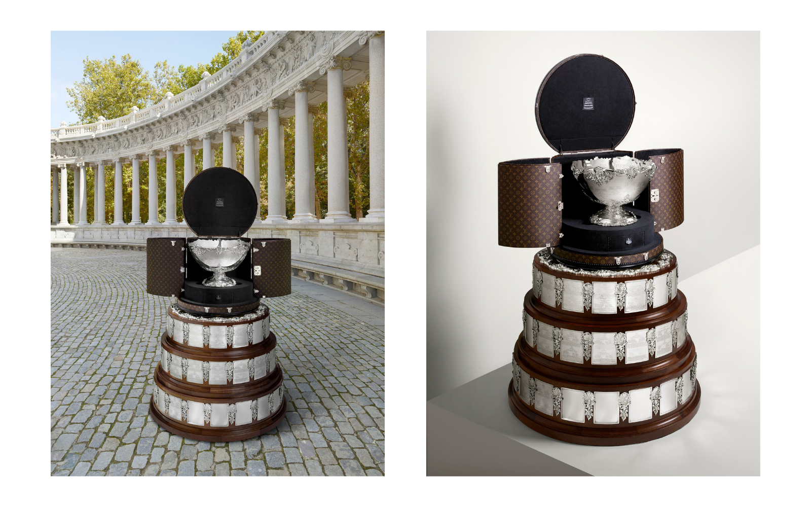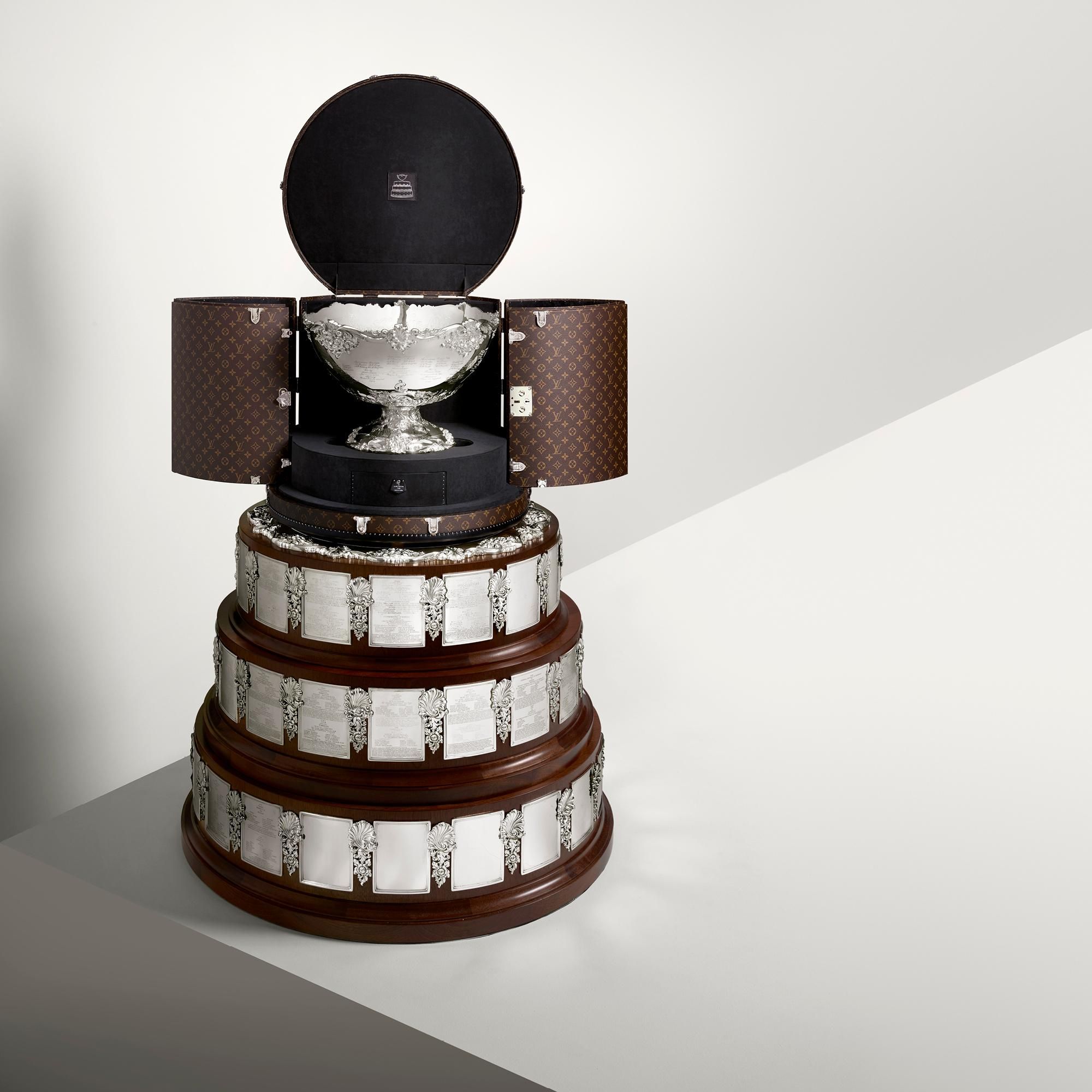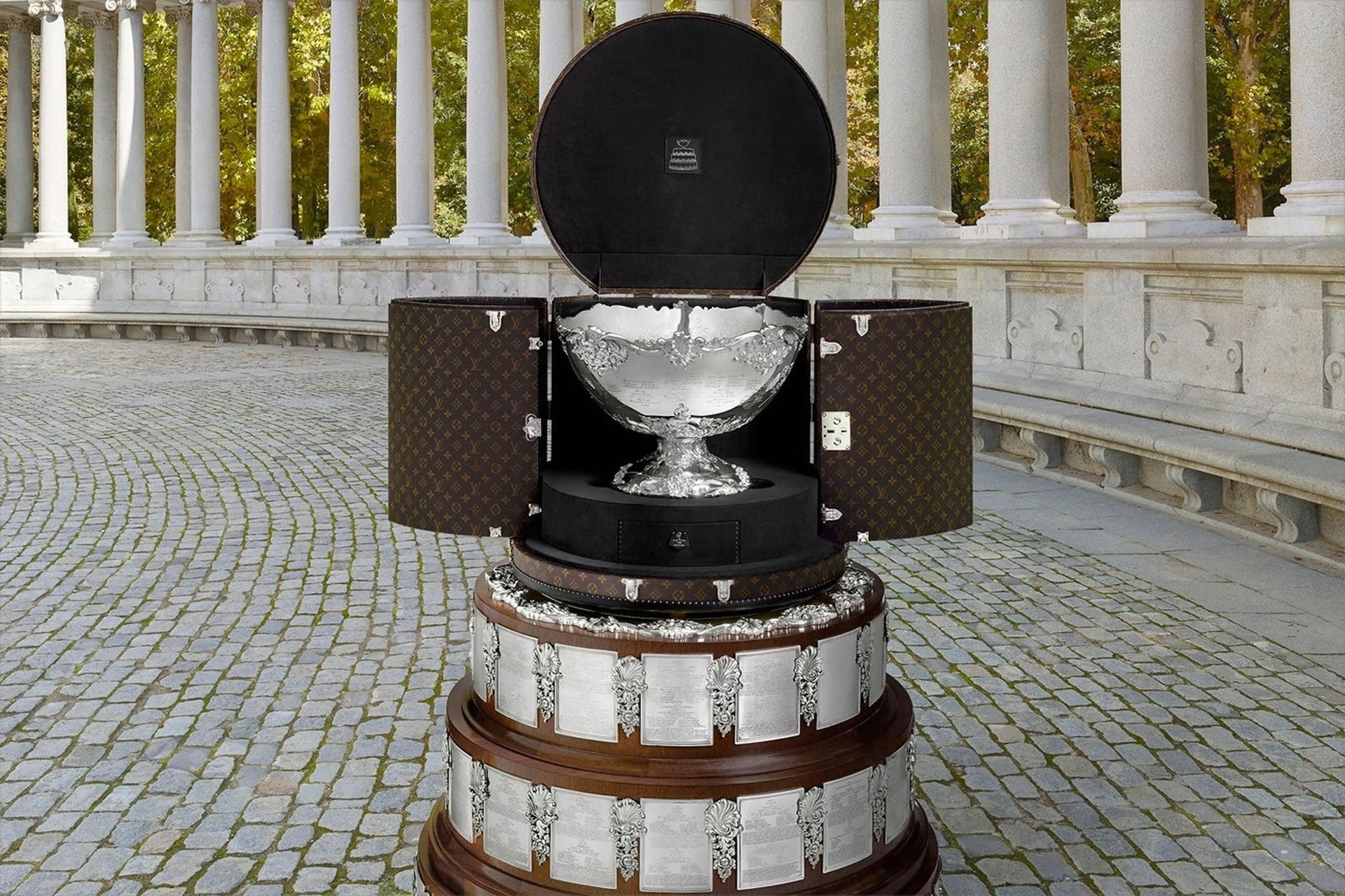 The Davis Cup - the men's tennis world championship - 2019 was exciting until the final stages, when Spain, the host of Rafa Nadal, managed to prevail over Félix Auger-Aliassime's Canada. The trophy was delivered for the first time inside a very particular trunk: with a circular shape, the trophy case has a gigantic base whose top opens to show one of the oldest cups in the world of tennis. Covered in the iconic Monogram Mocassar canvas, it features rich leather details, palladium and brass locks, as well as the Davis Cup logo printed inside the lining.