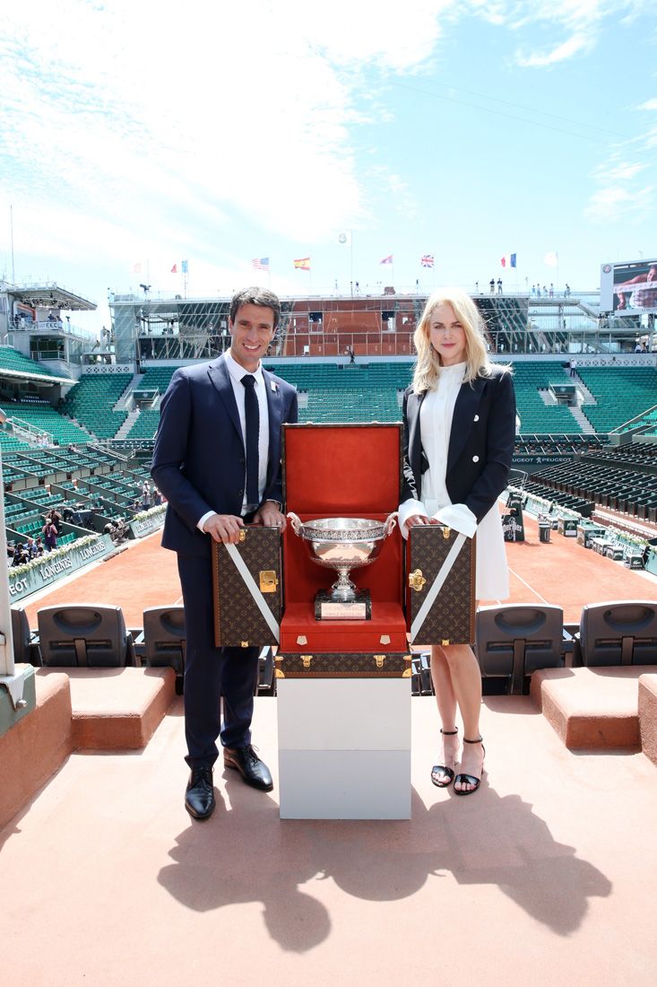 From grass to clay, the trophy case doubles. The French maison, on the occasion of Roland Garros in 2017, in fact created two special baggage: the Musketeers' Cup for the male category and the Suzanne Lenglen Cup for the female category. The touch of class signed by Louis Vuitton is the choice of the interior, clearly inspired by the playing surface of the tournament, Rafa Nadal's favorite who dominates from the top of his 13 trophies raised at Court Philippe Chatrier. For the occasion, Louis Vuitton chose Nicole Kidman as the main guest of the tournament.
