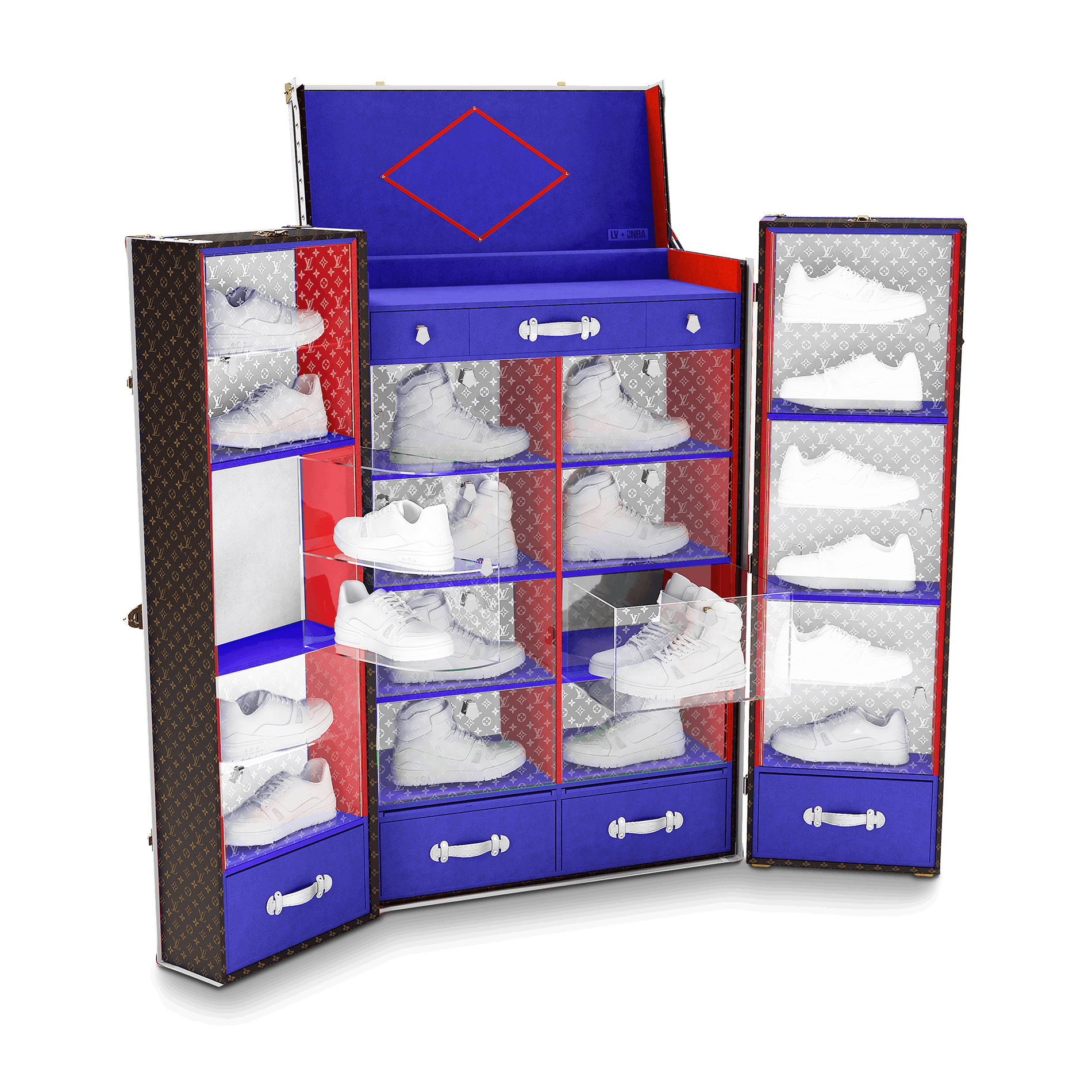 Although it is one of the most advanced leagues in the world, the NBA is only the latest to come into contact with Louis Vuitton. 2020 gave away one of the most beautiful sports capsules of the LVMH group brand and as the spearhead of this collection - also presented with a digital experience at Madison Square Garden in NYC - there is the trophy case of Larry O'Brien Trophy. From the creative ideas of Virgil Abloh was also born LV x NBA Trunk, a double-door wardrobe trunk with interior in blue and red that can hold up to 14 pairs of shoes. The Lakers had the honor of bringing home the first LV travel case in NBA history.