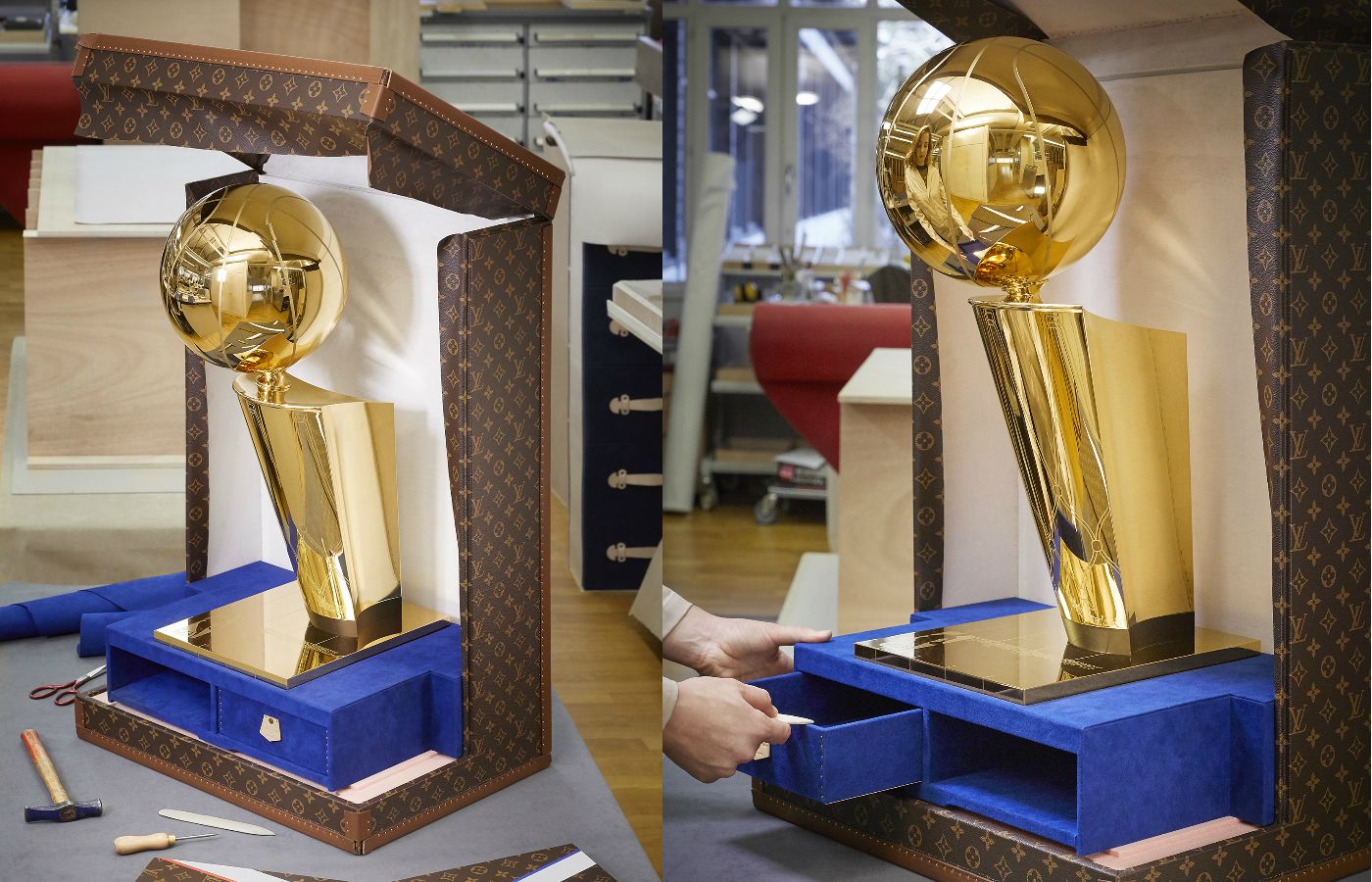 Louis Vuitton has always looked at sport with admiration and the know-how of the Asnières maison has served in the last 10 years to create incredible trophy cases, cases created ad hoc to accompany the most important trophies in sport: the Larry O'Brien Trophy, the World Cup, the Musketeer Cup and even the most coveted prize for those who love League of Legends.
