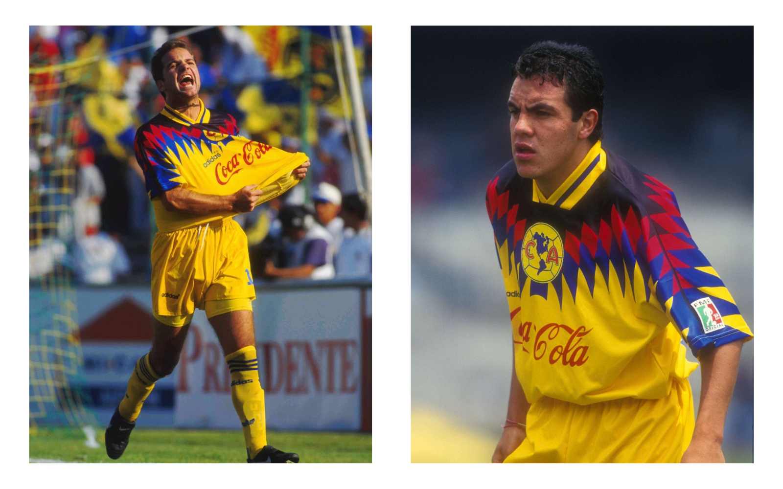 The entry of the three stripes is interlocutory, but in 1984, the year in which the brand decided to apply the design that made its debut that same year to the colors of the CA - which in the meantime regain vigor, passing from cream to bright yellow on the shirt of the German national team. The series of yellow, blue and red rhombuses and inverted triangles has a double aesthetic-cultural value: on the one hand it incorporates the most frequent patterns of the gaban, the colored version of the Mexican poncho; on the other hand, fans immediately associate that design with the wings of Club América's eagles.