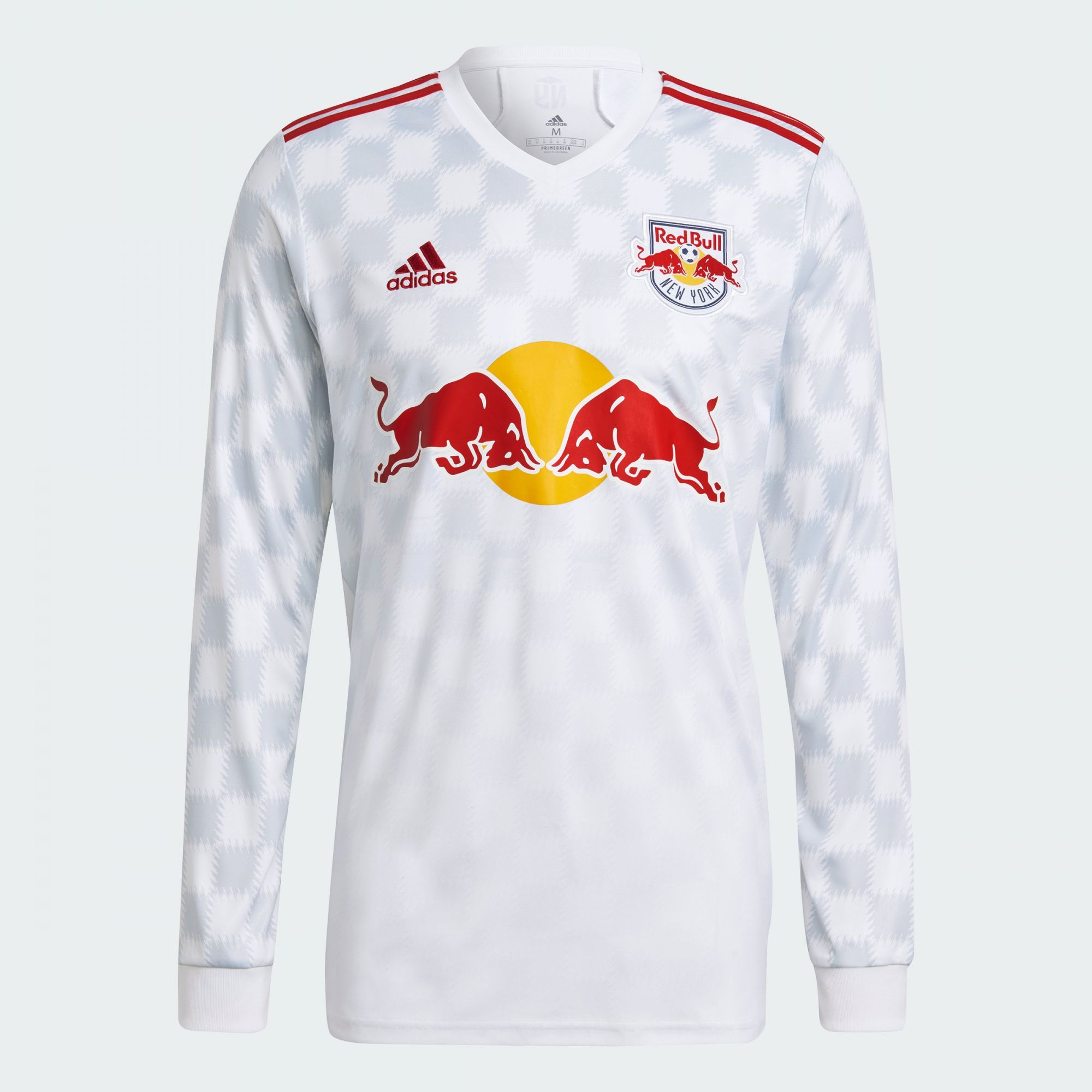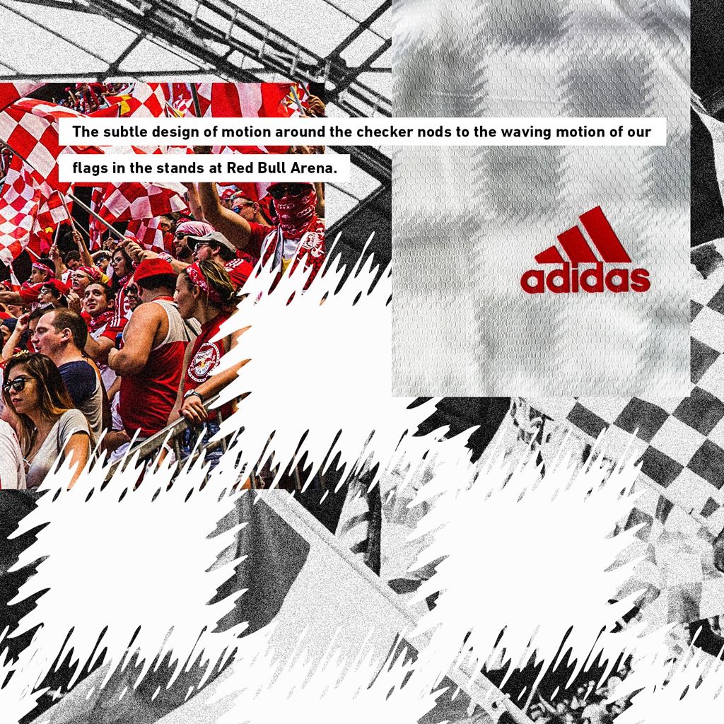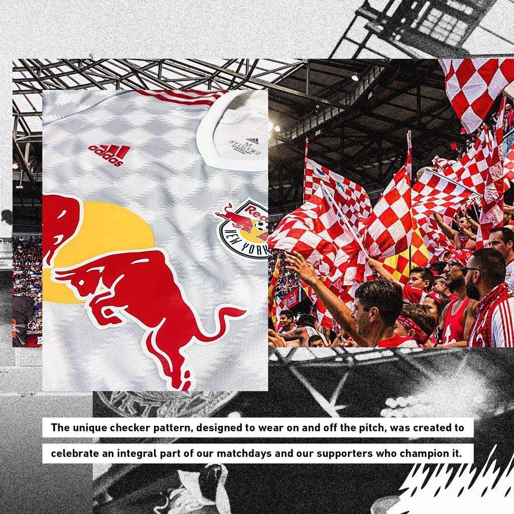 The shirt has a traditional template for what is the New York Red Bull model, with adidas stripes on the sleeves and the logo of the German brand imprinted in red and with the club logo on the right. In the center, the Red Bull logo dominates. What makes this year's Red Bull jersey more peculiar (and, in some ways, different from the others) is the presence of a checkerboard grid on the white background, with some slightly darker squares. Another key element is the monogram with the initials of the club and with the Red Bull logo under the collar, on the back of the shirt. In general, the shirt is a symbol of the club's fans, and the monogram at the back of the collar is a reference to the New York club's fan community.
