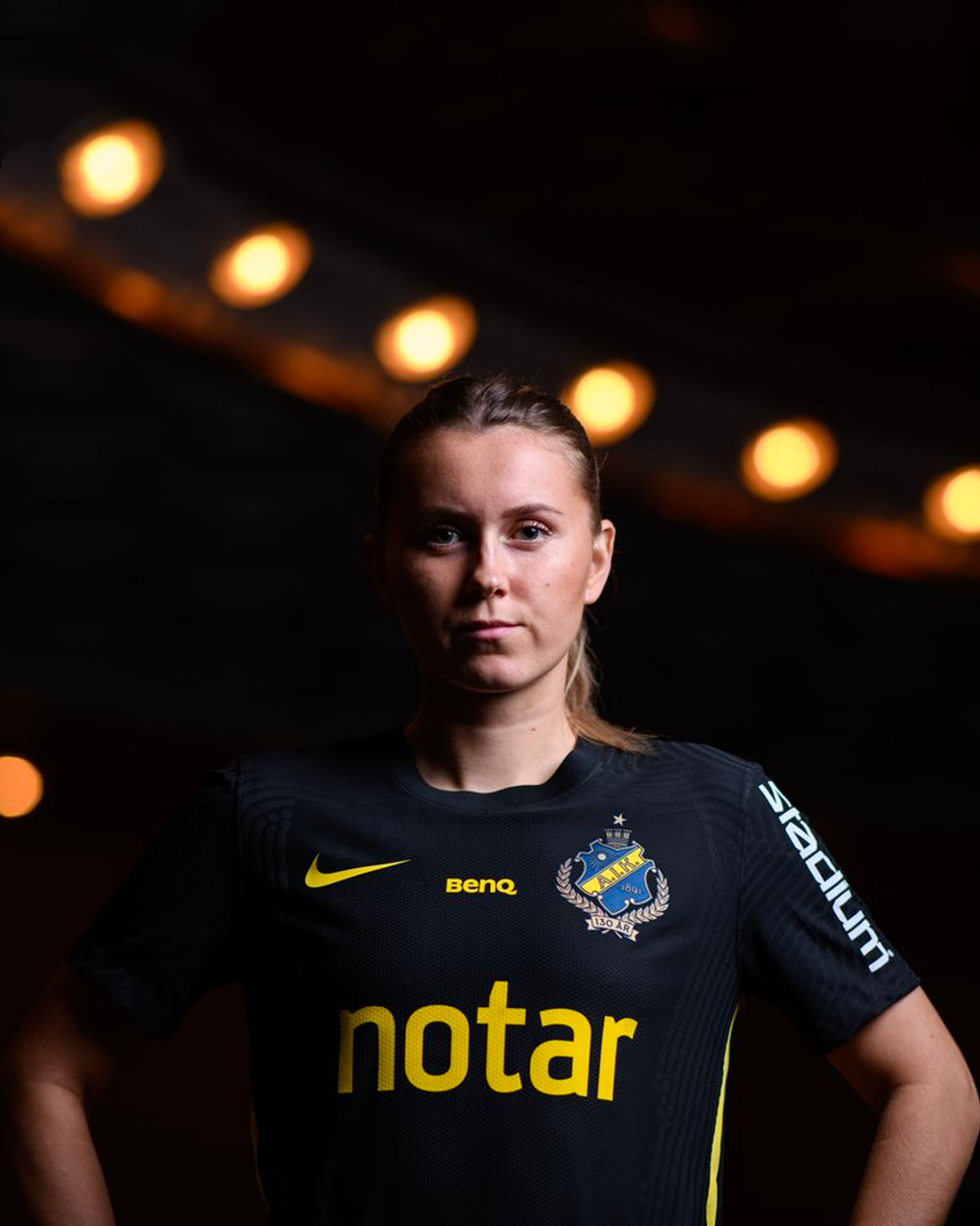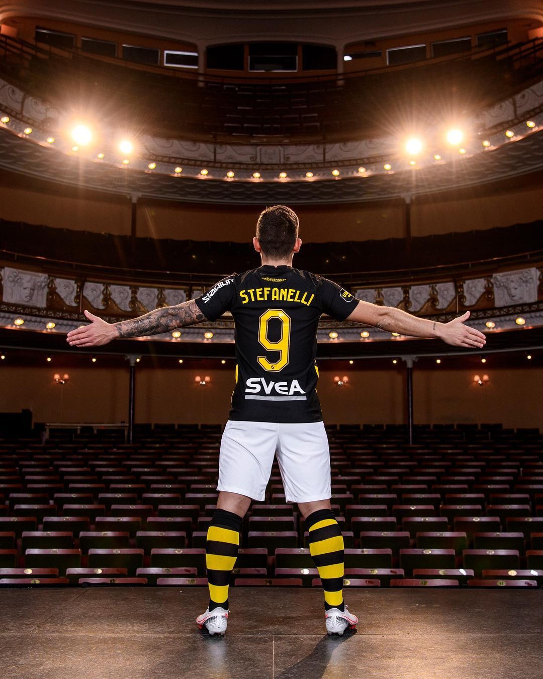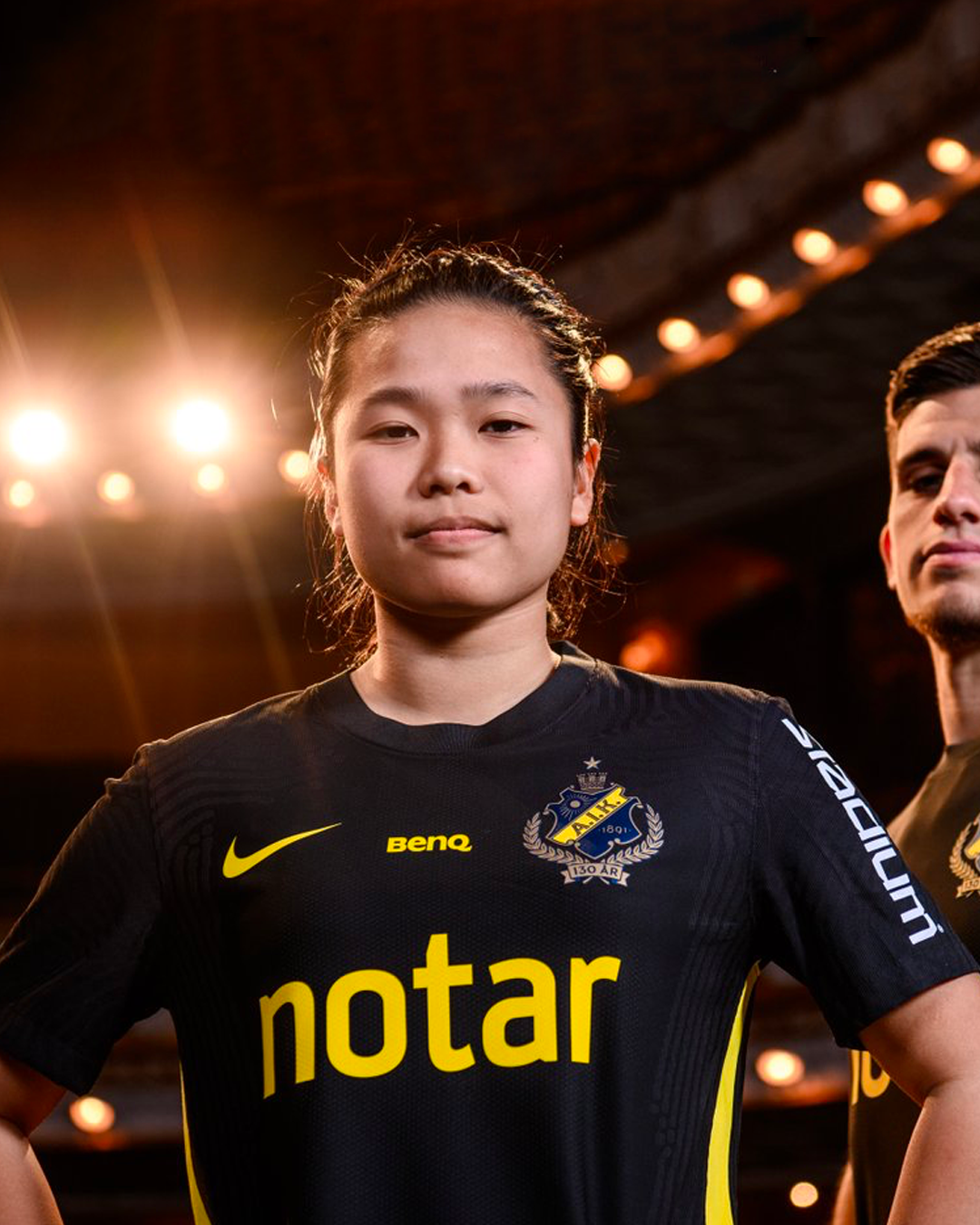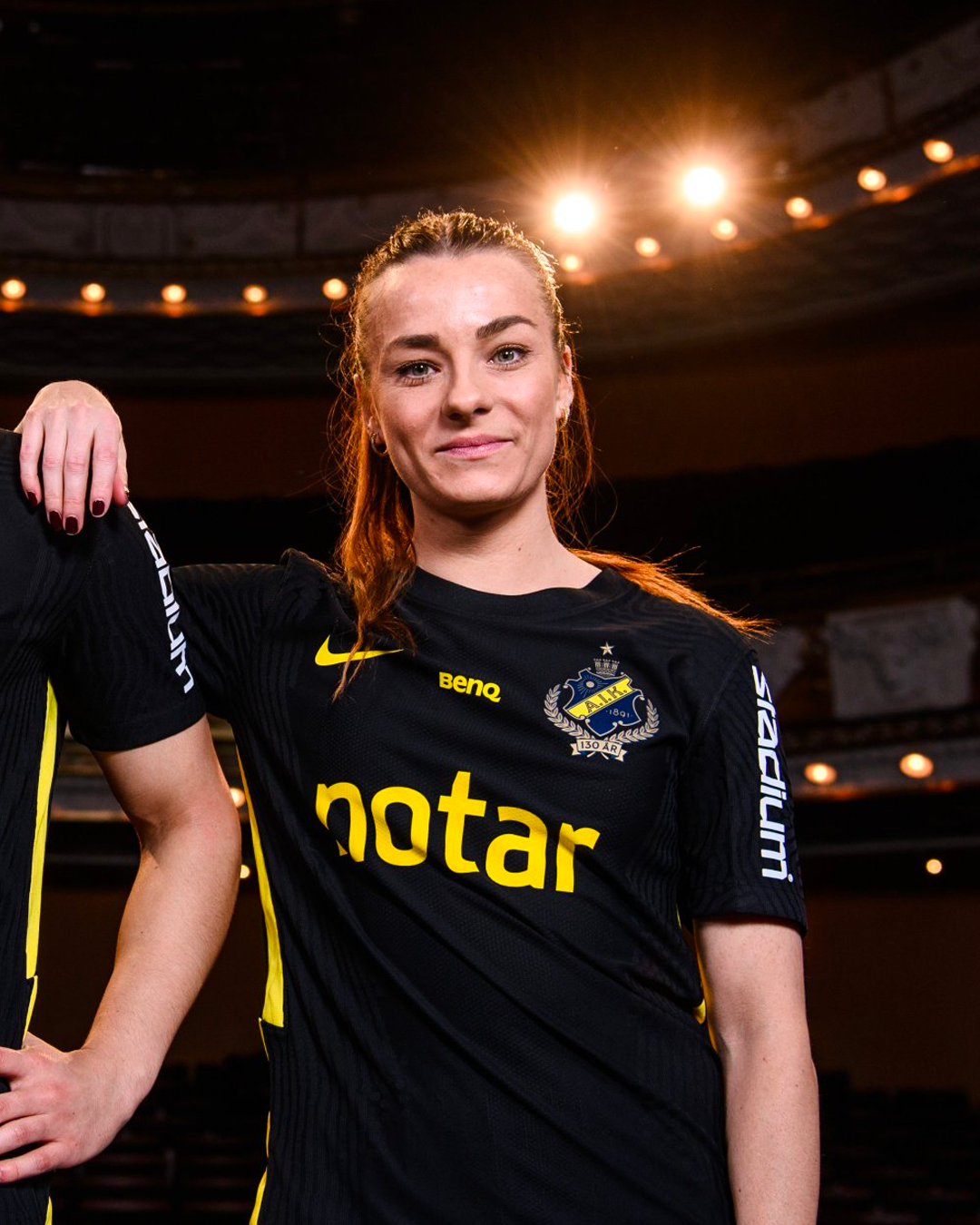 The jersey template is the classic Nike Vaporknit 3, introduced for the 2020-21 season and already used by club teams such as PSG, Tottenham and Atletico Madrid or by national teams such as Portugal, Holland, USA and England. As always, black is the dominant color while the details are in yellow. The front of the jersey features the club crest adapted for the special anniversary on the top left and the Swoosh on the top right, while inside the collar is written "Allmänna Idrottsklubben - stiftad den 15: e februari 1891". The kit is completed by white shorts and socks with black and yellow stripes.