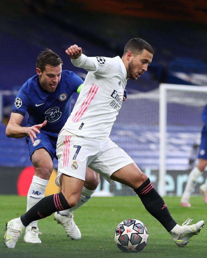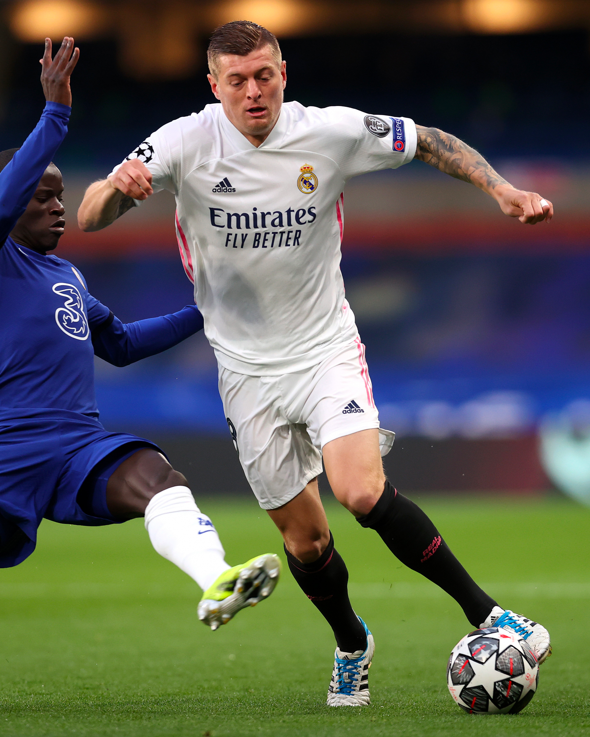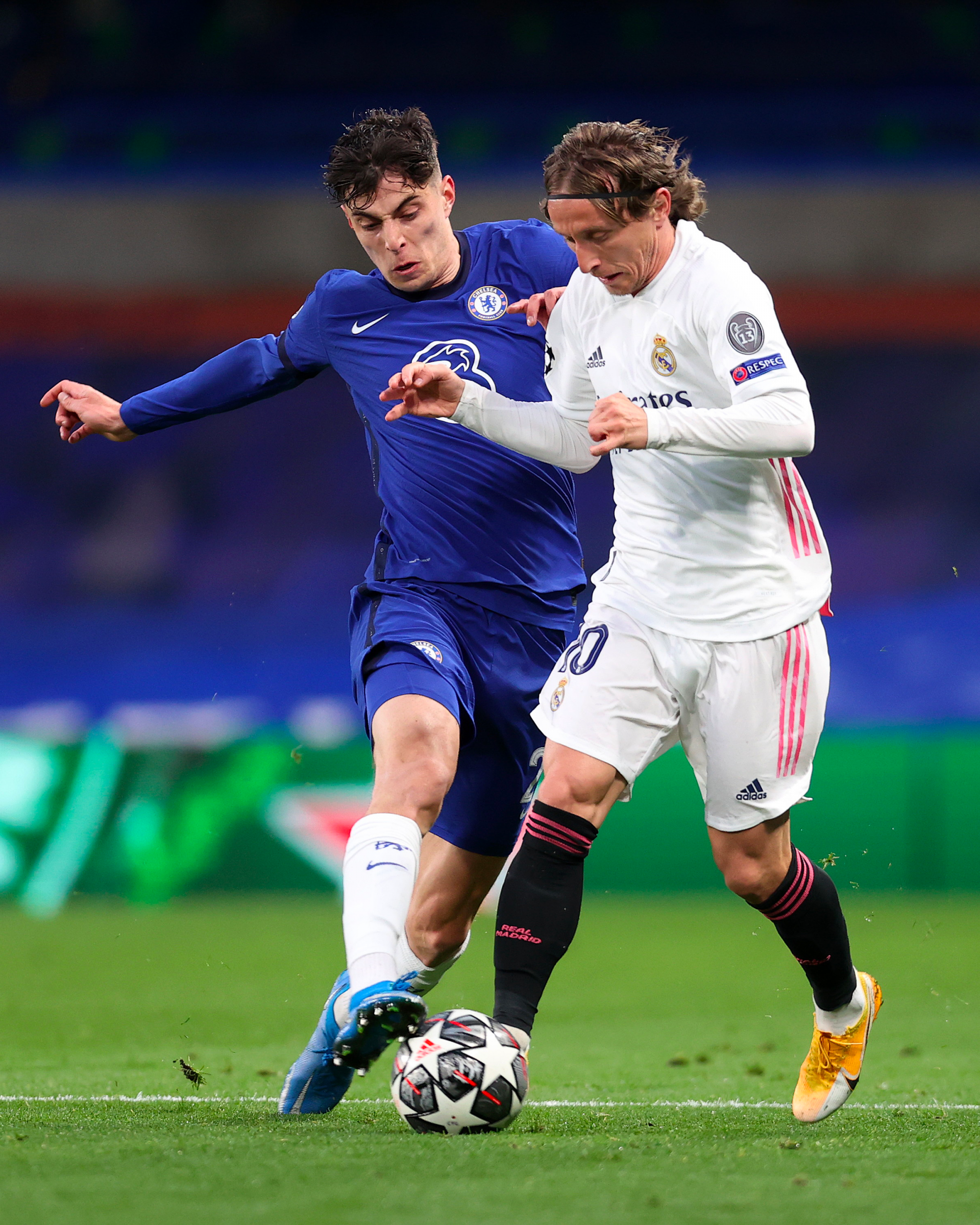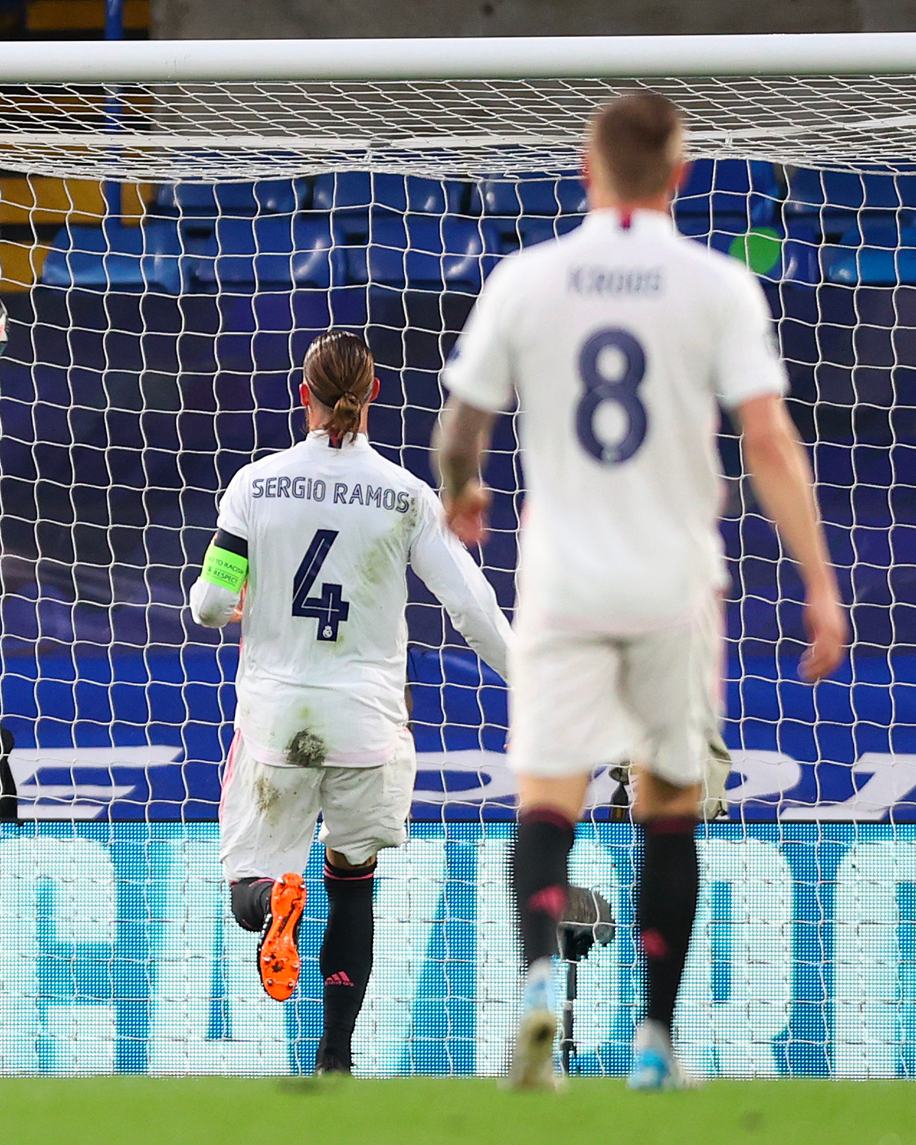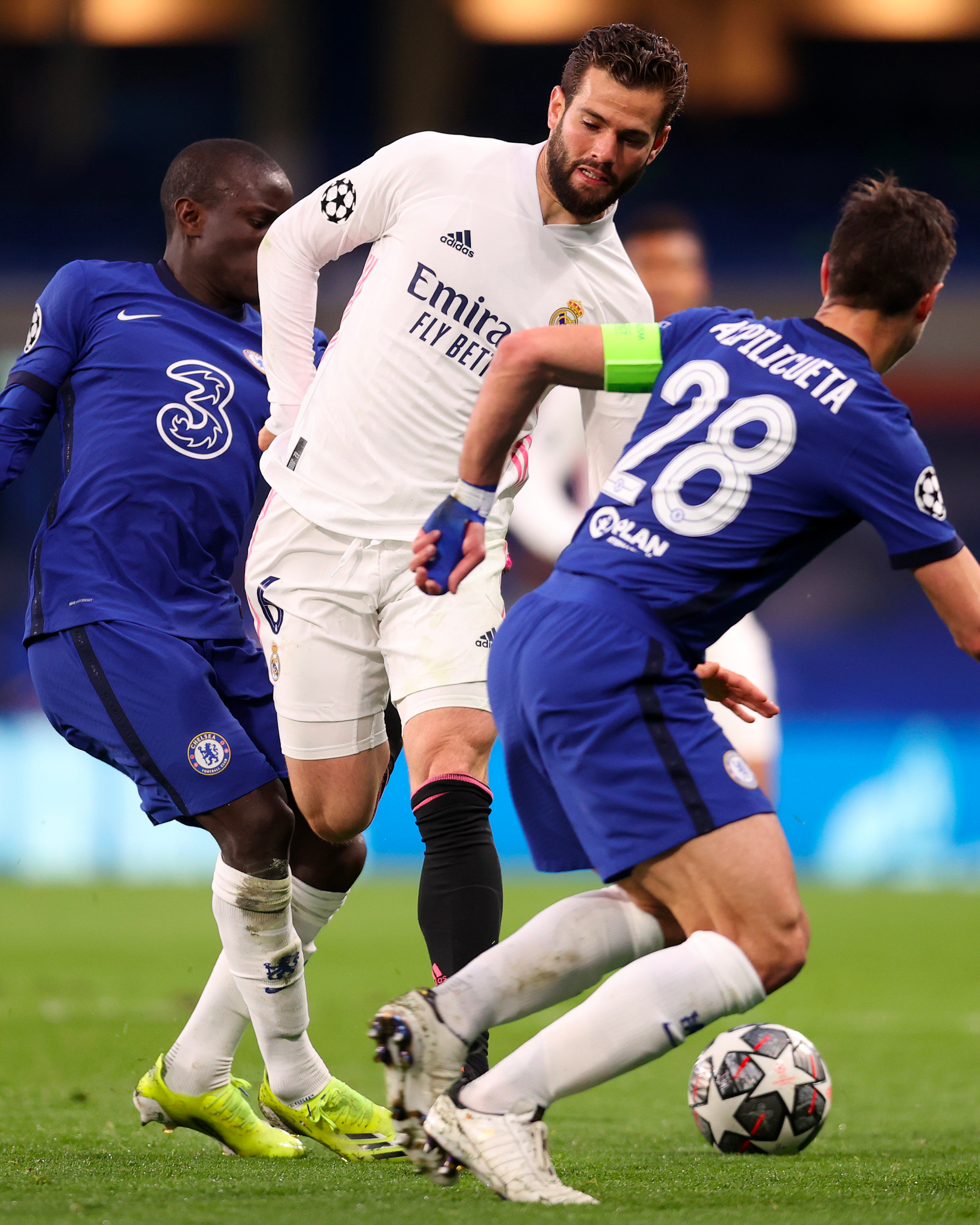 While in the first leg they had played in white, Real had to wear black socks for two reasons: the first also relates to Chelsea's home kit, which involves the use of white socks; the second, on the other hand, concerns the Real Madrid away kit in pink, not exactly loved by Spanish fans. To avoid using the away kit, the club decided to break a tradition that had lasted for 14 years and to play with an unusual white-white-black combination. Even a hypothetical use of Real's black-pink kit was to be excluded, because the Chelsea shirt has black details that compromised its regular use.