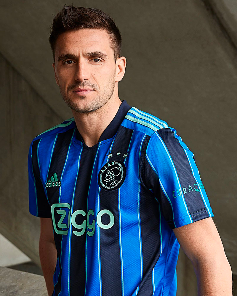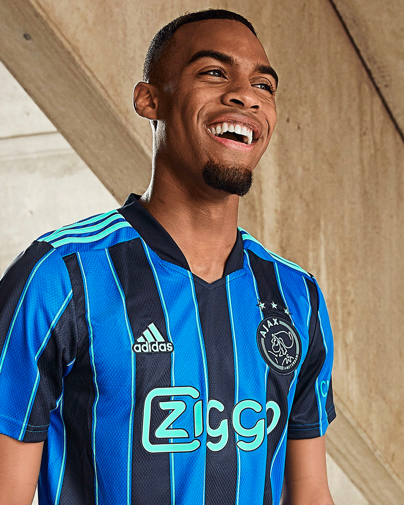 The new Ajax away kit 2021-22 by adidas The stripes on the jersey of the Amsterdam Lancers are back