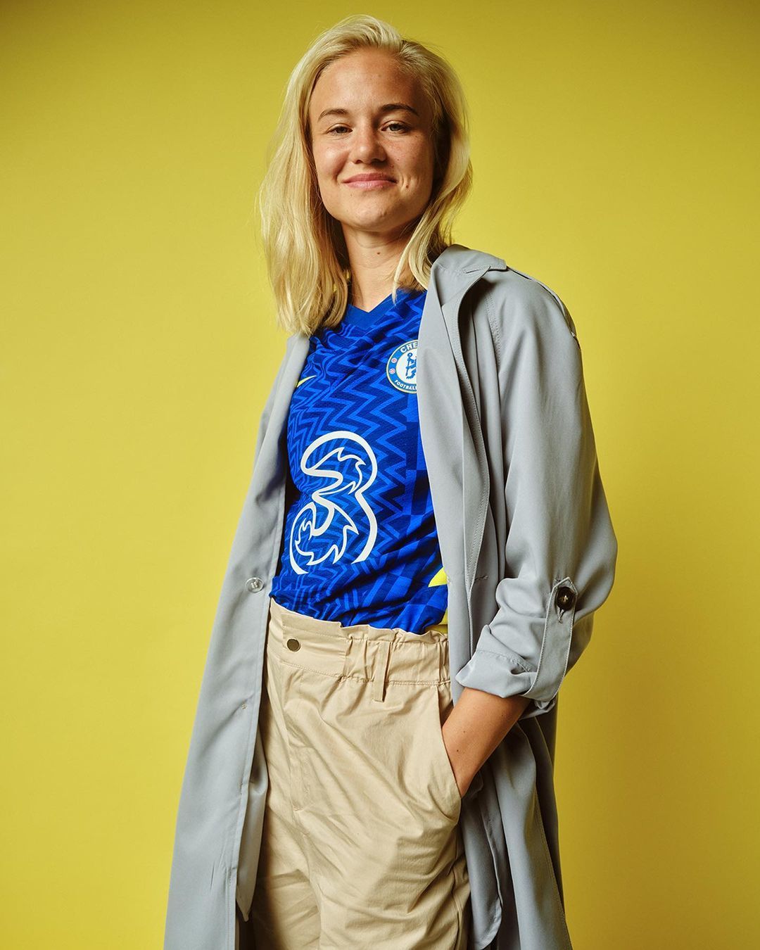 In addition to Chelsea's classic royal blue, the details are no longer black and light blue as in the last kit but yellow, bringing back a color that the club used especially in the sixties. On the back of the neck there is also another feature of that time: the "CFC" (Chelsea Football Club) engraving, a classic Chelsea prerogative of Peter Osgood.