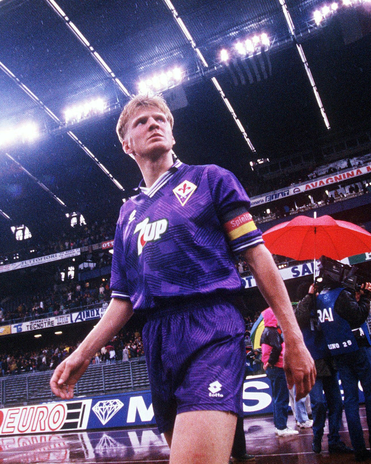 But still going backwards, a classic example also comes from Italian football. Lotto in the 1992-93 season is a sponsor of Fiorentina and, even if the kit goes down in history for the swastika created involuntarily by the geometric games in the upper part of the shirt, the Viola will be among the first teams in Serie A to have shorts with a design just that completes the kit by loading even more the uniform of character.