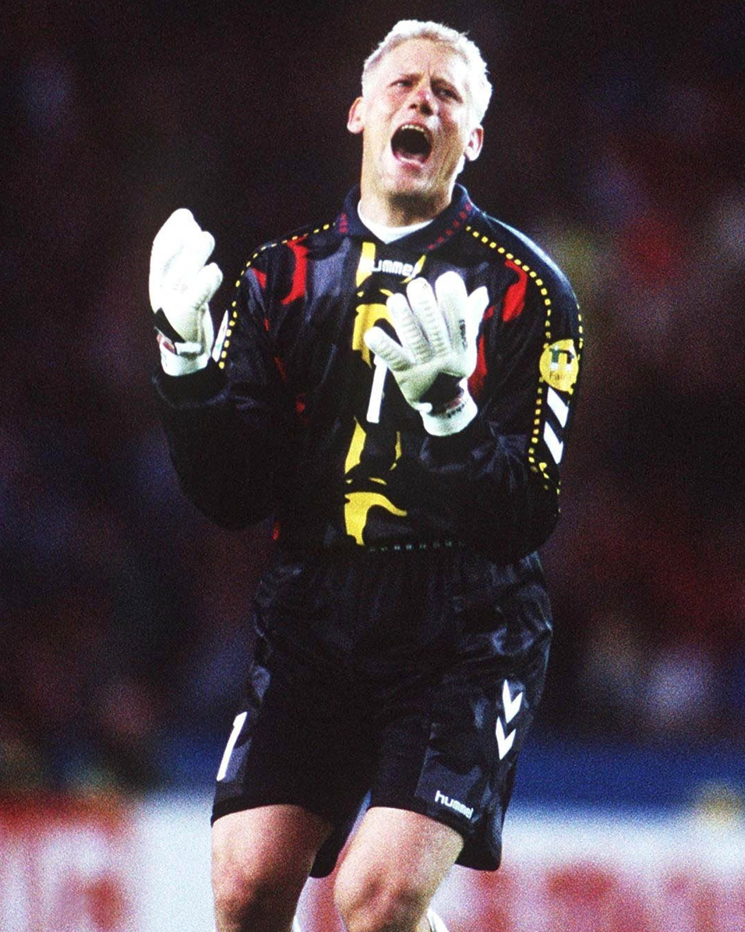 In fact, the three stripes brand will decorate Arsenal and Manchester United shorts with the iconic vertical stripes in the seasons from 1986 to 1988, both for the home version and for the away version. Staying at United, Peter Schmeichel's kits have often had shorts that are different from their colleagues and complementary also in terms of geometry compared to the shirt used. Complementarity that "The Great Dane" himself brought to Euro96 with his fantastic Denmark and with the support of Hummel, a brand capable of designing some of the best goalkeeper uniforms of all time.