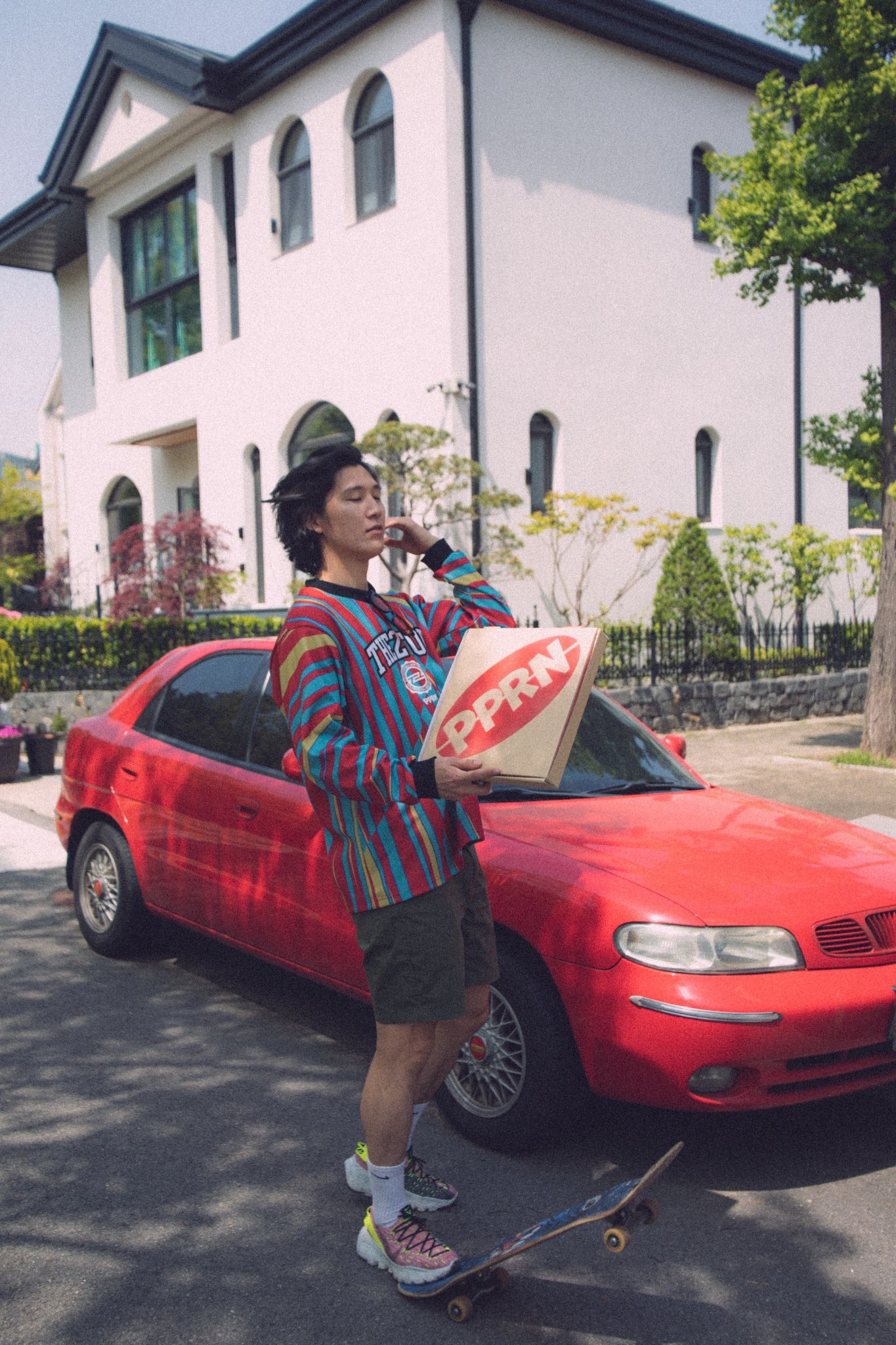 Inside the lookbook, Pepperoni Seoul showed all his satire streak by shooting THE 2TOP in one of the rich neighborhoods of the South Korean capital, combining some of the American stereotypes and the peculiarities of the brand such as pizza. Inside the lookbook there are also two videos in which the two freestyle stars dribble with ridiculous ease while eating pizza, once again Pepperoni Seoul's workhorse.
