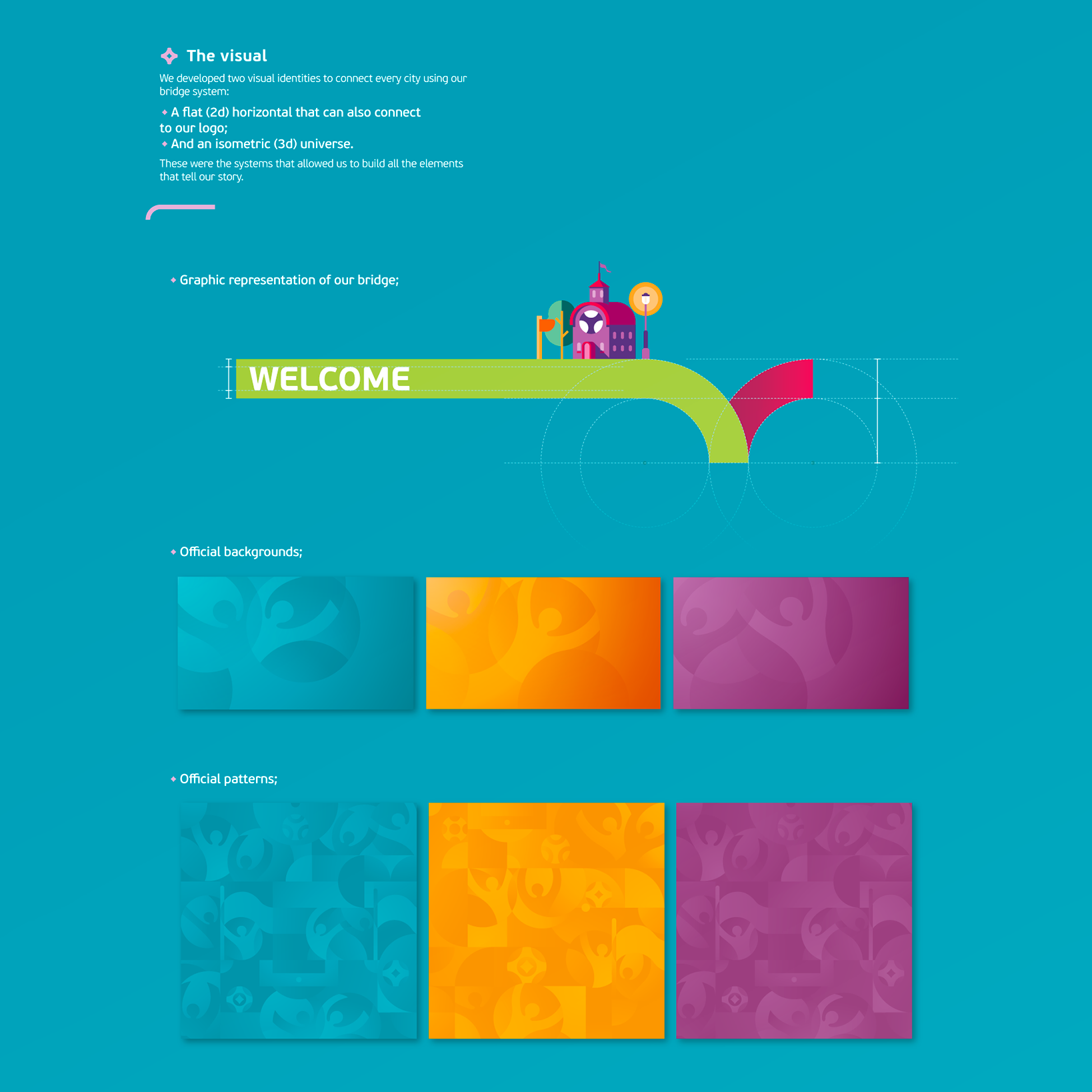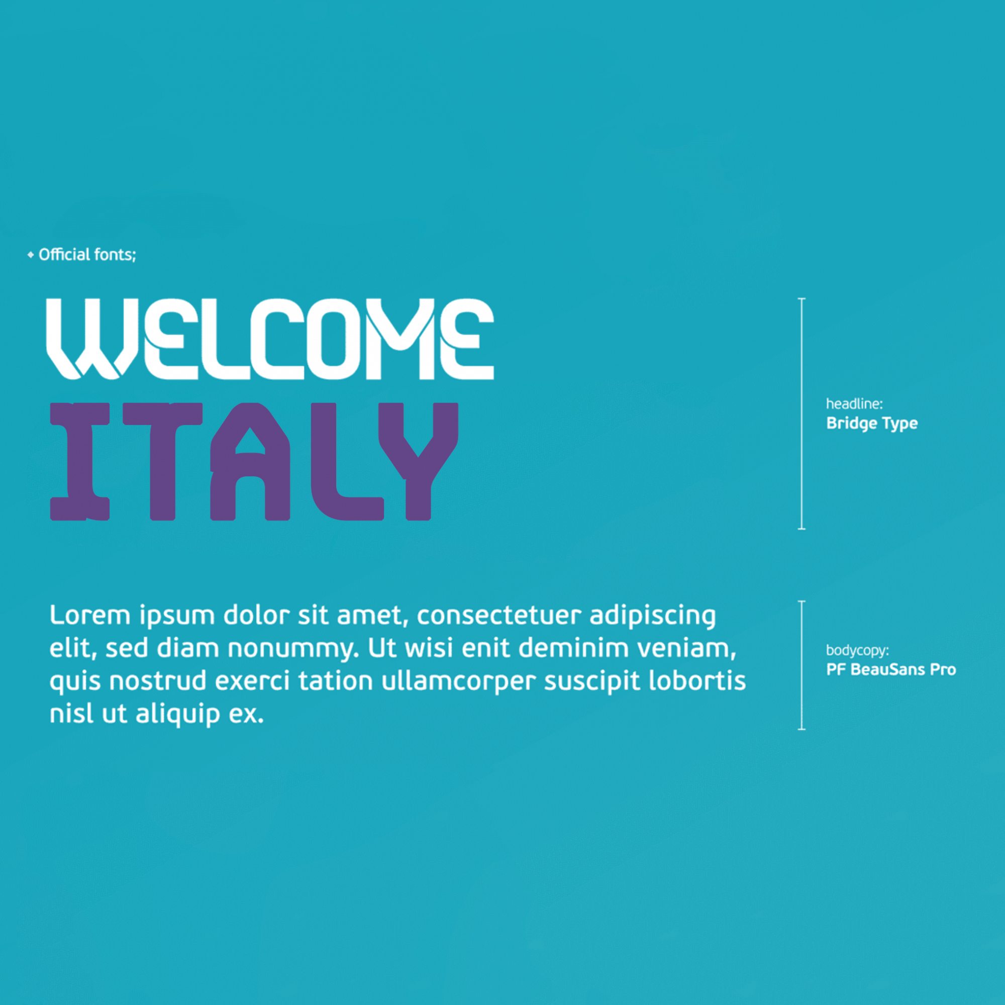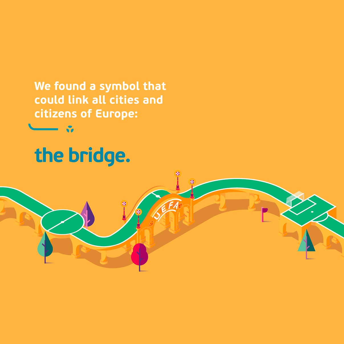 The desire to represent the connections between host countries, cities and players was the central idea of Young&Rubicam Portugal - who took care of the concept - and of Adotbelow - who took care of the creation of the font. The font seems to align with the one chosen by UEFA for the competition logo, but there are small differences that make it similar but not identical. For large texts the "Bridge Type" was used while for smaller texts the font is "PF Beau Sans Pro".