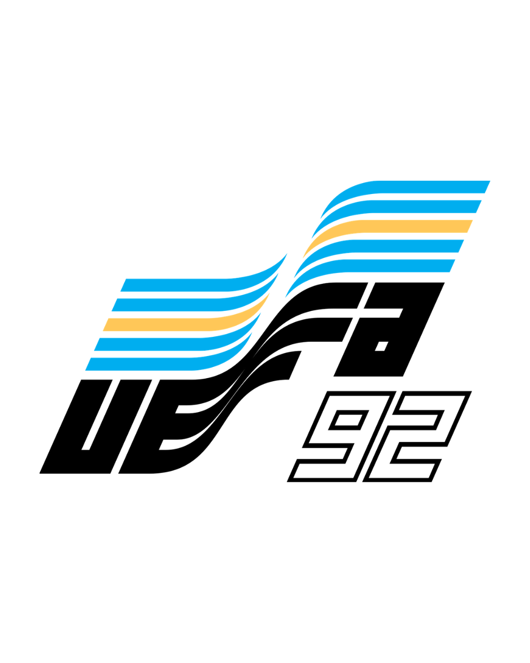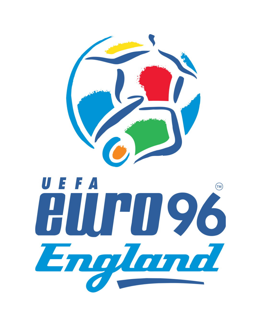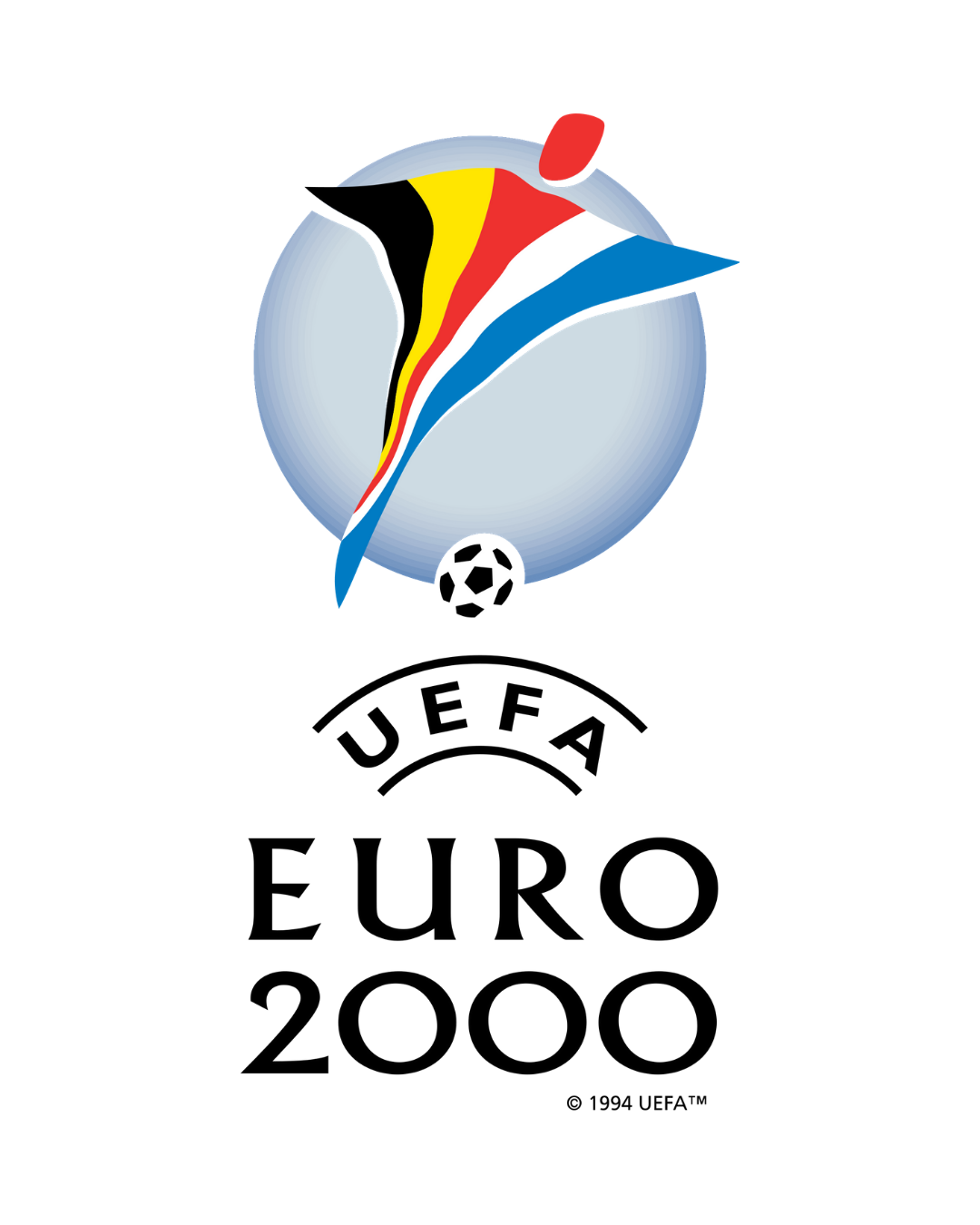 The tenth edition, in 1996, saw a real change in both visual and organisational terms, with 16 teams taking part. The standard logo, which until then had monopolised all editions, gave way to a new round design that UEFA would adopt until 2004, when Greece surprisingly won the competition. Brushstroke elements characterise all three logos, designed to highlight the dynamism of the sport but also the meeting of several countries and cultures, since in 2000, the European Championships were played for the first time in two different countries, Belgium and Holland. The result is more like a ghost wearing a multicoloured tunic, a positive note certainly being the use of the UEFA font.