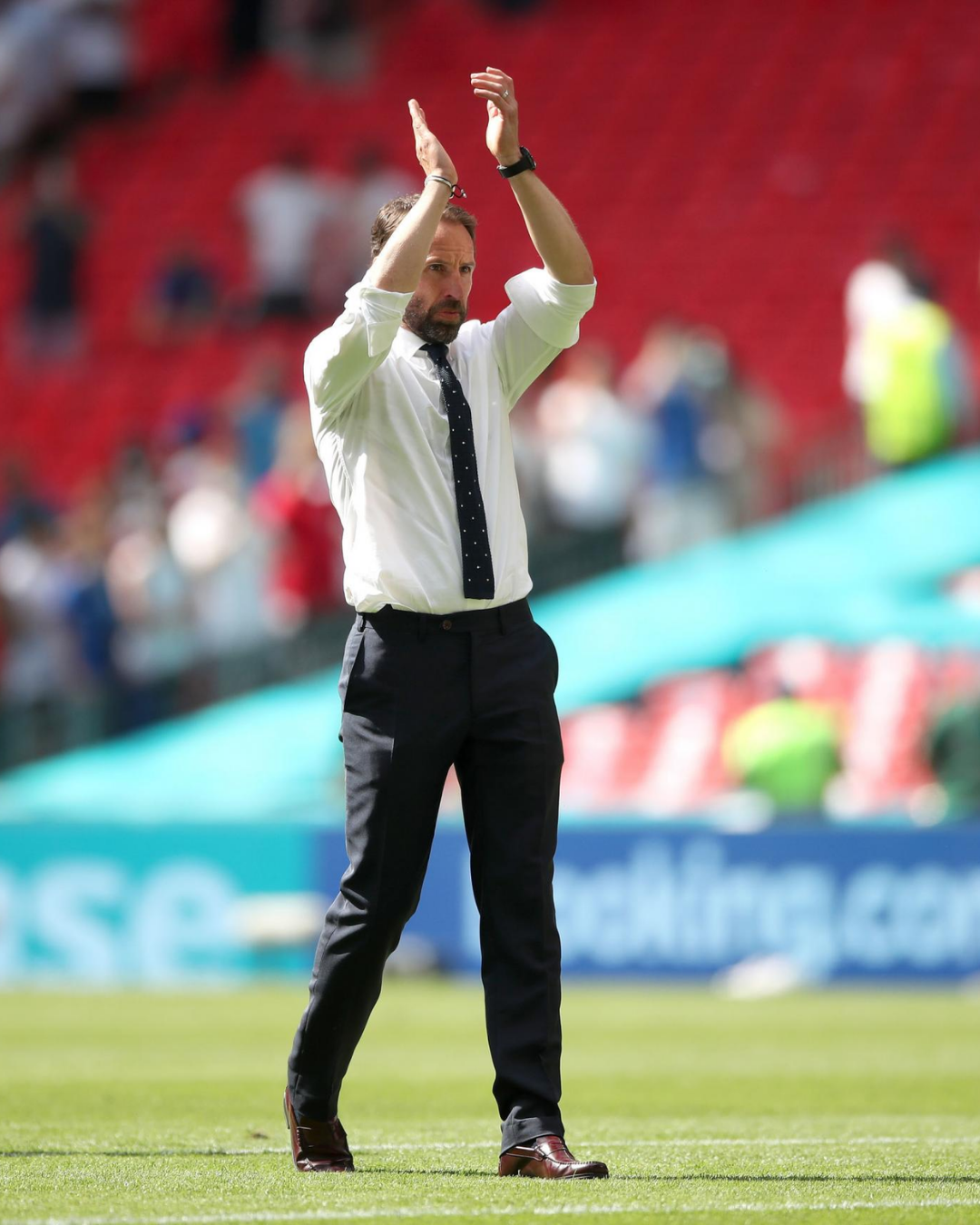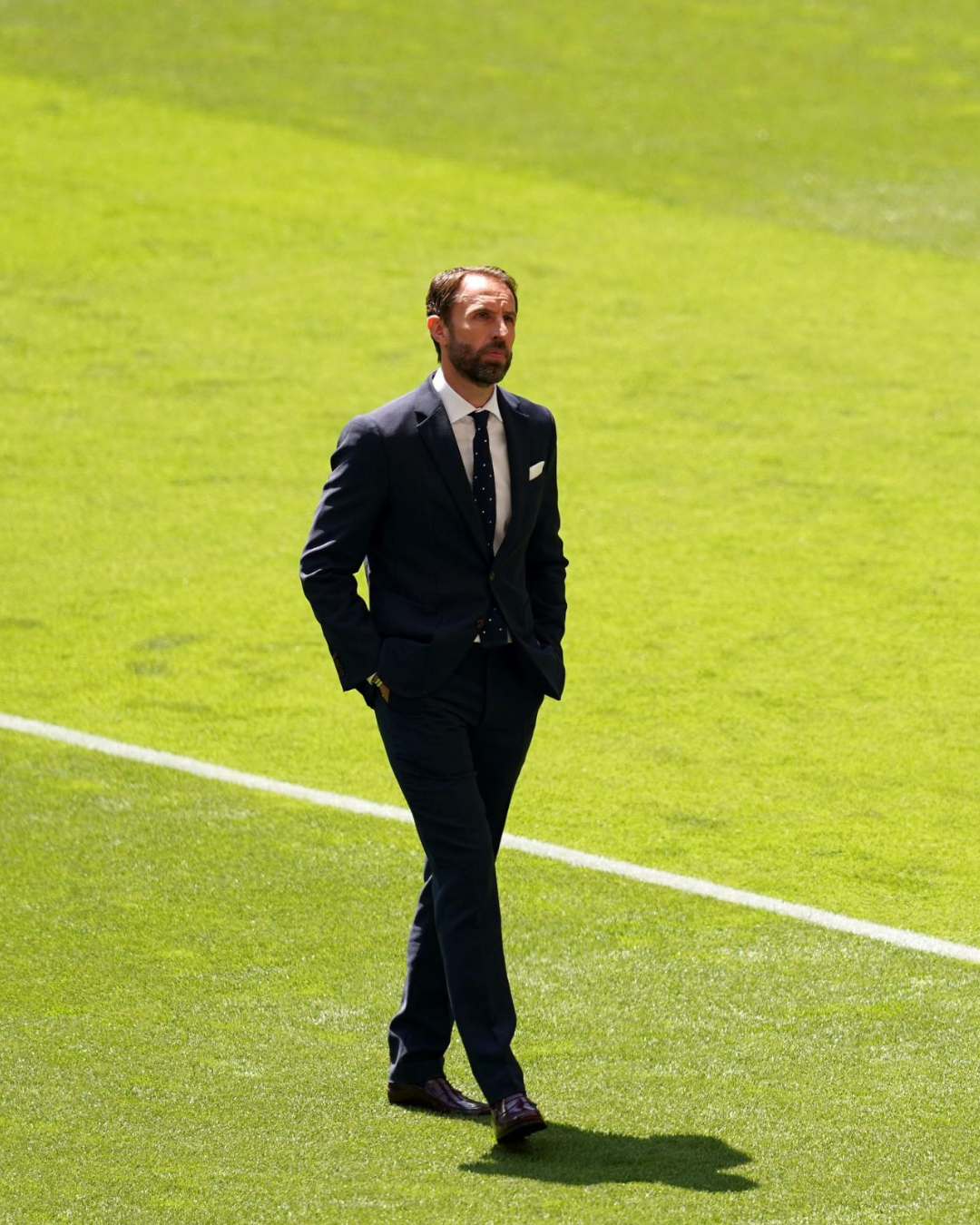 For England's first game it was the coach's new outfits that stole the headlines, and the related protests for abandoning the waistcoat. Southgate always appeared in a very formal suit in line with his style, accompanied by a navy blue tie with white polka dots. Throughout EURO2020, the Watford-born manager personally asked London-based brand Percival to create a number of bespoke looks for the bench.