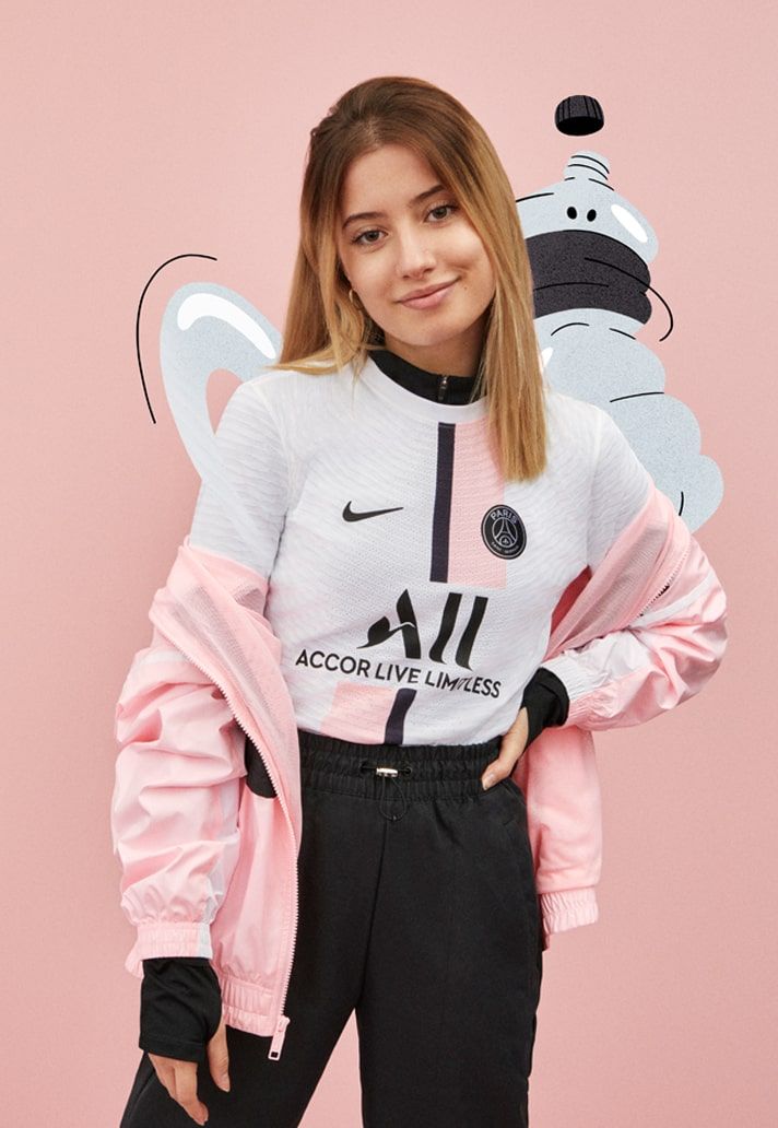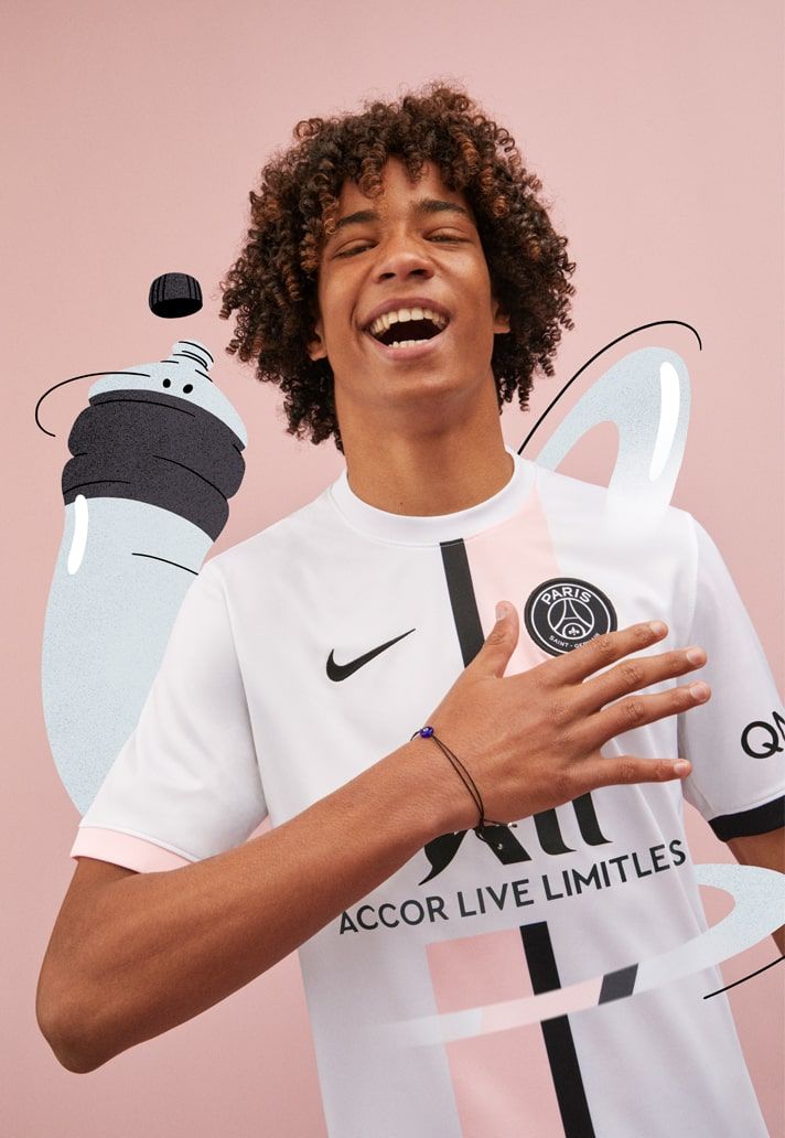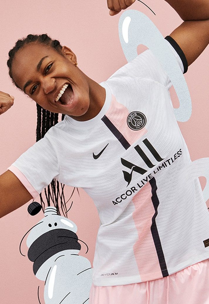 The 2021/2022 PSG away jersey The swoosh returns for the first pink jersey