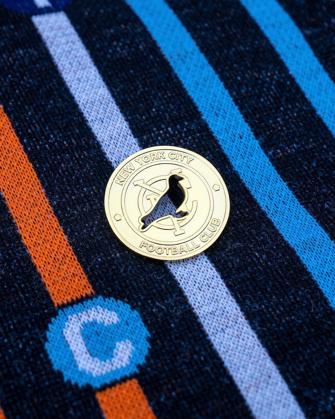Staple Pigeon, the brand founded by Jeff Staple and New York City Fc, the MLS club owned by the holding company City Football Group, which also controls Manchester City, have presented their first streetwear collection. The collection is based on the pigeon, symbol of both the brand and the club, which inspired both companies to collaborate. The collection includes a sweatshirt and two different t-shirts featuring the club's logo and crest and the famous Pigeon created by Jeff Staple, as well as more eccentric items such as the pintrill brooch and a black and white striped scarf. The designs chosen refer to the layout of the New York underground and the route between Staple's headquarters on the Lower East Side and NYCFC's headquarters at Yankee Stadium.