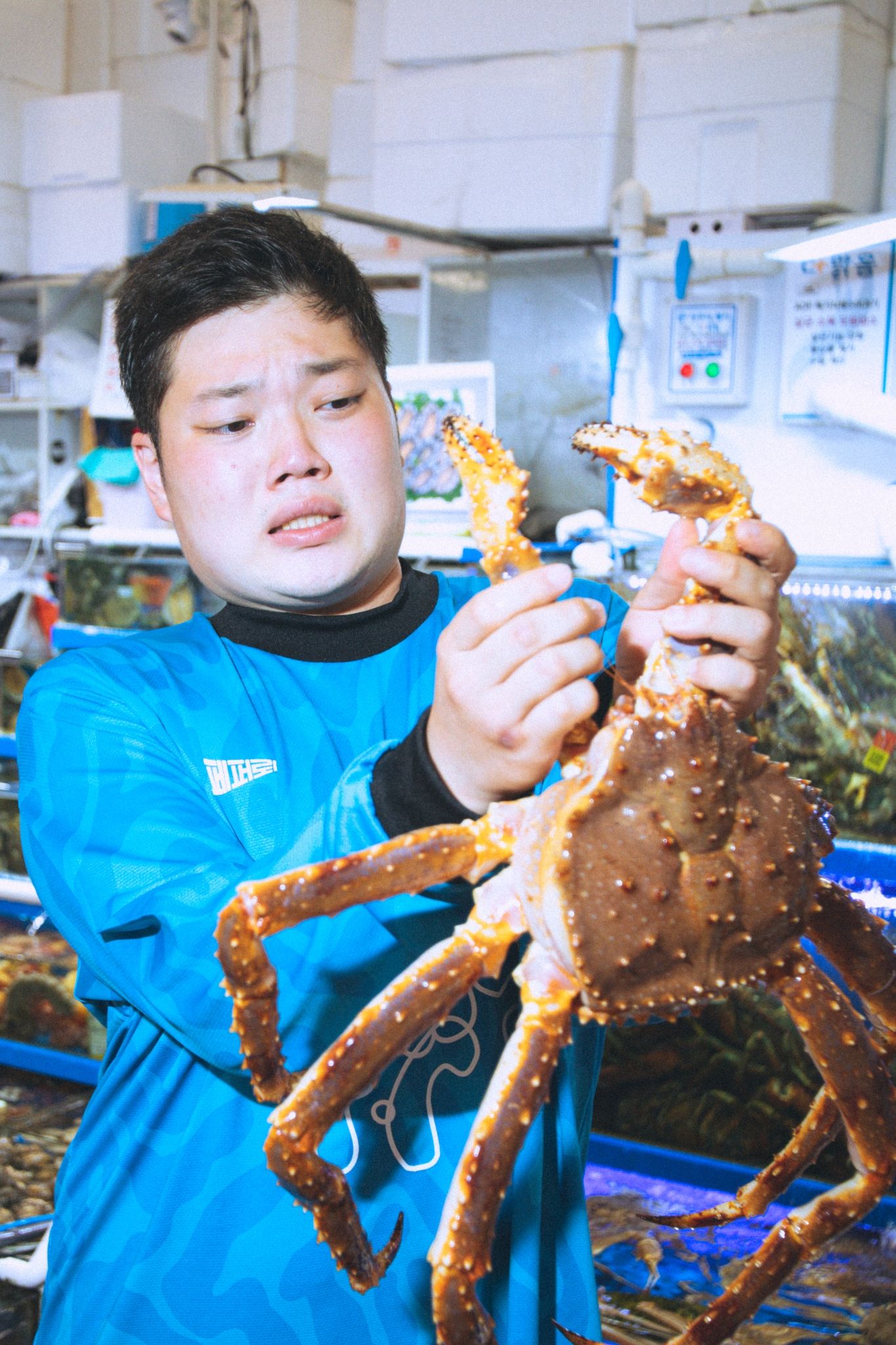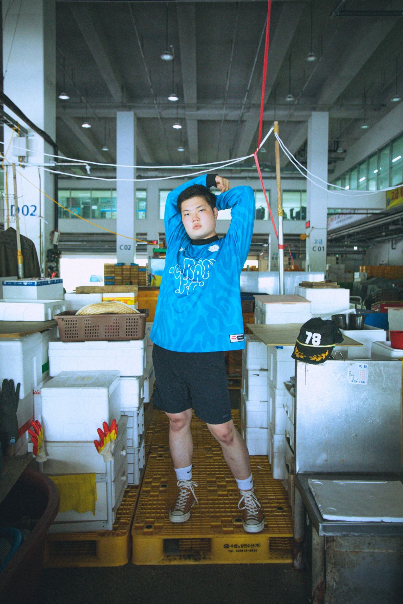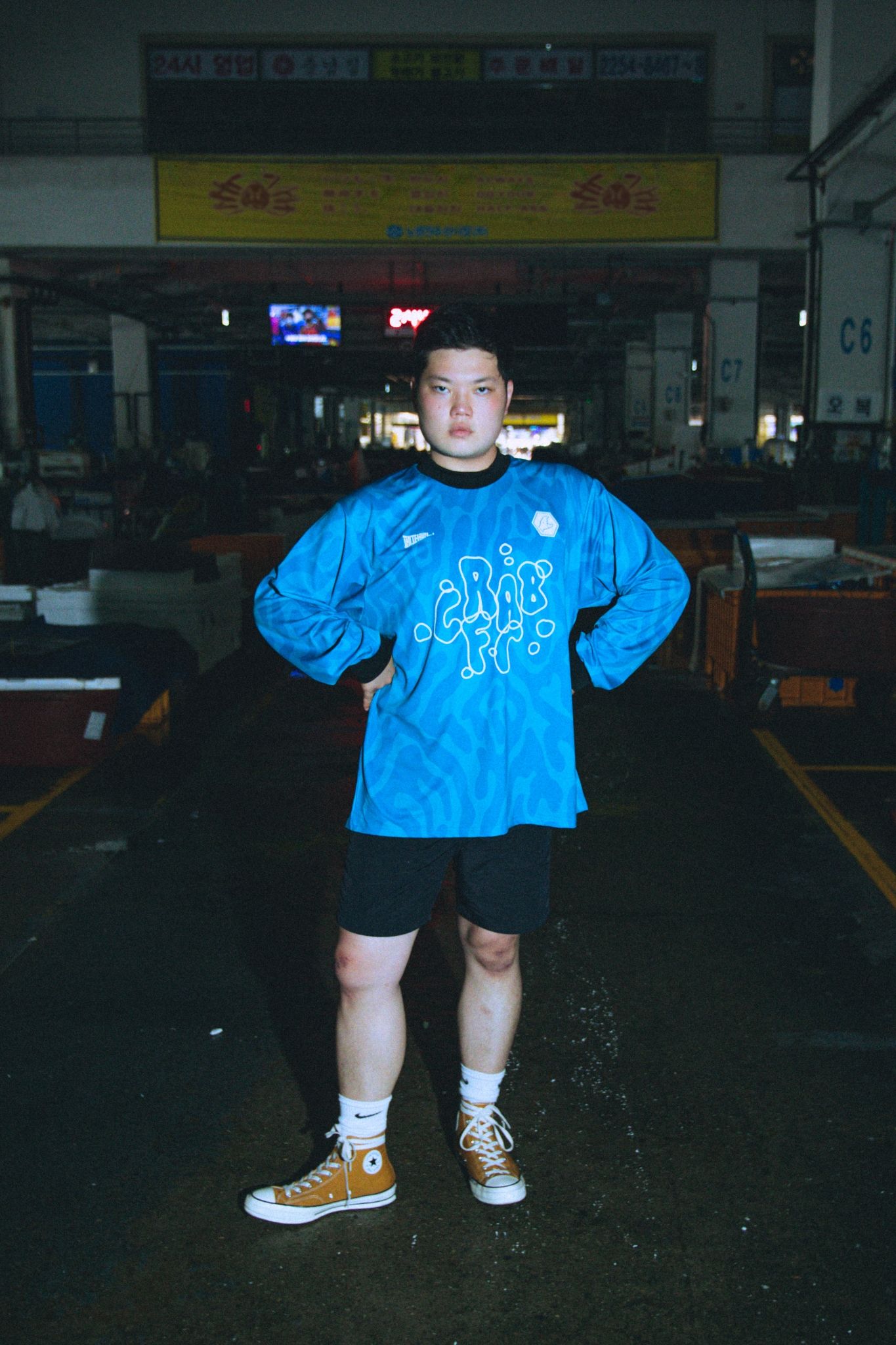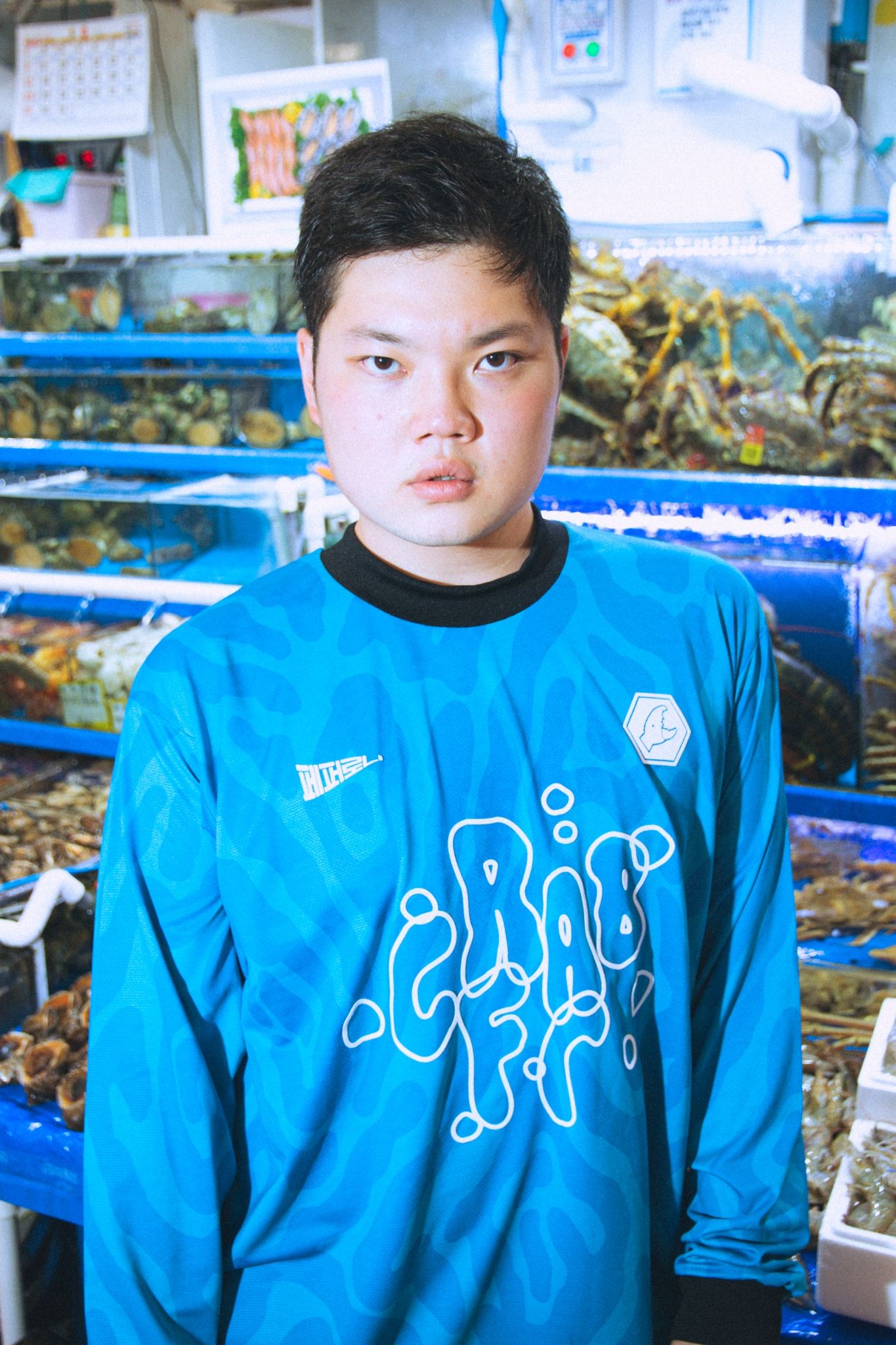The crab is clearly the focus of the shirt, with the double logo at the top of the shirt and with a writing - in obvious Spongebob style - by Crab.FC. It is no coincidence that the collaboration was born under the sign of Spongebob because in one of the most loved cartoons in the world there is precisely the cross between a crab and pizza in the famous "Krusty Krab Pizza". Crab.FC presents the collaboration shirt with an artwork by the illustrator STAY POSITIVE from Tokyo, while Pepperoni Seoul shows a lookbook taken in a fish market in the Korean capital complete with a giant crab.