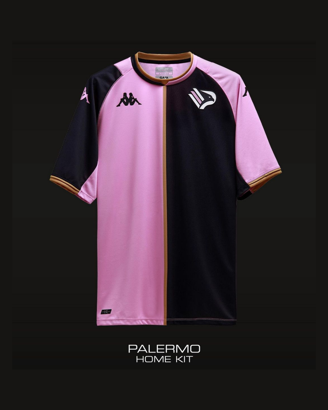 Inspired by the first book of the Bible, Genesis, Kappa and Palermo have presented the new shirts that will accompany the Rosanero in the new Lega Pro season. And they will do so with three shirts that have their roots in history. The two-colour design of the first Rosanero shirt in Palermo's history is back in the home shirt. A jersey reminiscent of the one made by adidas for Juventus in 2019, with the social colours equally divided and a small central stripe, in Palermo's case golden, in the centre of the jersey. The main novelty is undoubtedly that after so many years of almost exclusive prevalence of the colour pink, black returns as a protagonist as never before, the two colours have been balanced by Kappa in a perfect way.