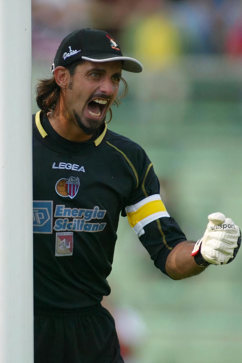 An ambassador of the most iconic and recognisable aesthetic canons of the most difficult role of all: Massimo Taibi. With his shirt always a little wider than necessary and strictly long-sleeved, like his trousers, the extreme defender used to wear a cap at times, both at Reggina and Venezia.