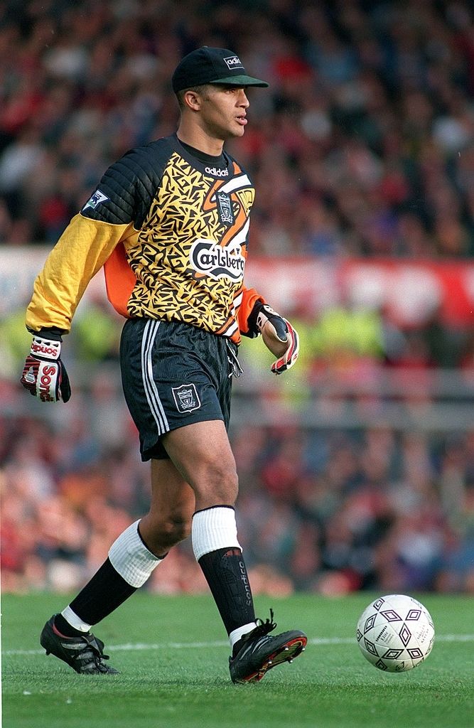 Another ambassador for this duo was Newcastle goalkeeper David James. Here in action during the FA match against Liverpool, the Englishman used to combine the iconic goalkeeper's jerseys of the English club with the sober cap, strictly monochrome given the complexity of the jersey.