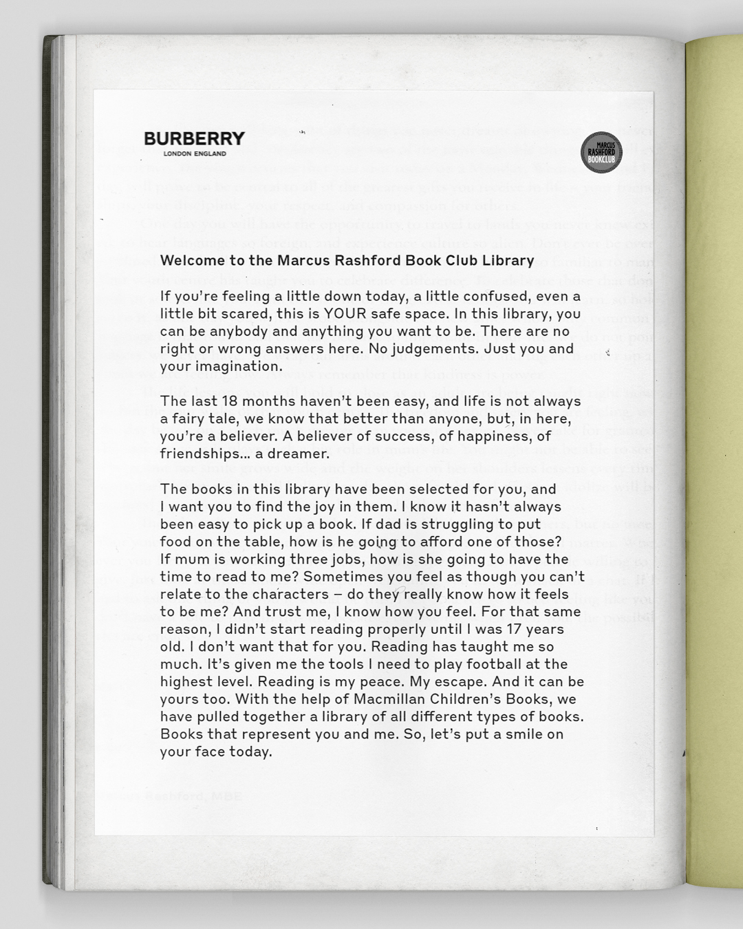 Burberry and Rashford together again for youth literacy An initiative to redefine the future to help and improve schools in Manchester, Yorkshire and London