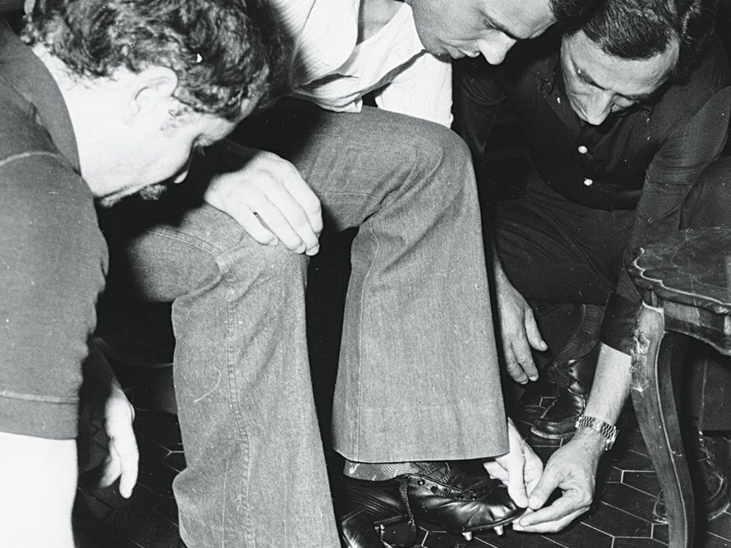 So since his wrestling shoes often slipped and hammered his feet with their nails and their hard skins, Lazzarini began to use the softest materials available. He was the first to use the calf, more malleable and flexible than the adult calf, to bind the feet of athletes, immediately obtaining excellent results. The best football players from all over Italy went to Ascoli to have their shoes made to measure by Lazzarini. From Sivori to Angelillo, from Mazzola to Rivera, from Di Stefano to Altafini, all of them went crazy for the soft and elastic leather and the modern stitching that replaced the nails.