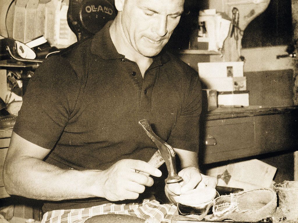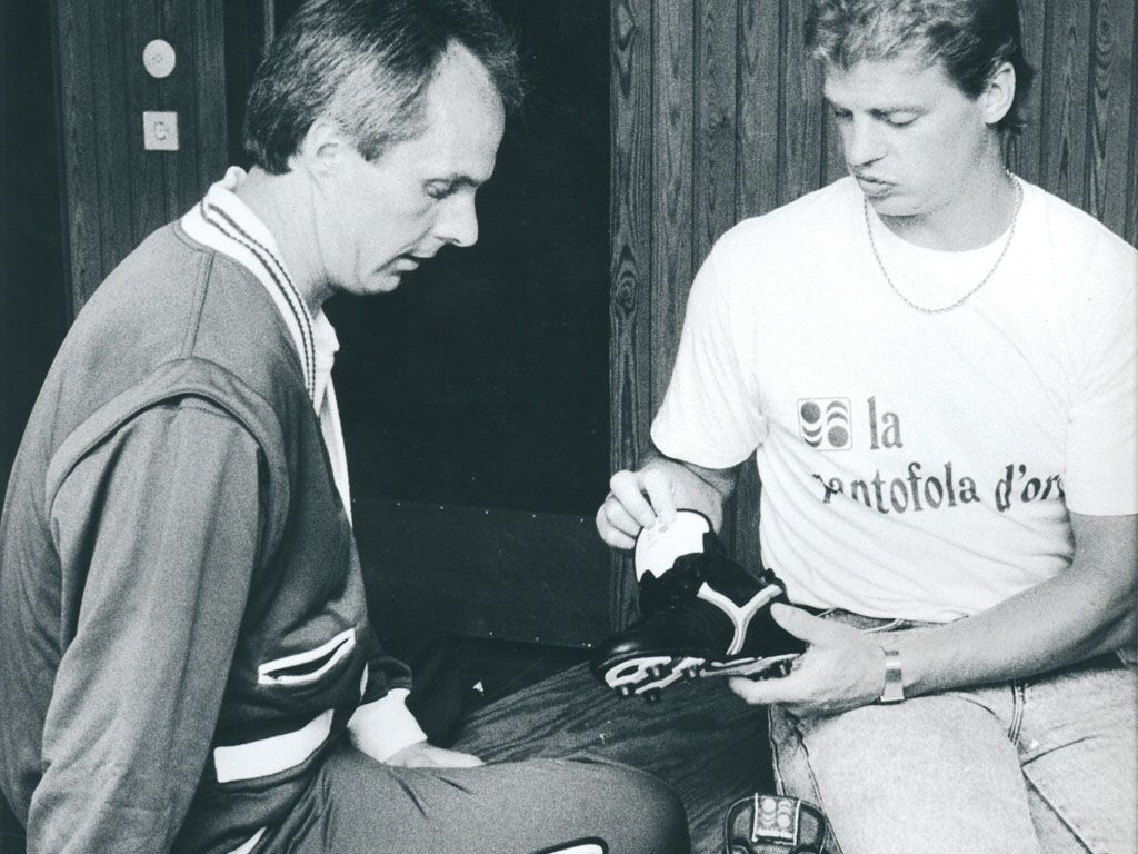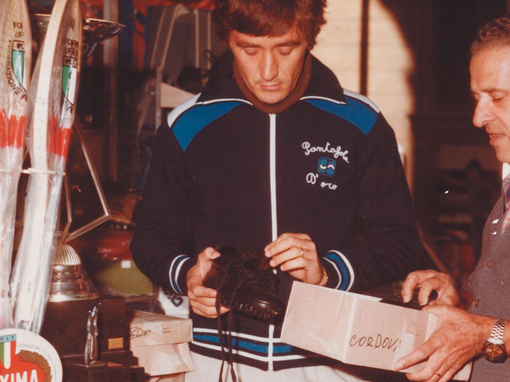The name was invented by John Charles, Juventus' Welsh top scorer, who, when putting them on his foot, exclaimed that they were more comfortable than his slippers, but the rest of Pantofola d'Oro's success belongs to Emidio Lazzarini. Son of shoemakers from Ascoli Piceno, before taking over the family business, Lazzarini had invented a long series of professions, from wrestler to billiard player, even moving to Nazi Germany in order to pursue his career as a sportsman. But when it was time to hang up his proverbial shoes, he realized that they could have become the reason why his name would have reached the coveted fame. Like many athletes, Lazzarini during his activity put aside the necessary field experience to improve the equipment used in performance to create revolutionary prototypes.