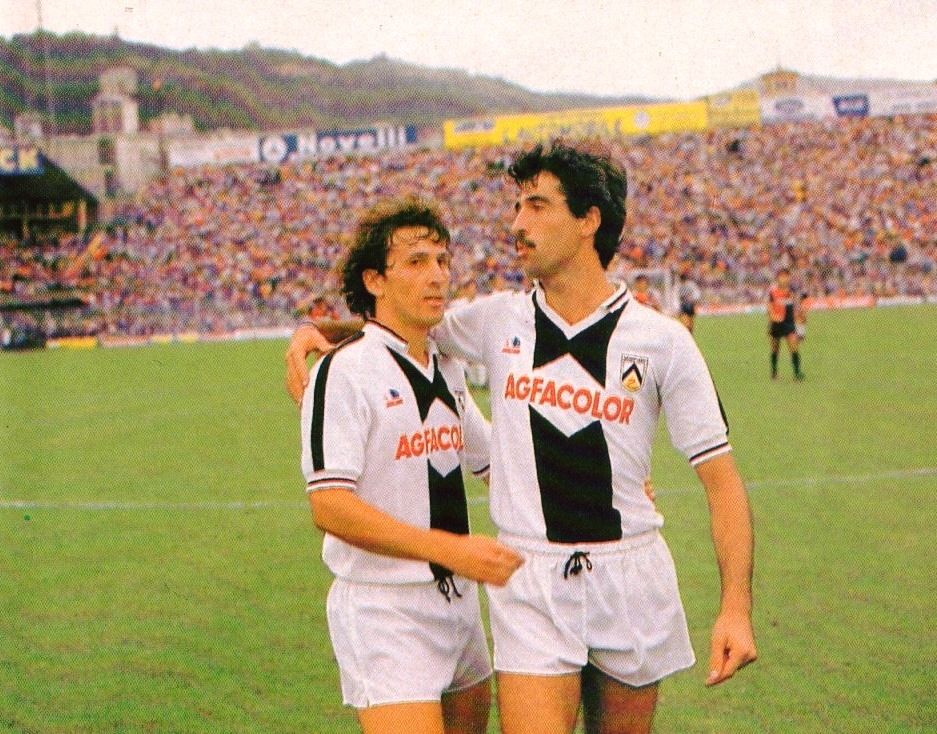 The arrival of Americanino on the bianconeri's shirts coincided with the return to Serie A of the Friulians, who after a splendid ride from the now defunct C1, managed to reach the top division in five years. Unfortunately for the brand, despite the arrival of great players and coaches, Udinese failed to make its mark in Serie A, always gravitating above the salvation zone, except in the second year when it reached a miraculous sixth place. A binomial between the Friulians and Americanino that lasted only three years since the brand, like the other fashion brands that operated in football, was swept away by the wave of the big Italian and foreign sportswear companies, and Diadora, which soon signed the Italian national team, took the place of the brand so loved by the paninari on the black and white striped shirts.