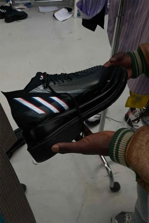 As always, the Paris Fashion Week shows demonstrate the strong relationship between soccer and fashion, and after Off-White and David Koma, Parisian fashion house BOTTER has unveiled directly on the catwalk its collaboration with adidas. Rushemy Botter and LisiHerrebrugh's label released for the FW22 "Dear Earth" collection its models with shoes on their feet obtained by putting a pair of soccer shoes on the upper of a leather Derby shoe. BOTTER had already collaborated with adidas' partner company Parley for the Oceans in the SS22 collection, and in this new collection he decided to create this cross between a performance shoe with a formal shoe.