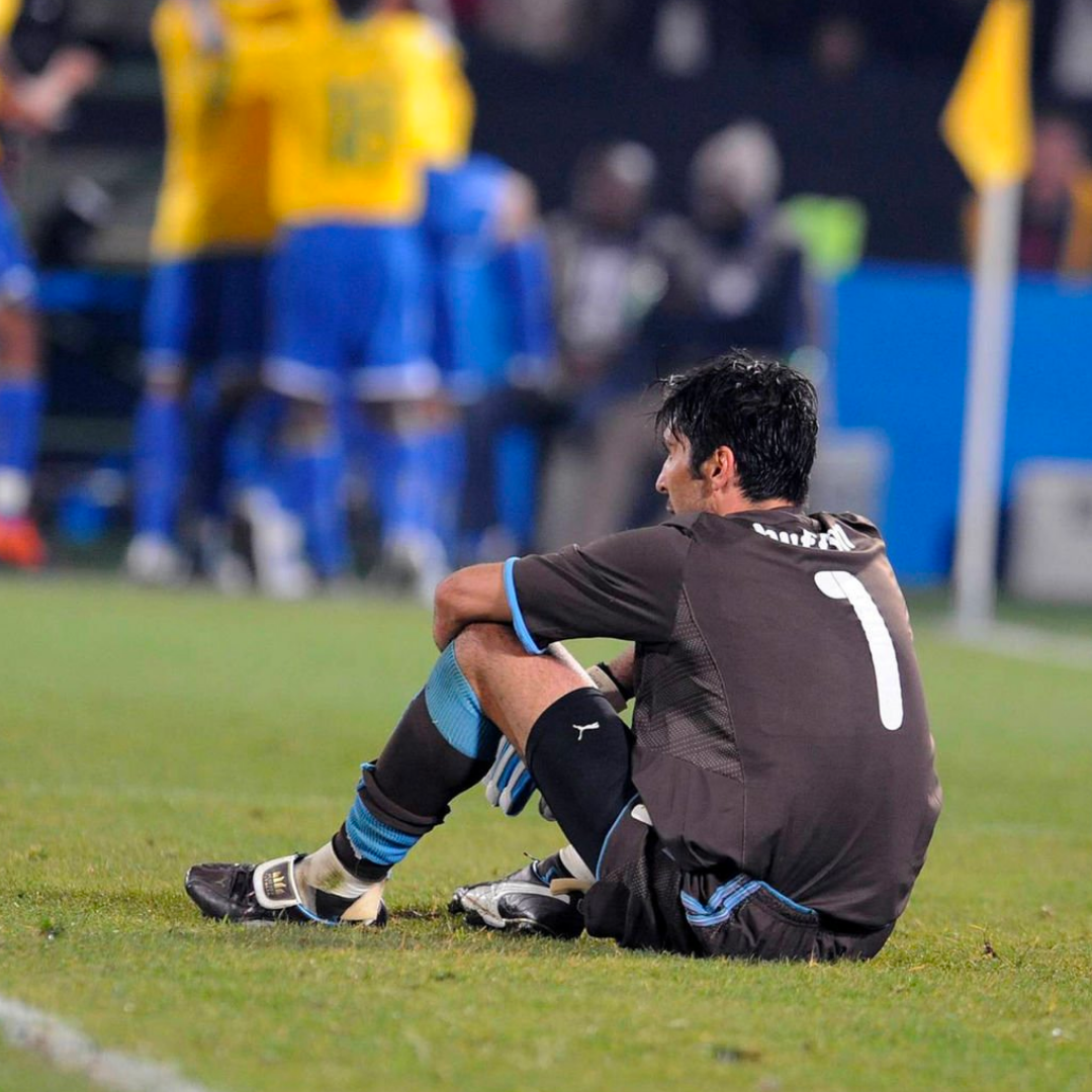 Same year, same competition, another jersey that will be impossible to forget is the goalkeeper's jersey worn exclusively by Buffon. The goalkeeper's jersey took up the brown of the shorts of the movement players. Unfortunately, the Azzurri were not very lucky and in the group with Egypt, Brazil and the United States they collected only one victory, which was not enough to reach the stages of the tournament, which was won by the greenoro team in a strange and beautiful final with the USA.