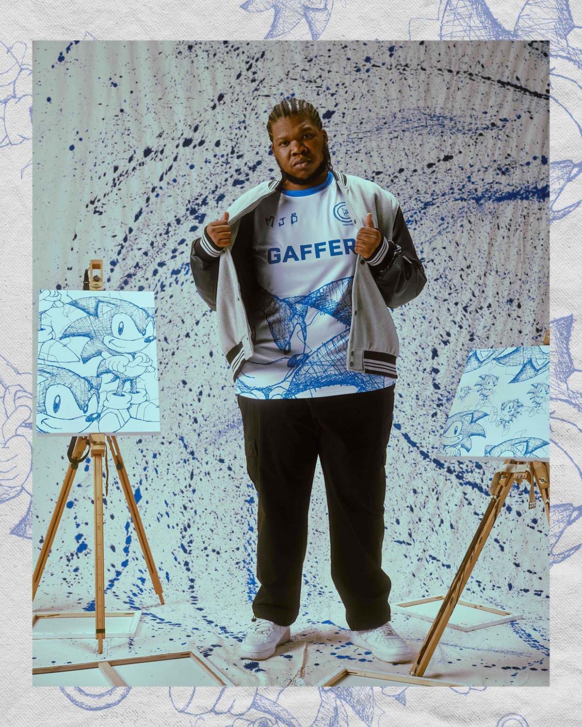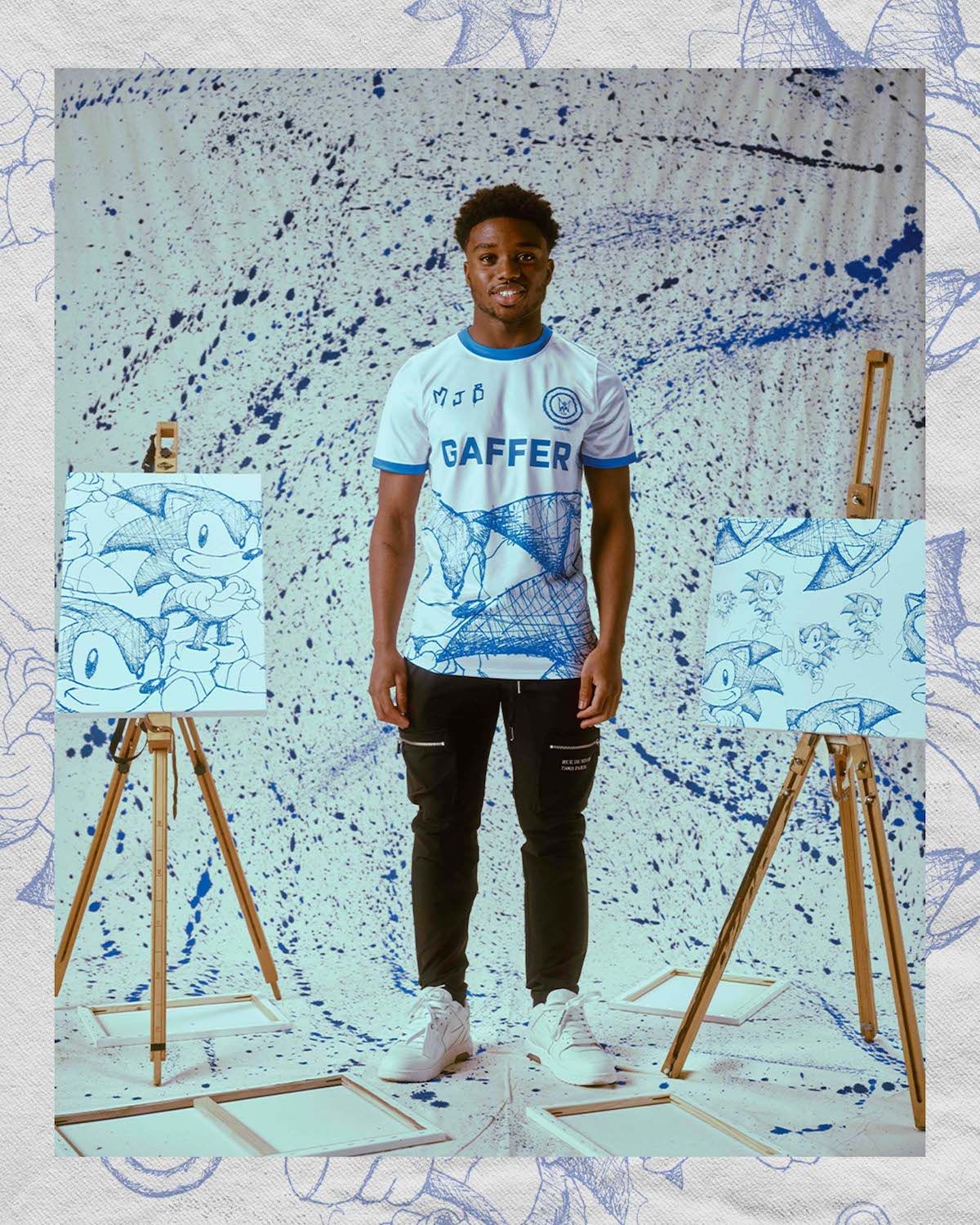 British creative studio GAFFER and Marc Jacques Burton have joined forces to collaborate on a trio of football shirts that pay homage to one of SEGA's most iconic video games, Sonic The Hedgehog. It's a tribute to the hedgehog who can exceed the speed of sound and who was an essential part of the culture of the 90s and an integral part of the evolution of video games, mixing together entertainment, cinema and sport. This is the third shirt dedicated to Sonic, the video game created to counter the monopoly of Nintendo and Super Mario, the home and away kits were already unveiled last month and put on sale at Selfridges and Harrods, while already from today you can buy the third limited edition version exclusively through StockX DropX.