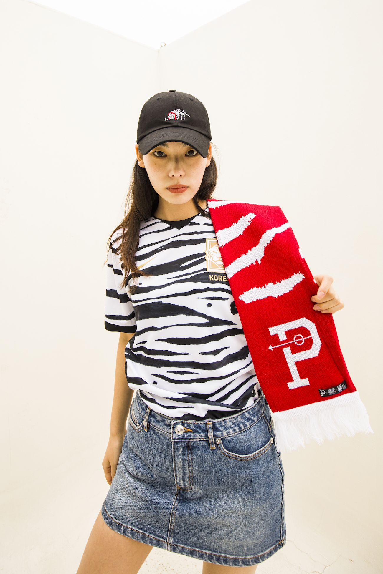 After the various collaborations with Paris Saint Germain and the one with Tottenham a few months ago, Over the Pitch is back once again to amaze. The Korean collective, together with the Korean national team and Act Up, has conceived and designed a new and special collection that includes: a hat, a scarf and a bag. The period chosen is no coincidence: the entire collection will be released today on the occasion of the World Cup qualifying match against Iran, which has already been won with a goal from its most representative player Son Heung-min. The entire collection is centred around the tiger, emblem and symbol of the Korean national football team, personally designed by Gaeko, one of Act Up's two designers.
