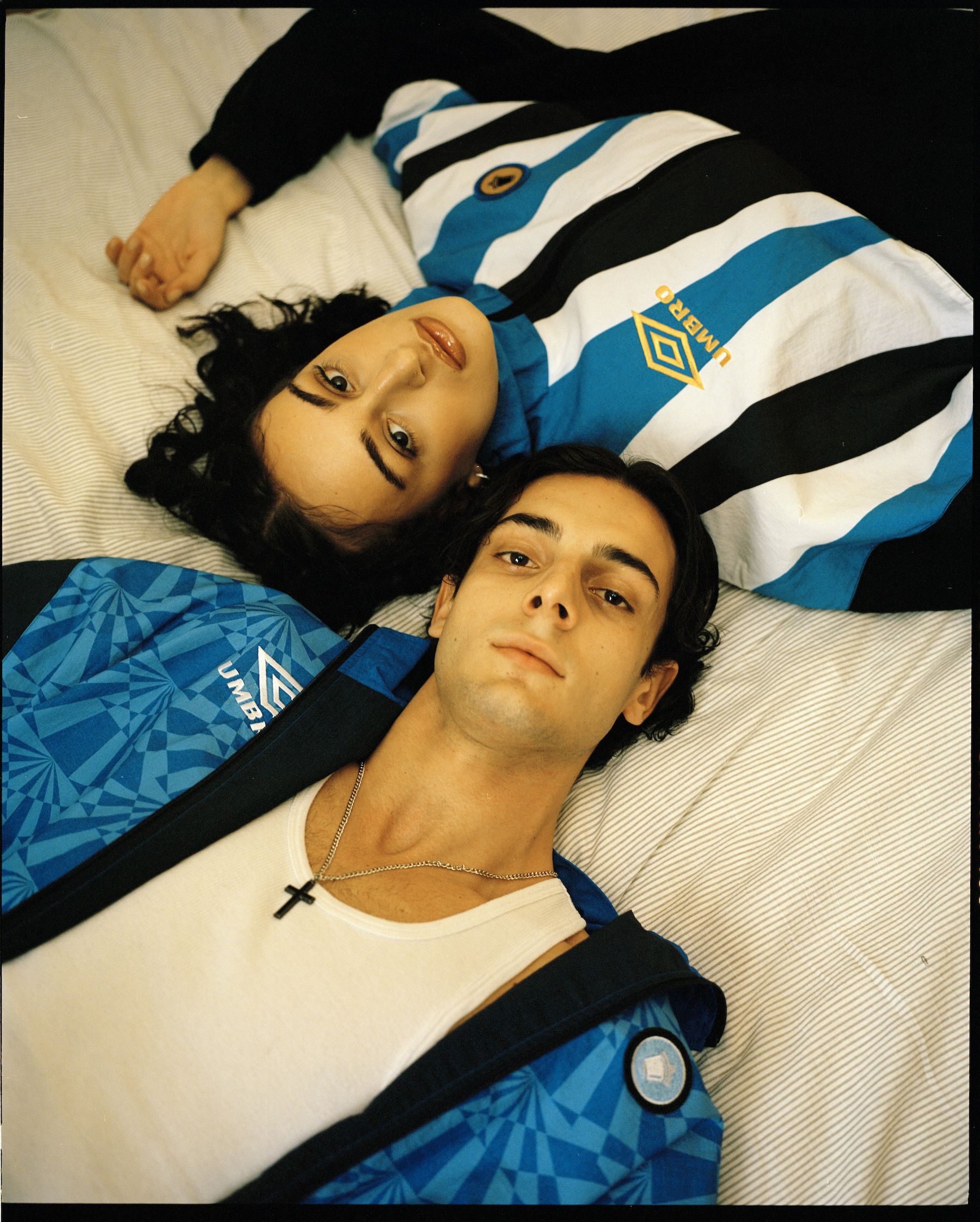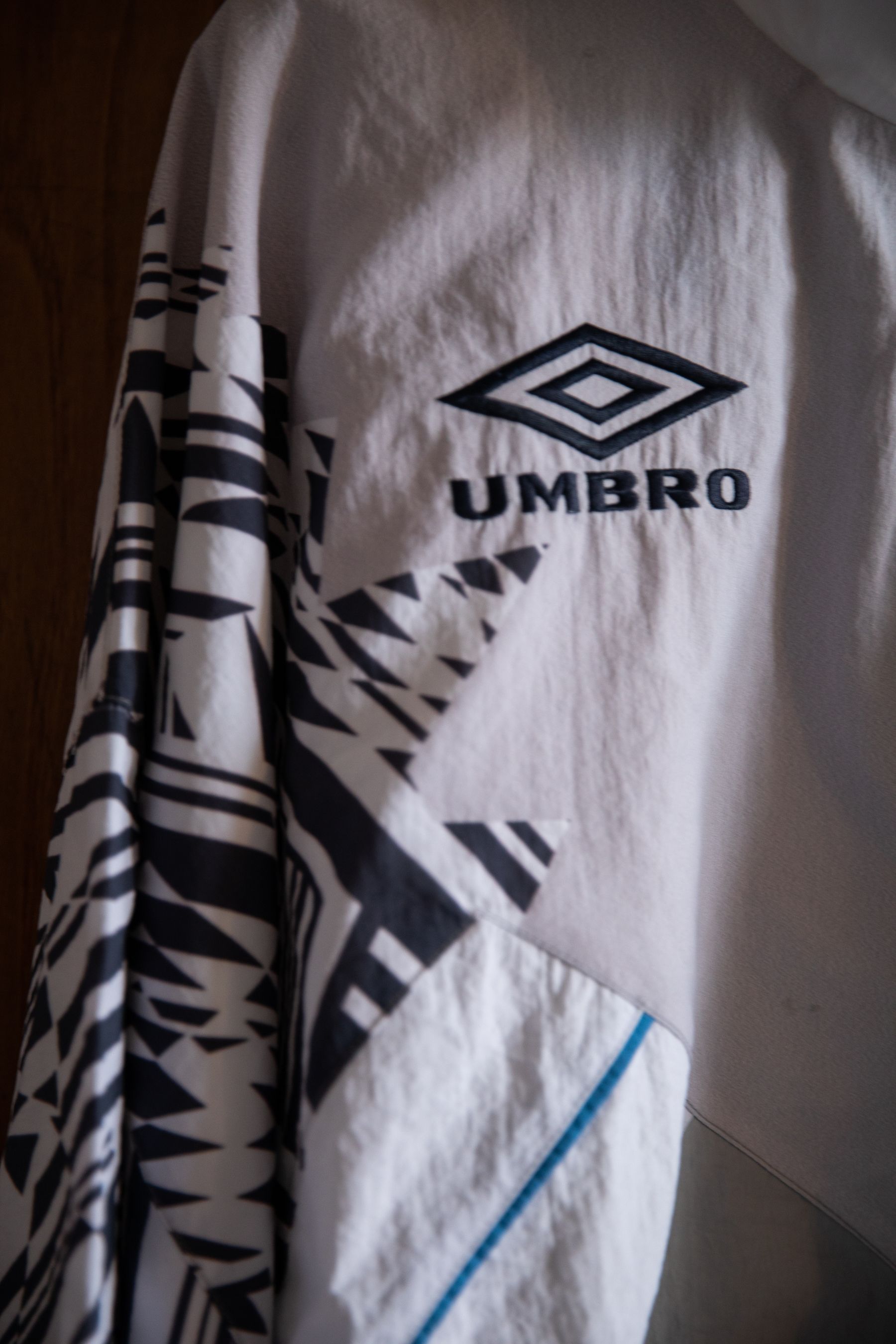 The collection consists of three track jackets, iconic pieces of the collaboration, with over fit and the unmistakable Umbro geometries, then sweatshirts, trousers and t-shirts with the characteristic taping. Three iconic patterns dusted off thanks to the contribution of Tacchettee, an independent brand that makes celebrating the many nuances between pop culture and the most beautiful game in the world its credo. Impossible not to recognise them. A collaboration born from a shared nostalgic pleasure for authentic football, experienced with a joyful and ironic spirit on and off the pitch, from the most monumental stadiums to the dirt pitches of the suburbs. After dominating the 90s, it is now making a strong comeback, showing us how those patterns and geometries are still more than relevant in the world of fashion.