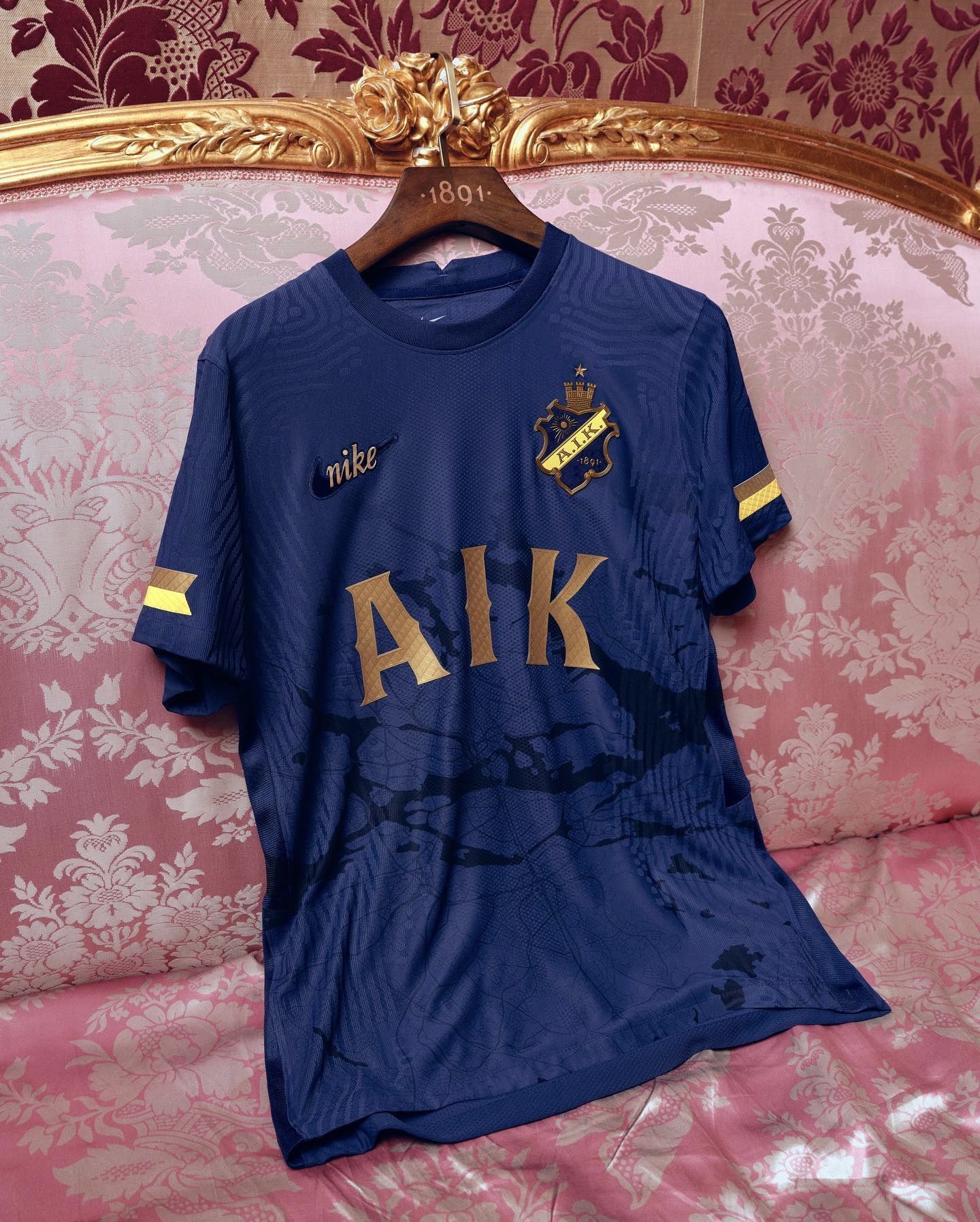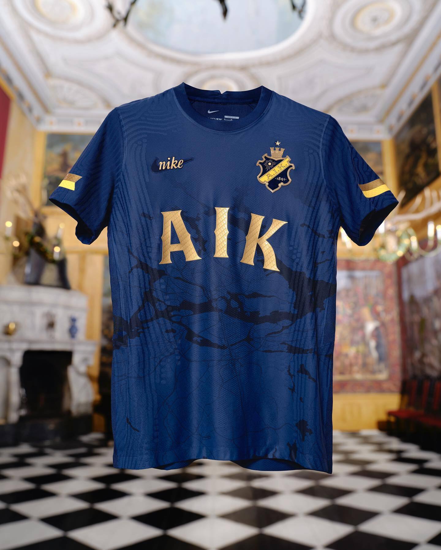 One of the most iconic was made just this year, again by Nike, who to celebrate AIK's 131st anniversary in an unprecedented dark royal blue, never before used in official AIK jerseys, placed a map of Stockholm on the chest, to once again certify the relationship between the team and the city, playing with colour tones. The gold details further embellish the jersey and give it the sense of opulence and solemnity that we associate with the royal court.