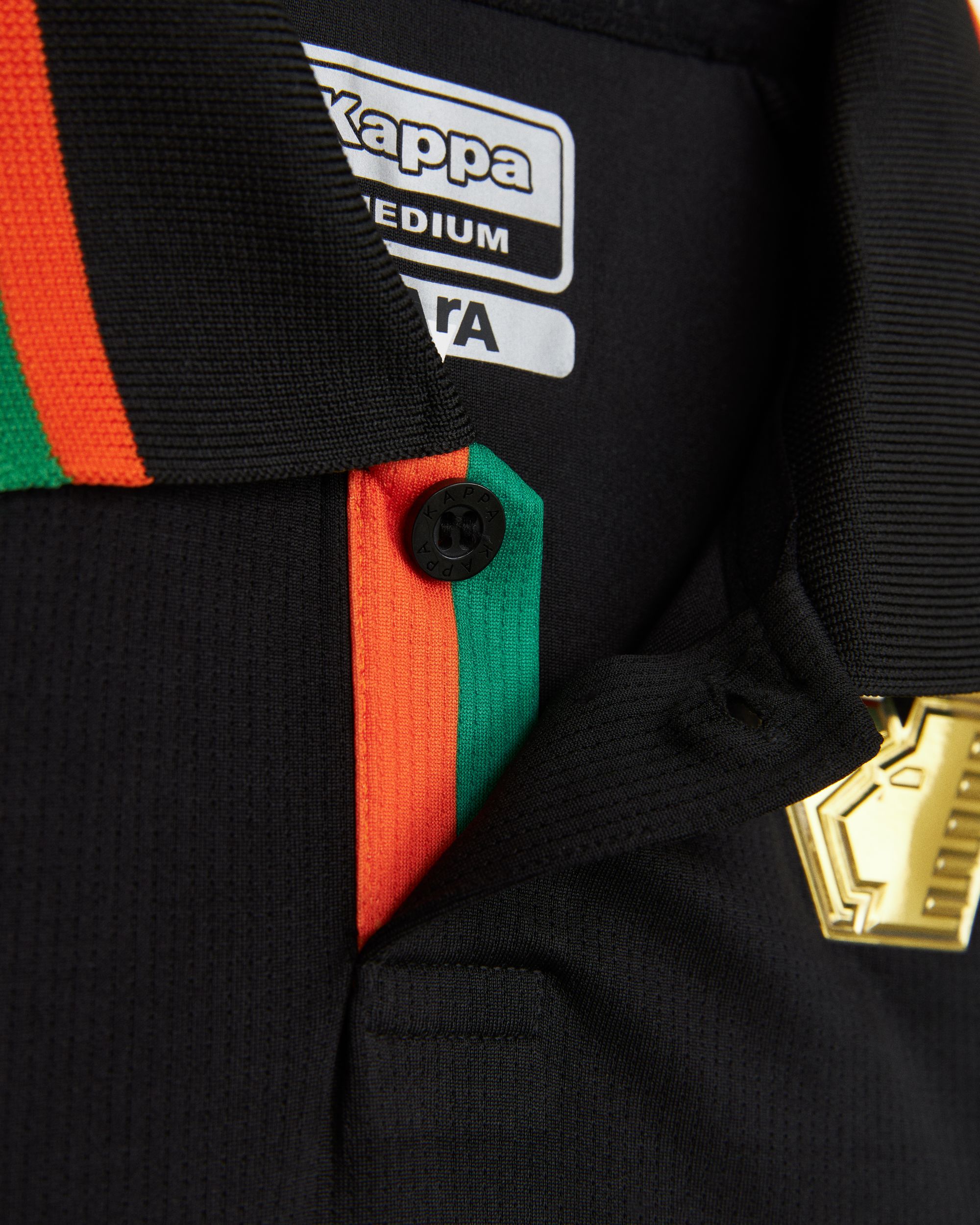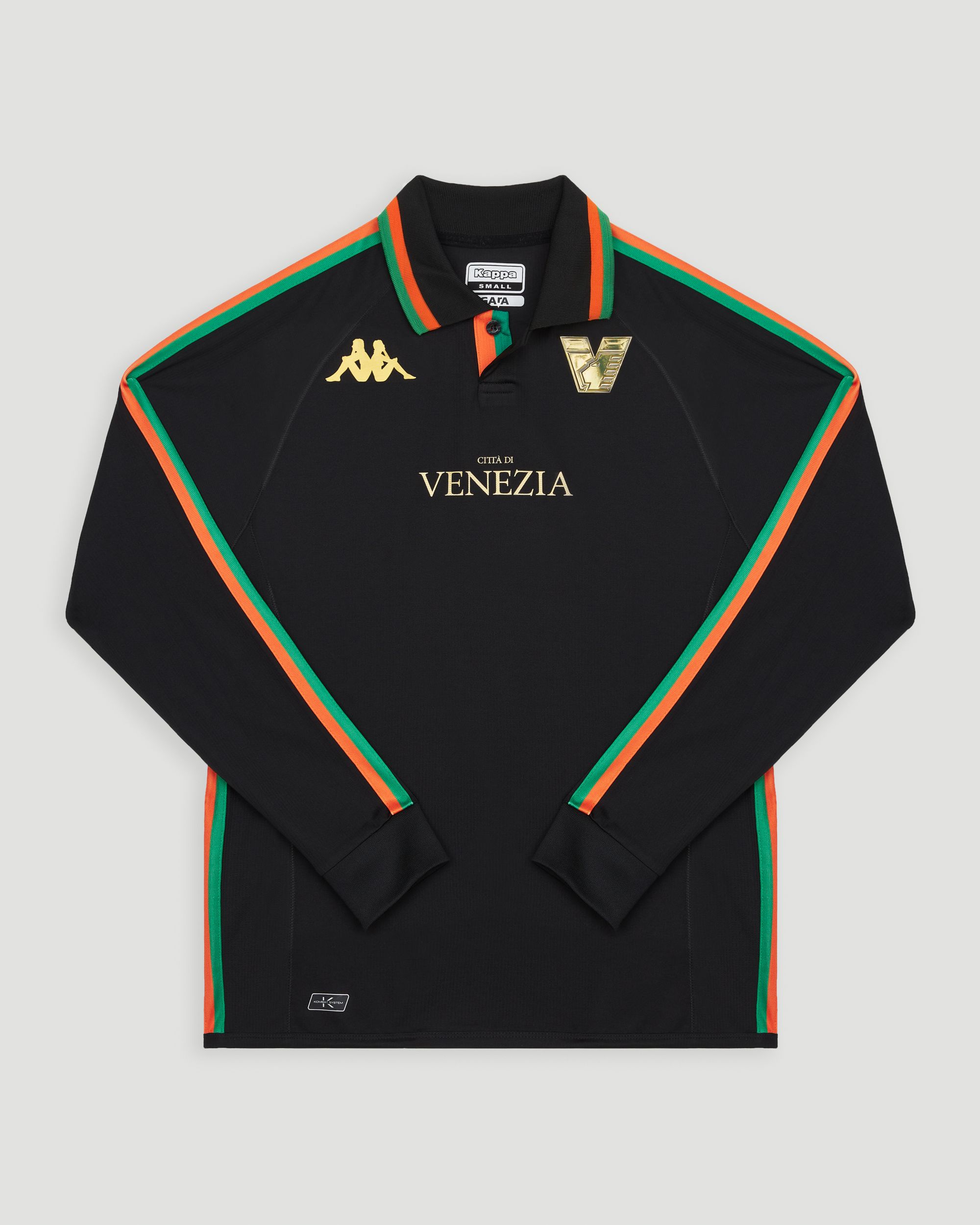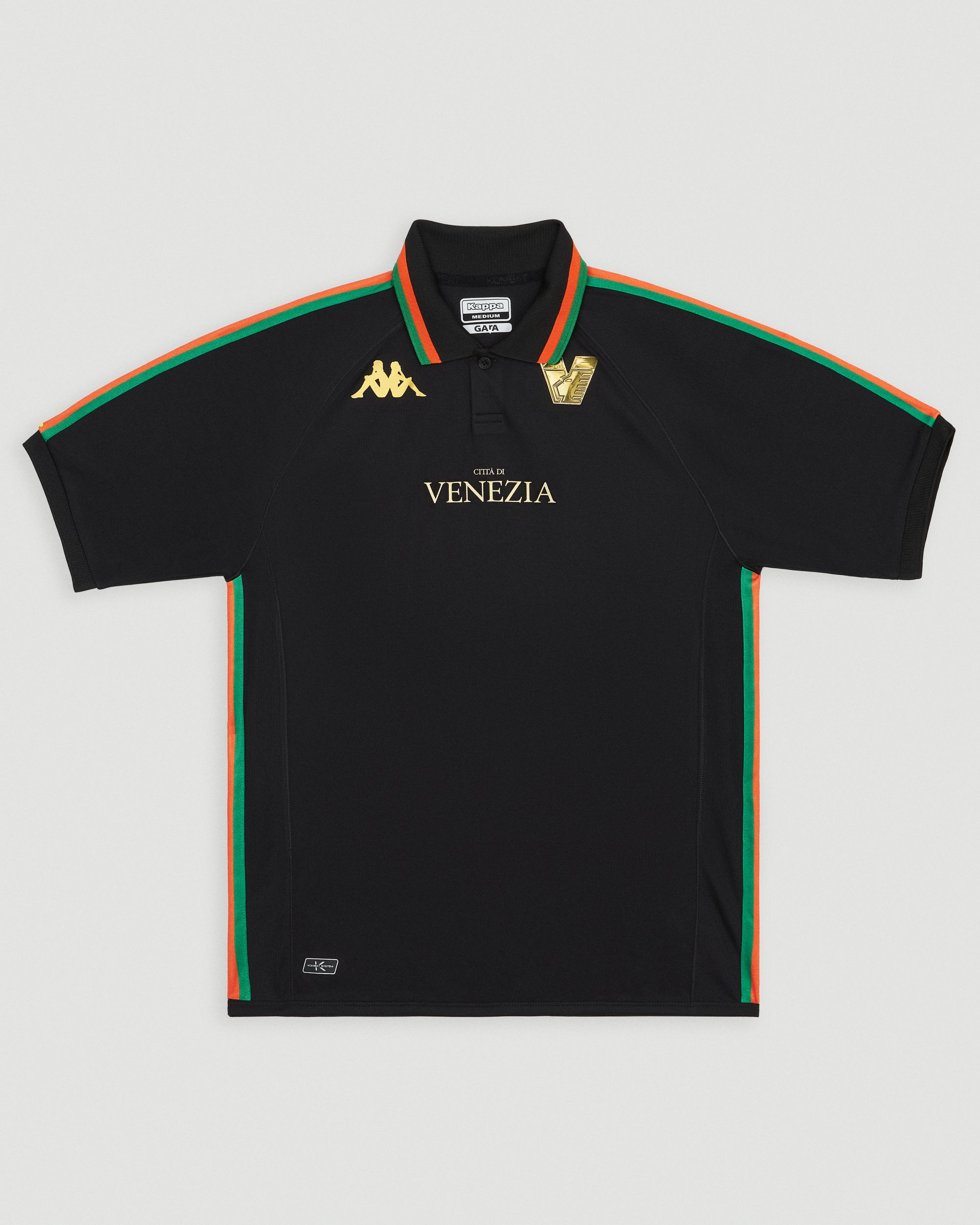 After surprising fans, enthusiasts and insiders last year with four highly successful jerseys, today Venezia and Kappa presented the new kit for next season. A jersey that takes inspiration from the 1990s, a mix of tradition and modernity, following one of the most current trends of the year that sees the return of the collar on the pitch. An element that had been lost over the years and that returns as a protagonist in a jersey that is already a candidate to be one of the best of the season. The lagunari compared to last year, again together with the Italian brand, will take the field with a black jersey accompanied by thin orange and green lines crossing the sleeves and the collar and with the new logo, presented a few days ago, completely in gold.