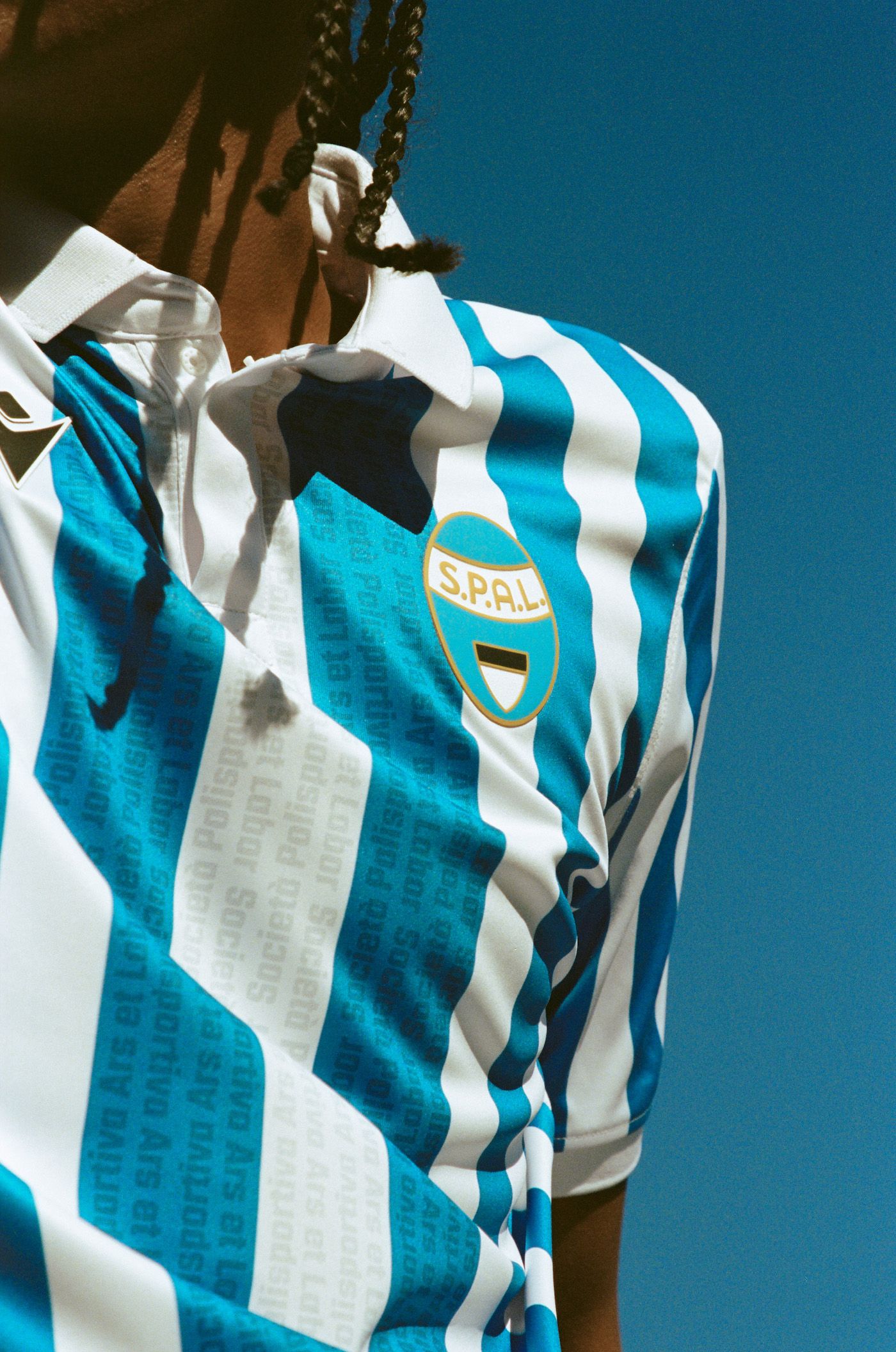 The upcoming Serie B season promises to be one of the most exciting, not only because of the return of historic clubs such as Cagliari, Venezia, Genoa, Bari and Palermo, but also from an aesthetic point of view, it is not disappointing expectations. In addition to the beautiful Benevento and Venezia jerseys, SPAL also presented the new first jersey designed by Macron today. The shirt of the team owned by Tacopina will have, as always, the traditional white and blue stripes with a tone-on-tone print, where the full name of the club is repeated: Società Polisportiva Ars et Labor, from which the famous acronym S.P.A.L. was born. The new home will also have a polo collar in knitwear with a three-button closure, on the chest it reproduces on the right the Macron Hero in silicon print and on the left, the coat of arms of the Estense club in its classic version. The backneck, on the other hand, is customised with the colours, the club logo and the motto "NON CAMMINERAI MAI SOLA" (YOU WILL NEVER BE ALONE) to underline the strong sense of belonging of all those who love the Biancoazzurri colours.