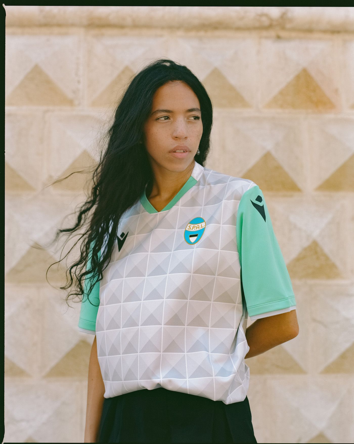 After having created the first jersey on which, with a tone-on-tone print, the famous acronym S.P.A.L. is repeated, today Macron and the Emilian club have presented the new away kit inspired by one of the symbols of the city of Ferrara: the Palazzo dei Diamanti. A jersey that alternates white and grey in the pursuit of a three-dimensional effect thanks to its tone-on-tone graphics created to replicate the effect of the diamond-pointed ashlar that gives the palace its name. The rest of the jersey is completed by a V-neck with turquoise details, the same shade also present on the sleeves. Two releases that confirm the good work done up to now by both Macron and SPAL, which after the change of ownership, passed a few months ago into the hands of Tacopina, seems to have changed gear, rejuvenating its aesthetics from this season but without distorting it.