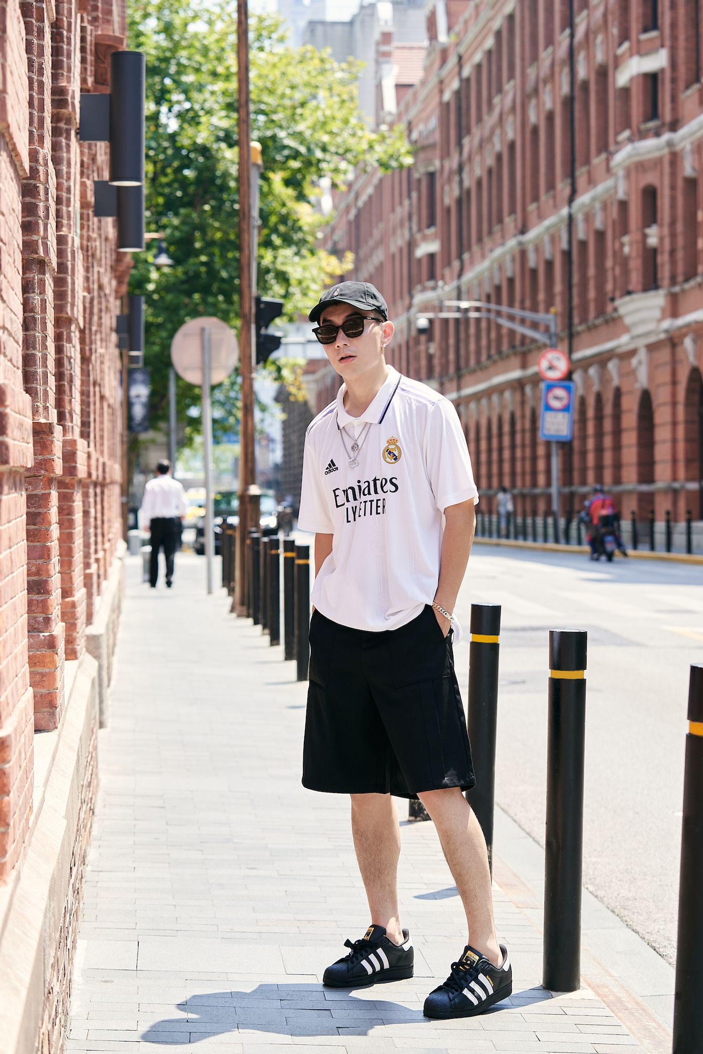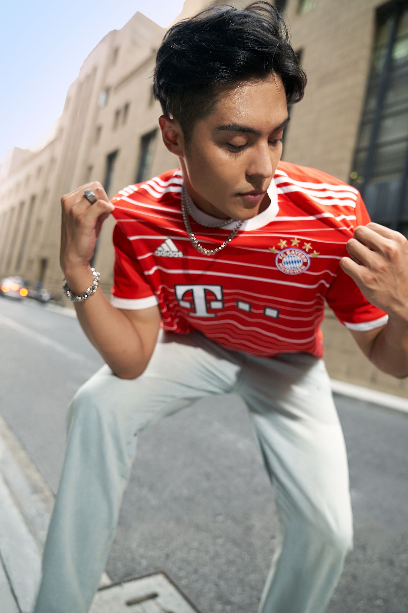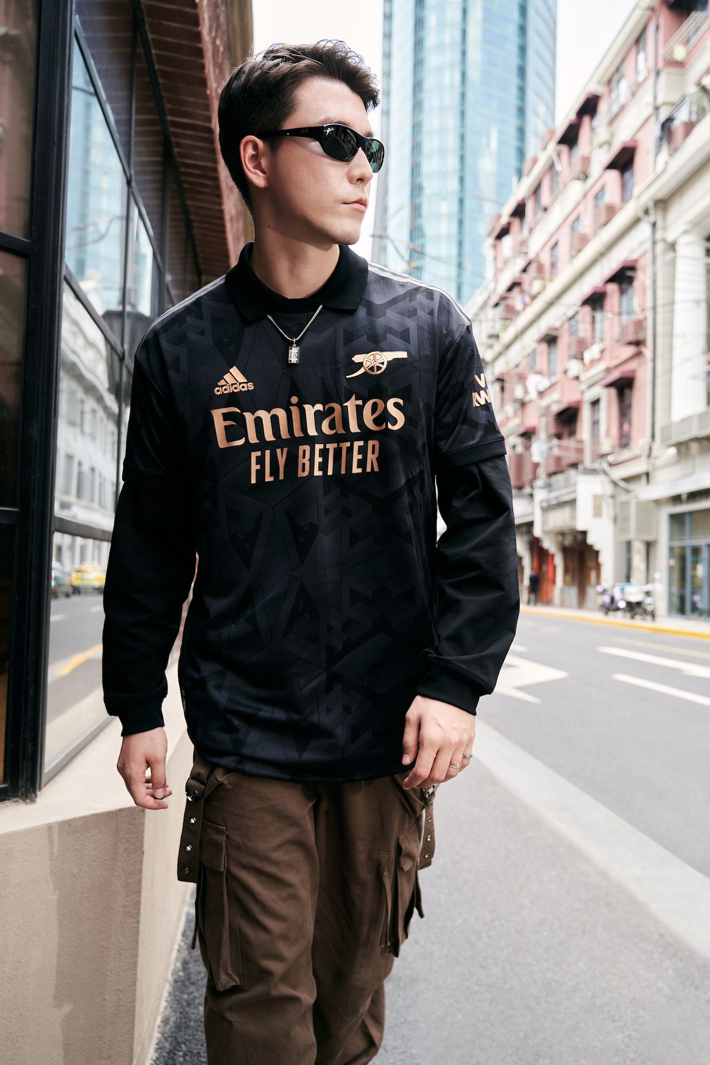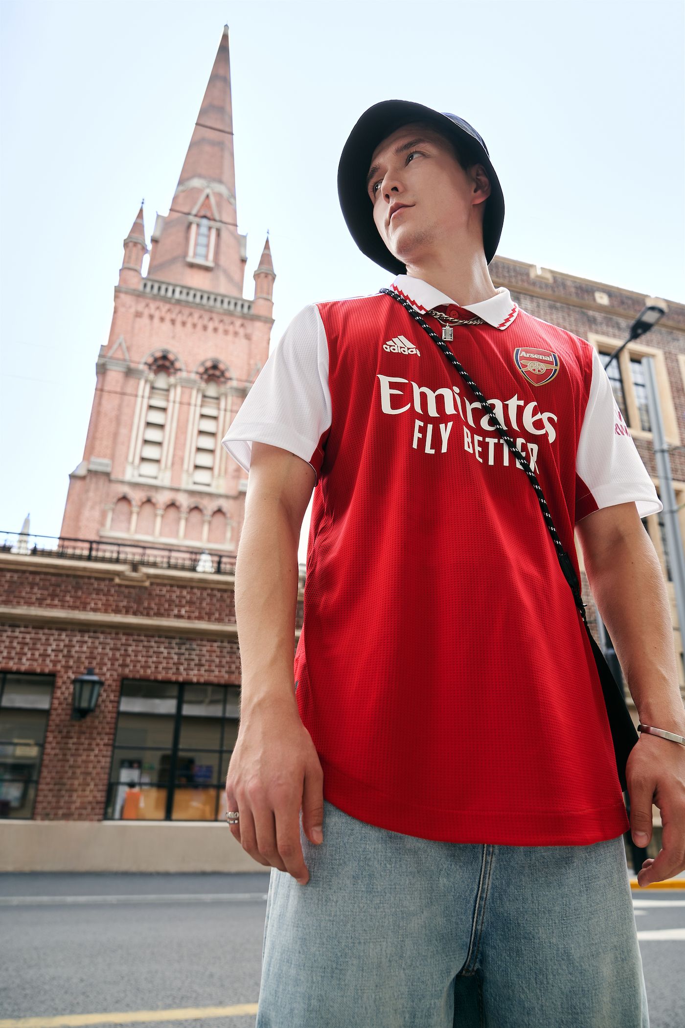 Football jerseys are undergoing a profound evolution, leaving the field of play to become an all-round lifestyle item thanks to two very strong trends. The first is the Bloke Core, defined as such on TikTok by @brandonlhuntly and already cleared through customs for years in stadiums all over the world, where the football jersey is combined with boot cut jeans and low effort trainers for an only apparently casual effect. It is a trend that ANAR FC, a Chinese collective and an open and inclusive team with players from Shanghai, Xinjiang, Beijing, Hong Kong, Taiwan, Paris and London, wanted to decline in its own way, to coincide with the start of the major European championships. The entire shoot was made with home and away jerseys from the 22/23 season designed by adidas for Arsenal, Manchester United, Bayern, Real Madrid and Juventus. 15 different jerseys testifying to the extent to which football has definitively moved out of its sporting bubble and into other markets.