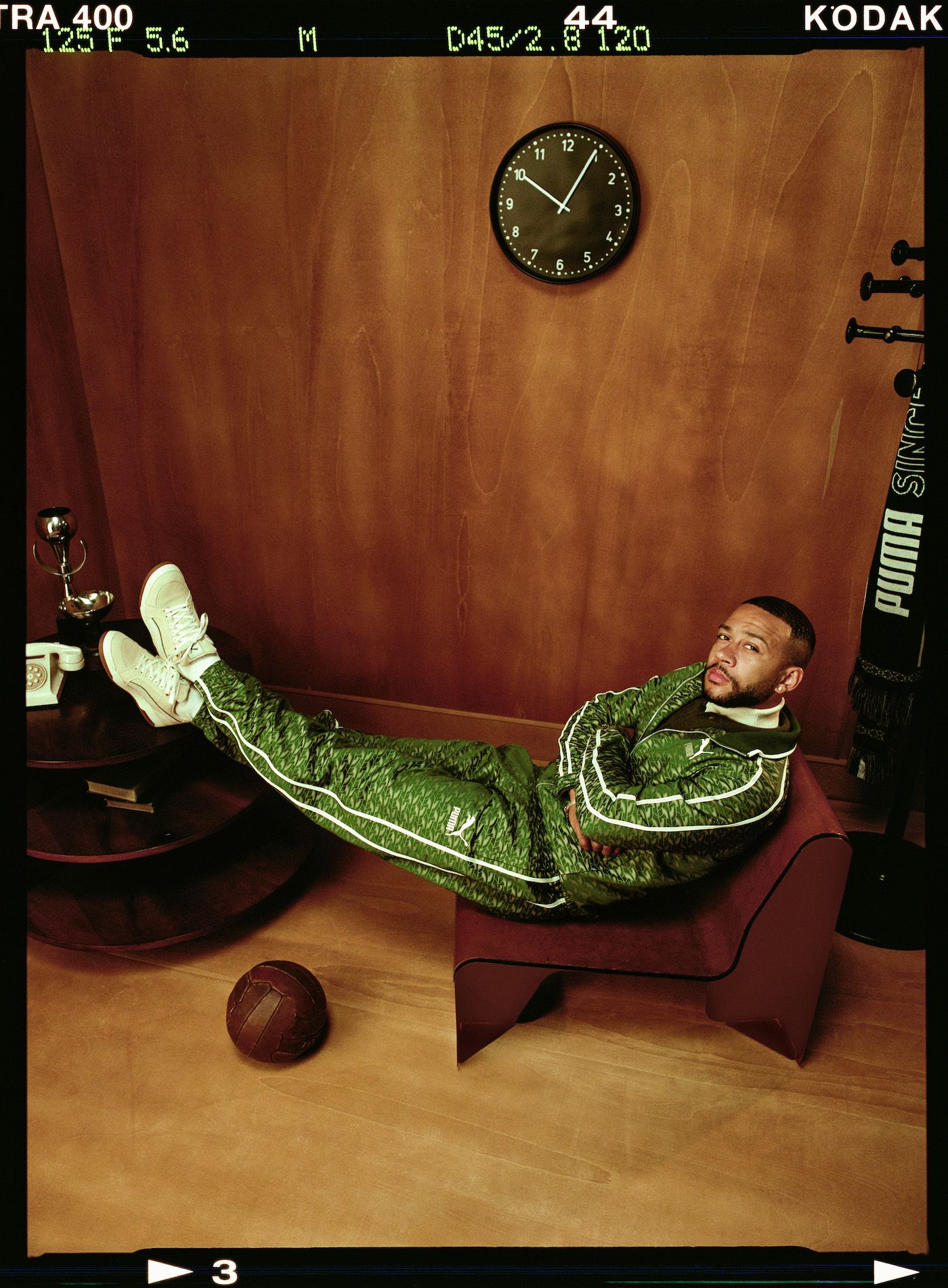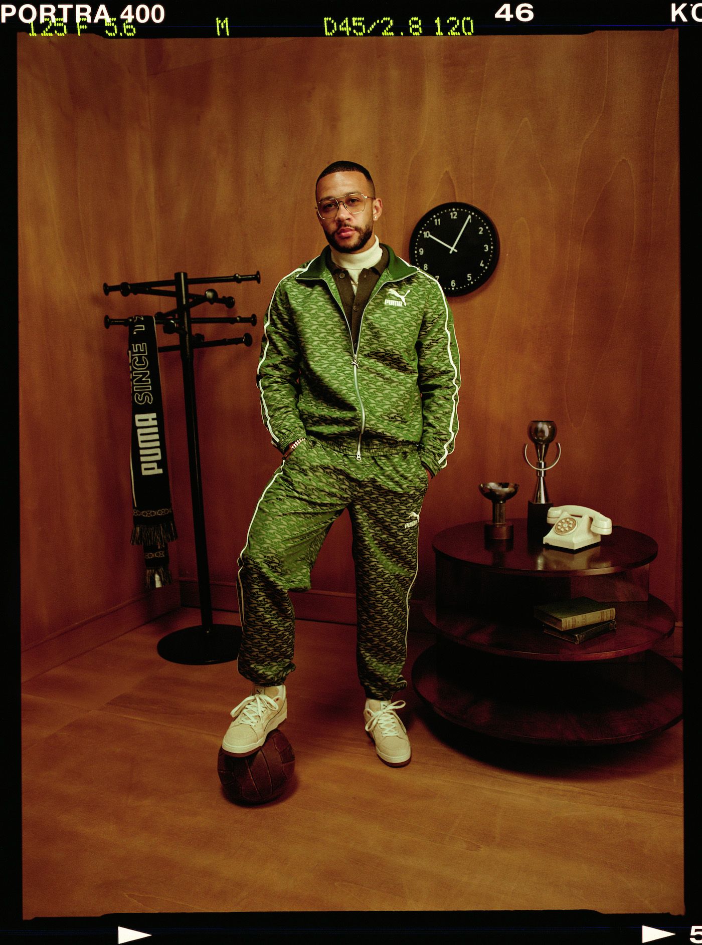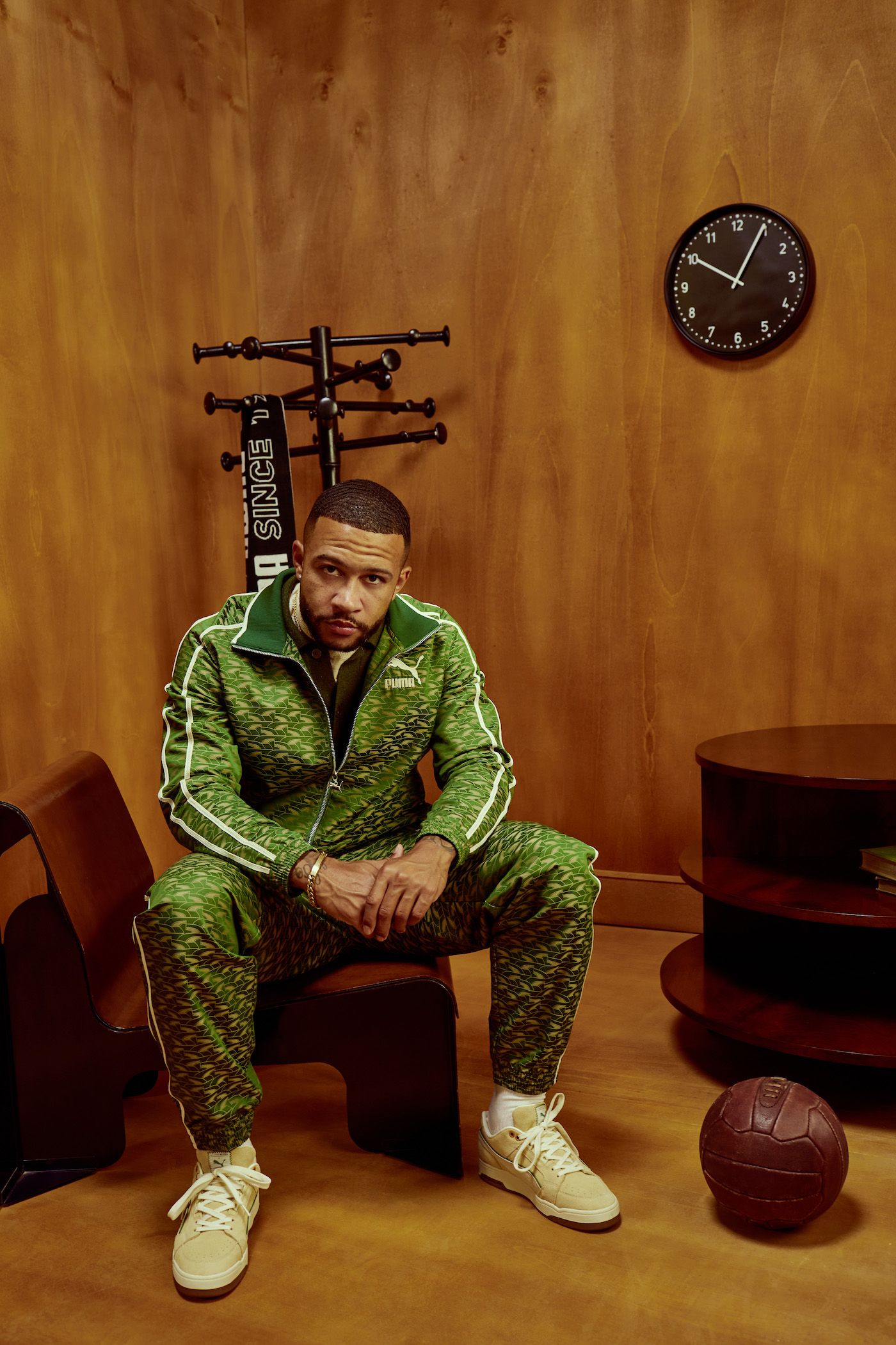 Memphis Depay is the new face of the PUMA Players' Lounge collection, which pays homage to the iconic football style of the 60s and 70s through a comprehensive range of apparel, footwear and accessories. Inspired by PUMA's heritage and designed for the next generation, it continues the work done at the "FUTROGRADE" show during New York Fashion Week. A rediscovery of the historical archive of the Herzogenaurach-based brand through the golden age of football, when PUMA was the most loved brand by footballers from Pelé to Maradona.