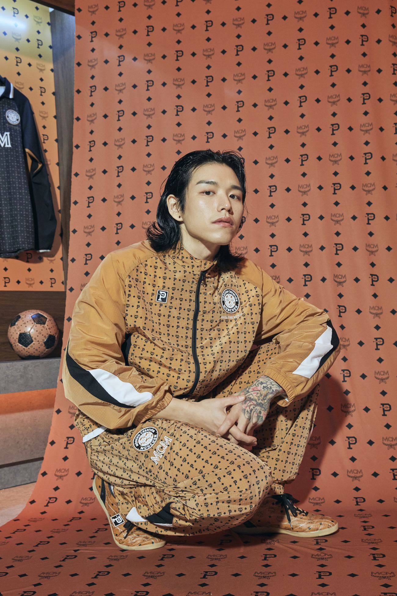 Founded during Munich's Golden Age - an era of bright lights, jet set and disco - Modern Creation München has remained an enduring icon for over 45 years. An aura of novelty and freshness that led the Korean magazine, Over The Pitch, to collaborate with the German brand on a collection purely inspired by football. This is the first time that these two companies have collaborated together, for a collection that contains various items, from football and non-football jerseys, sweatshirts, waistcoats and tracksuits to a ball and accessories such as shoes, bags, hats and a ball holder.