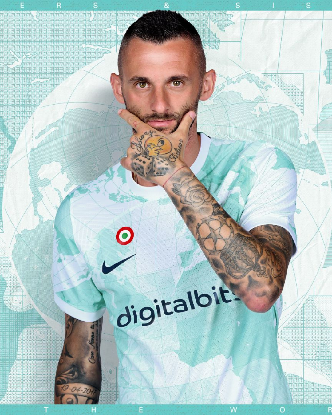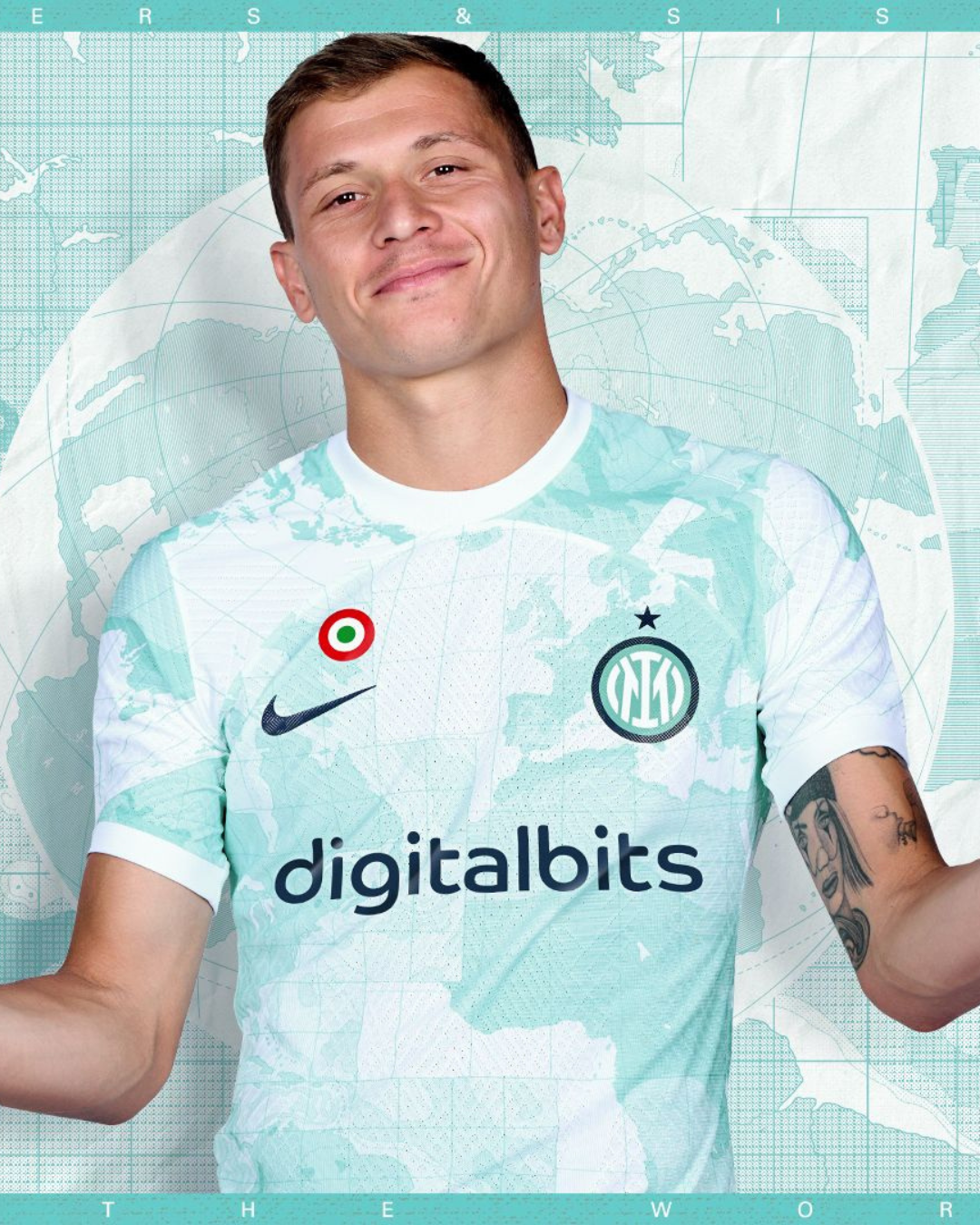 Made by Nike, the jersey defined as Brothers&Sisters of the World exalts the international character that has always distinguished the Milanese club from its name, with a truly unusual design for game kits. White forms the basis of the new design, enriched by a light aqua print depicting a planisphere. The inclusive spirit and openness towards the world is also underlined by the inscription 'Internazionale' positioned on the inside of the collar, while the team's coat of arms, recoloured to match the jersey's colour scheme, is positioned in correspondence with Milan on the map.