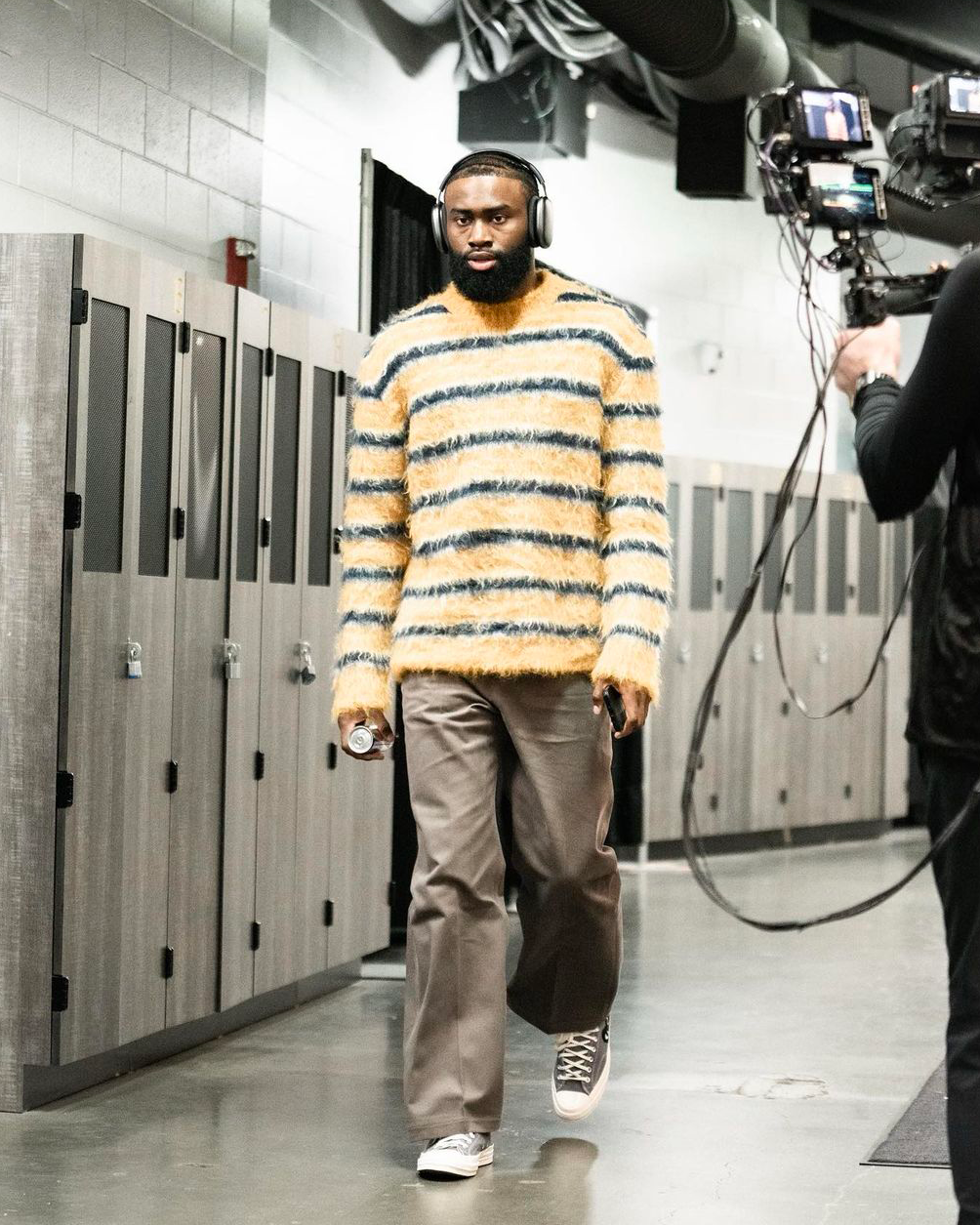 In this new panorama, Marni has slowly but surely established itself, mainly thanks to clothes that have always favoured wearability, but at the same time are instantly recognisable even to the untrained eye. And it is precisely this quality that has made brands like Marni or like Bottega Veneta so popular, precisely because of their ability to stand out even without logos, but with patterns or materials. And after conquering many players with their mohair jumpers and bold colours worn by James Harden, Jaylen Brown and the absolute tastemaker of the league, P.J. Tucker, Marni has now definitely taken the NBA by storm thanks to its collaboration with Carhartt.