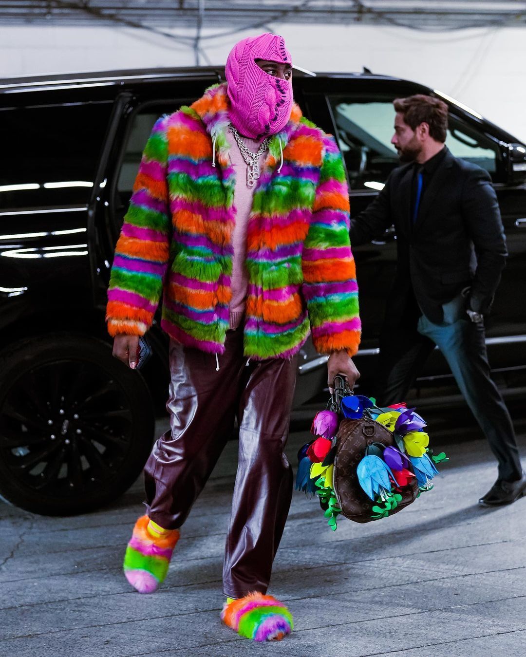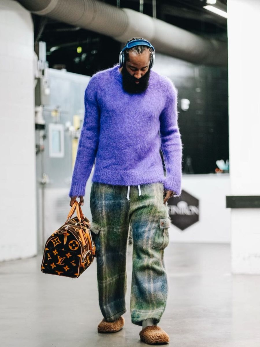 James Harden arrives at Madison Square Garden for his Philadelphia 76ers' Christmas game against the host New York Knicks, and as always, the photographers' lenses are ready to snap him. For Harden is not only one of the most determined players on the court, but also stands out off the court for his fearless outfits, which regularly defy the unwritten rules for an athlete's attire. And once again, Harden disappointed neither his fans nor his many critics. He showed up in a full Marni look, which included a pair of fur mules and a pink balaclava.