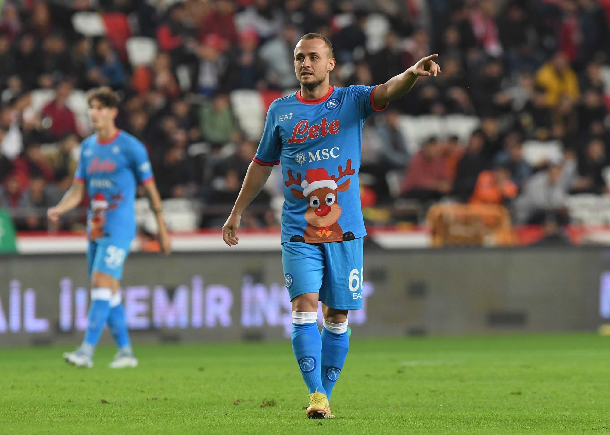 The 13 point gap between Napoli and the rest of Serie A shows how good they are this season. It also mirrors how far ahead of everyone else they are when it comes to releasing unnecessary shirts. Since EA7 entered the fray, they’ve been churning out jersey after jersey with zero regard for what constitutes cause for celebration. The relationship between the club, the city of Naples and Diego Maradona transcends sport and could probably have excused the multiple Maradona tribute jerseys last season, were it not for all of the other offences. Their most flagrant cash grabs have come in the form of holiday releases: two Halloween shirts, the recent lipstick-marked Valentine’s day jersey, and of course the shameless Christmas kit, apparently designed by combining the first few results of a Google image search.