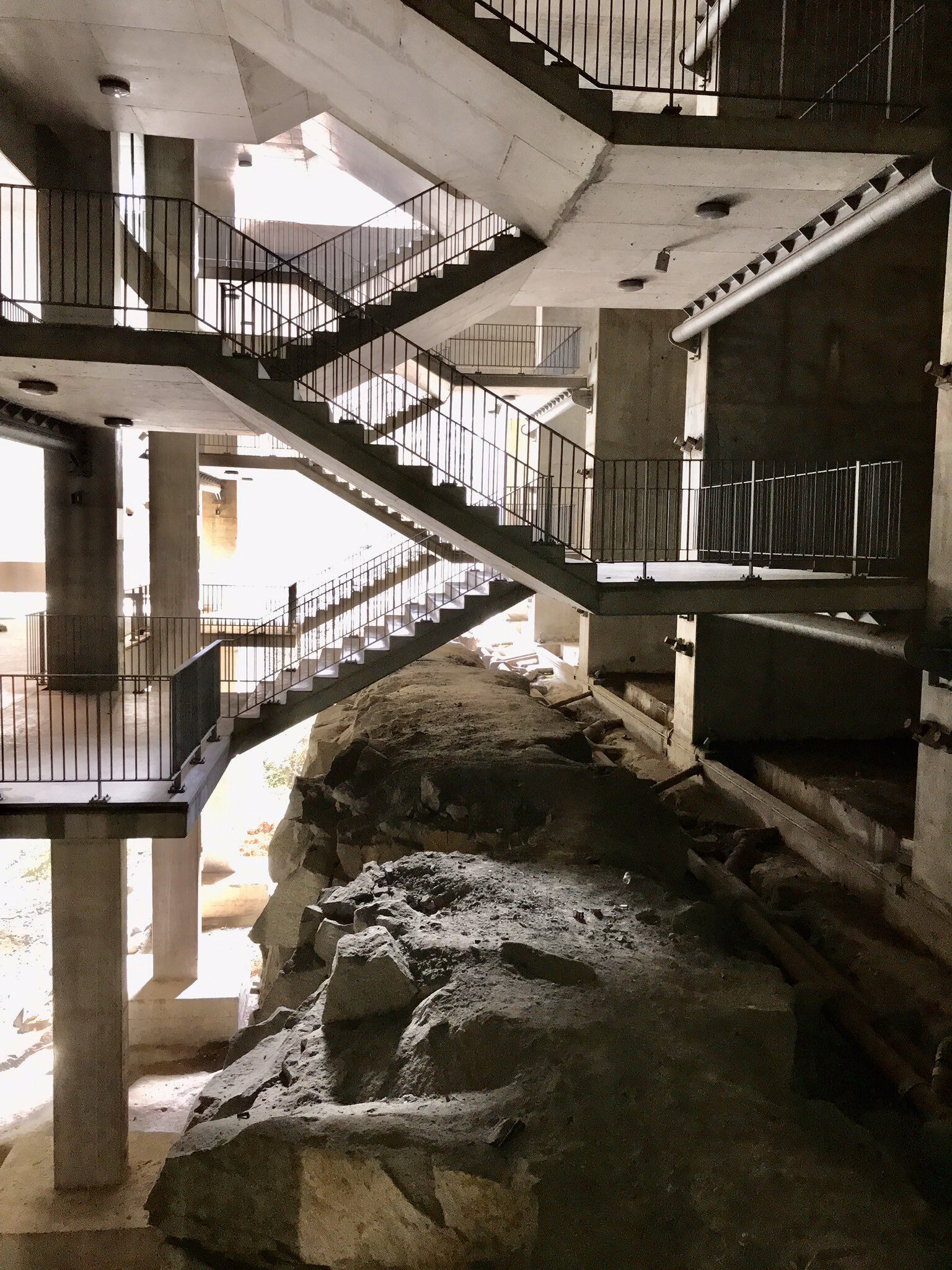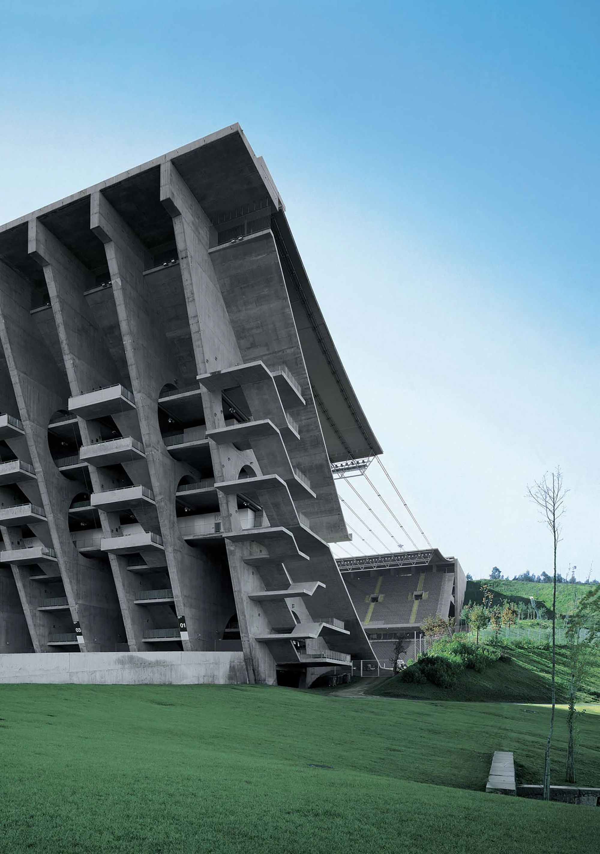 Initially, the project site was to be at a relatively unappealing plot close to the river yet plans were changed to place the stadium in an area of greater natural beauty in the hopes of improving and recovering a more marginal area of the city. The organisational scheme of the structure is predicated upon two tribunes, facing one another, with one constructed into the limestone whilst the other is held by a construction of sixteen concrete ribs; The metallic canopy takes inspiration from indigenous Peruvian bridges. There are no stands behind both goals allowing for the beauty of the northwestern topography to shine through, giving the stadium its unique character and beauty.