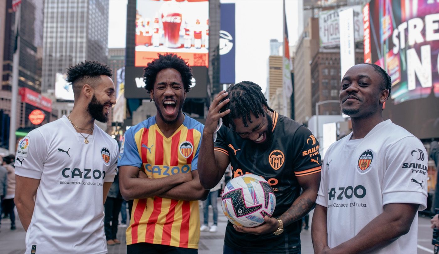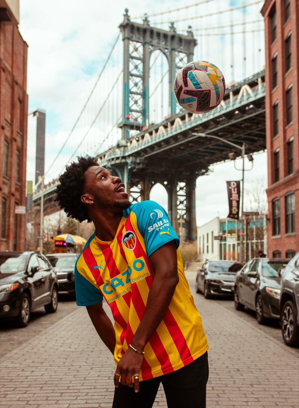The Camp de Mestalla is the inspiration for our PUMA kits for the 2022-2023 season and the leitmotif of this shoot in the streets of New York, produced in collaboration with LaLiga North America. The shoot combines street style with sport and allows Valencia's colours to reach the heart of the United States, highlighting Valencia's colours and the style of its fans off the pitch.
