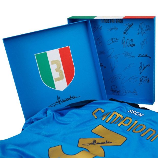 Only 2023 jerseys have been produced, and it is enough to suggest that they will sell out in a short time, despite the decidedly high price: €250, out of scale with respect to the football jersey market, but the price to take home another souvenir of a memorable season. President De Laurentiis has taken the stage in these days making much talk about the future of Luciano Spalletti and also in this jersey he takes the scene, it is in fact his signature that appears above the number 3 in gold printed on the back along with the words "campioni" (champions). All the other signatures of the Azzurri players can be found inside the special box designed for the jersey, which if not worth €250 will at least make you better preserve another symbol of a Scudetto waited 33 years.