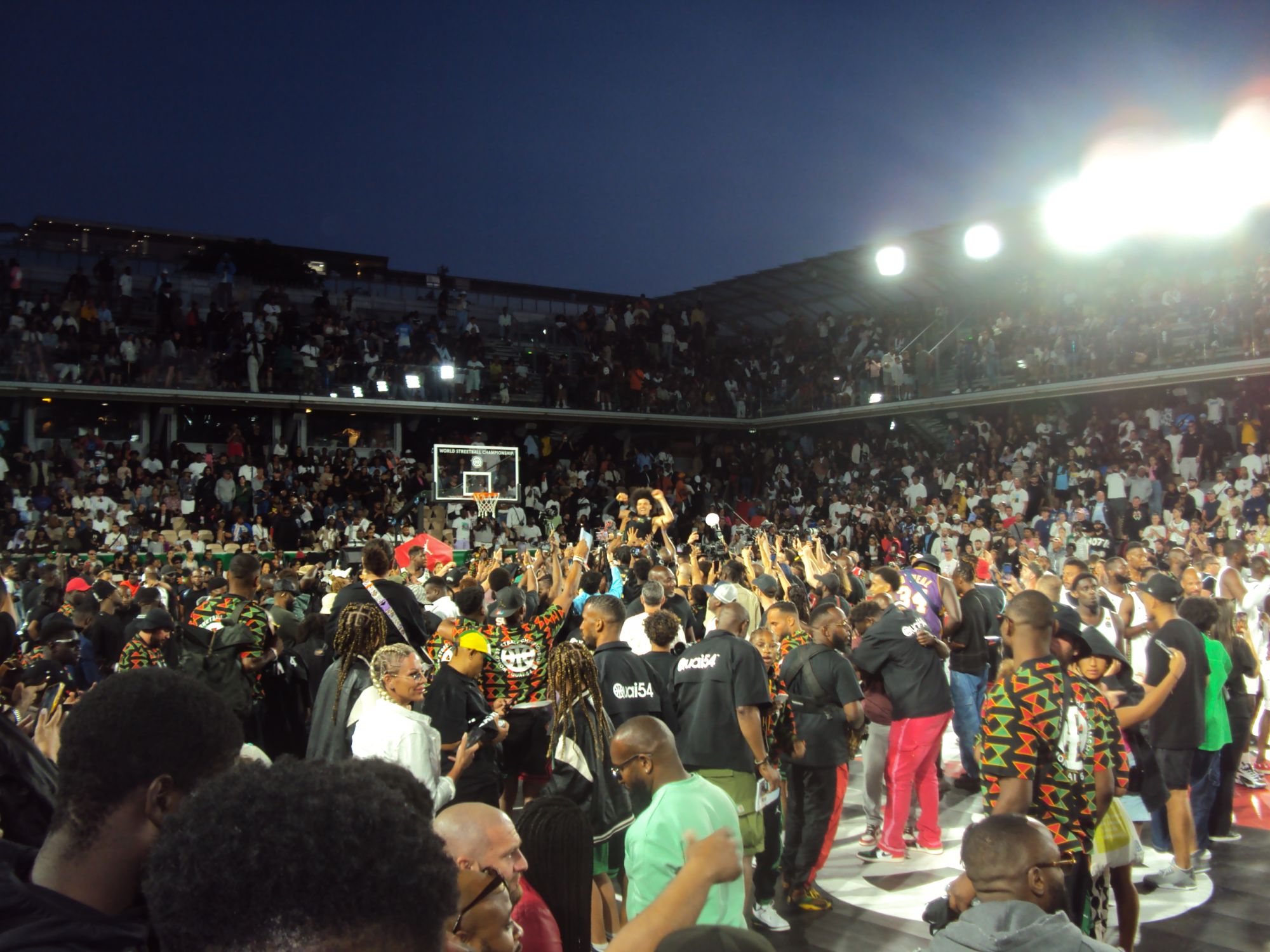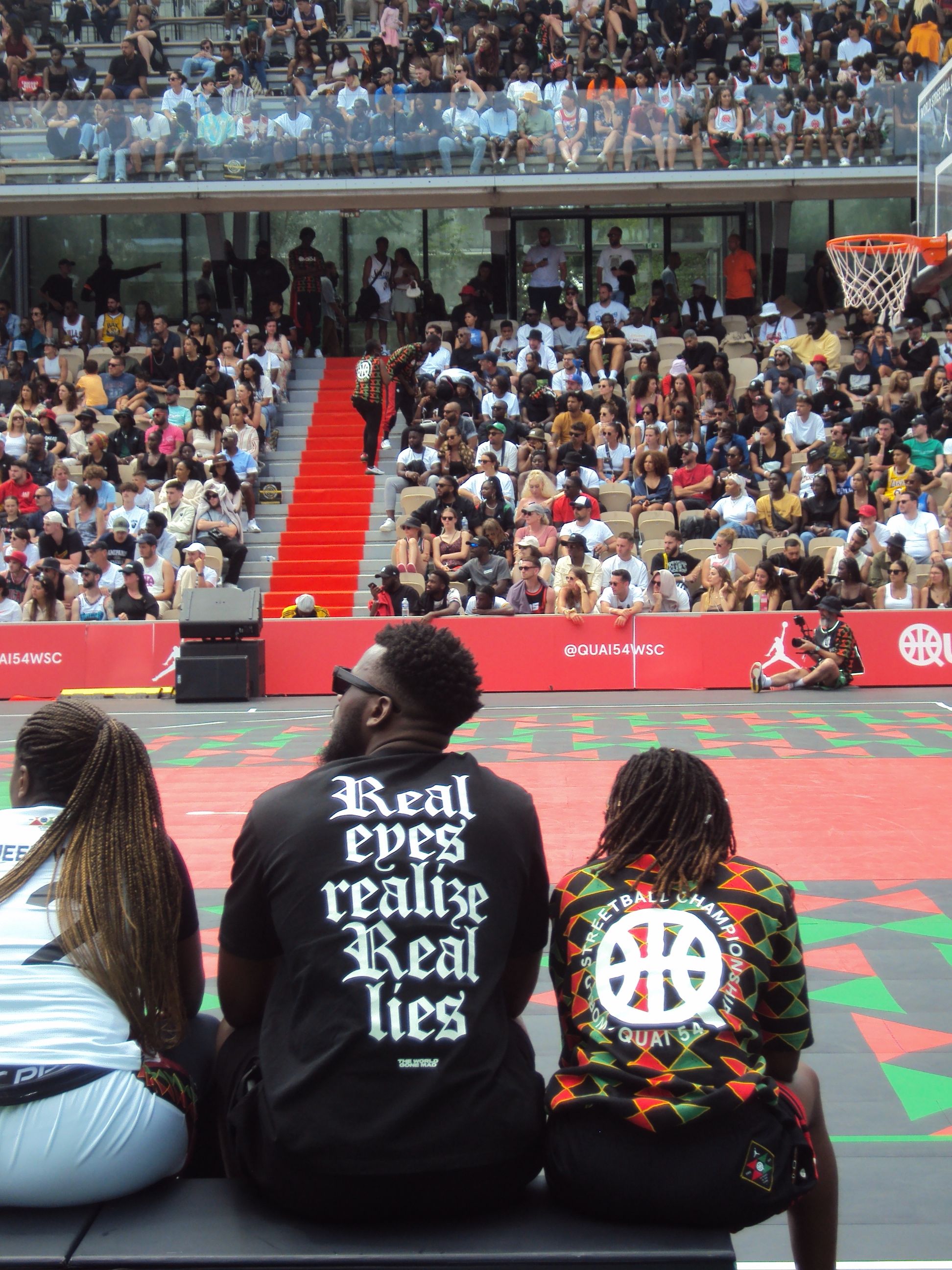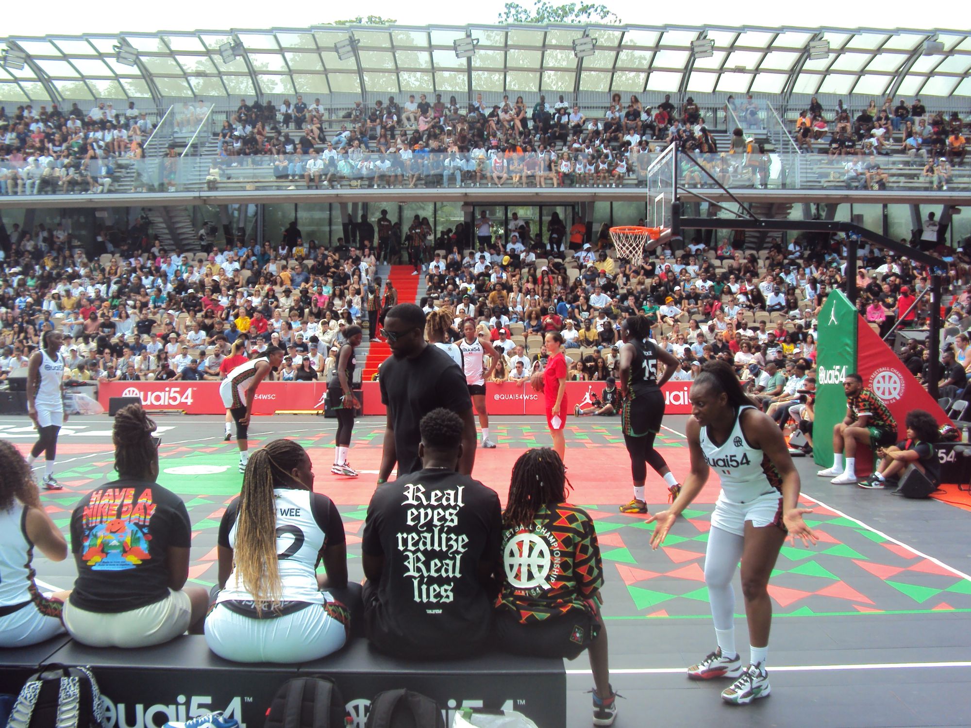For the special 20th anniversary edition, the brand's creative efforts focused on telling the story of the Pan-African diaspora by designing an extensive capsule collection that draws on the colours and motifs of the Pan-African flag itself. From the inside, Quai54 resembles a street fair in every way: the long lines at the cash registers, the idea of dressing up to go to sports fairs, and the willingness to "hang out" in the arena that is typical of American sports. Even if for the first time Quai54 loses the atmosphere of the Eiffel Tower - where the tournament has been held in recent years - the ability of the court inside Roland Garros is phenomenal and gives the tournament a sense of professionalism. Professionalism, by the way, is the right word to use when talking about Quai 54: 16 teams from 10 countries, an MVP, Nadir Hibi, who was listed with Wemby in the NBA Draft this year, and an average level of play that rises alarmingly in the final stages of the tournament. Instead, Saturday was all about the Dunk Contest, with the crowd cheering on the victory of American Tyler Currie at the expense of the incredible Polish jumper Piotr Grabowski.