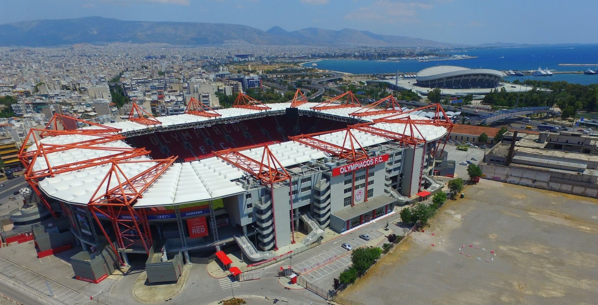 The structure of the stadium reflects the standard one of the largest European fields. The pitch is 120m x 80m, built with innovative technology and cost the club half a million euros, surrounded by stands that can accommodate 32,115 spectators. In these grandstands, the press area can accommodate 20 television broadcast stations and 224 commentary stations. The entire area of the stadium, a stone's throw from the port of Athens, reaches 6500m2 and features commercial activities and the Olympiacos museum. The position and the very nature of the city make the Geōrgios Karaiskakīs a real tourist attraction, which welcomes around 600,000 people a year.
